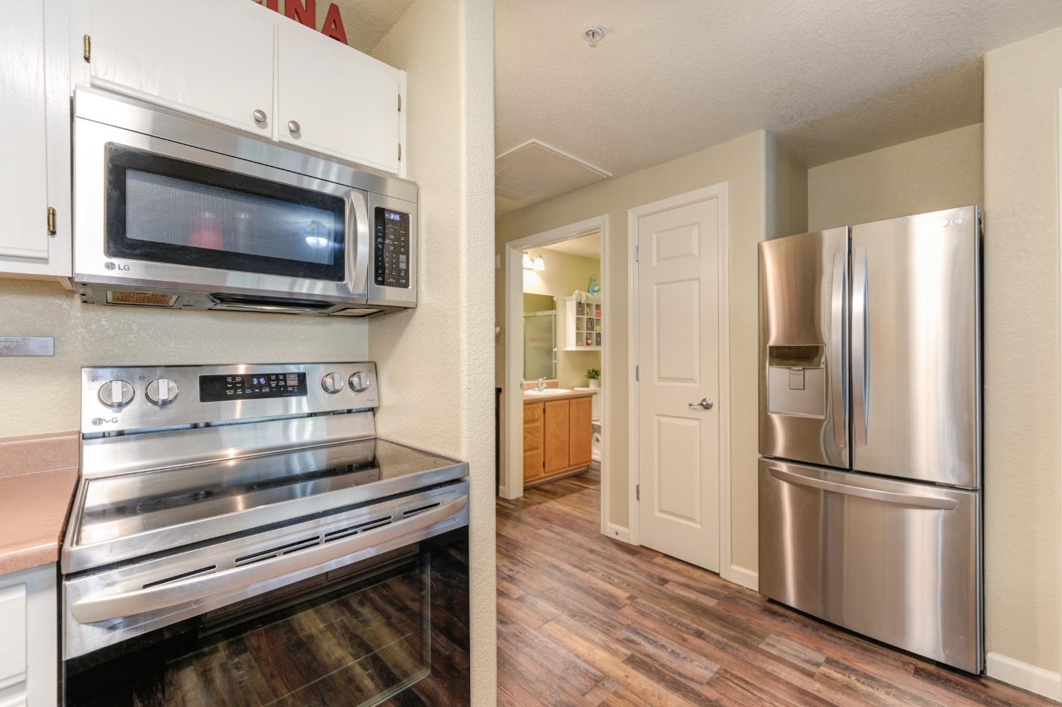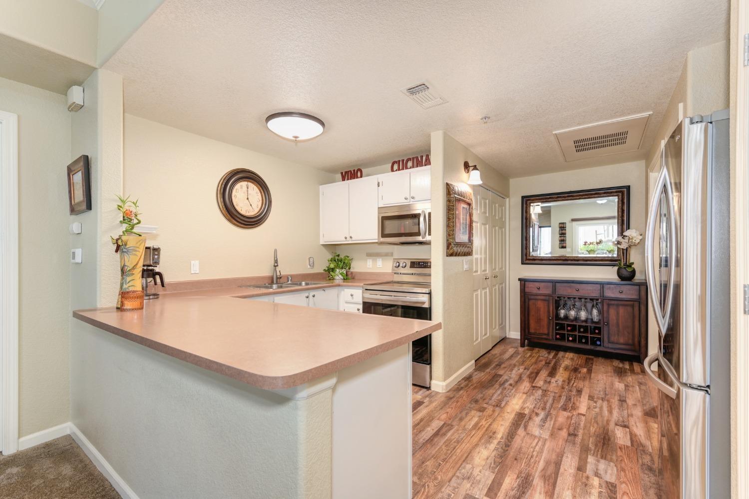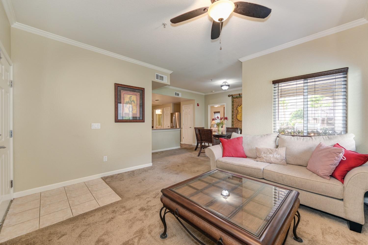 Welcome to this charming 2-bedroom, 2-bathroom home located in the Villas at Diamond Creek. This ground level unit is a comfortable 1057 square feet of living space offering a cozy and inviting atmosphere. Upon entering, you're greeted by a well-appointed family room, perfect for relaxing or entertaining guests. The open kitchen features new stainless steel appliances, beautiful luxury vinyl plank flooring, two pantry closets and ample counter space for meal preparation. The two primary bedrooms include large walk-in closets and en-suite bathrooms. Outside, a lovely patio with overlay wood floors offers a delightful space for enjoying the California sunshine. Home includes a garage and an assigned parking stall behind the gates. New interior paint, carpet (2022) and water heater (2023). Newer washer, dryer and refrigerator included in sale. Close to the pool, spa, gym and playground as well as easy access to nearby grocery stores and restaurants, this condo is a fantastic opportunity for anyone seeking a comfortable and low-maintenance lifestyle. Don't miss the chance to make this delightful home yours - schedule a showing today and experience all it has to offer!