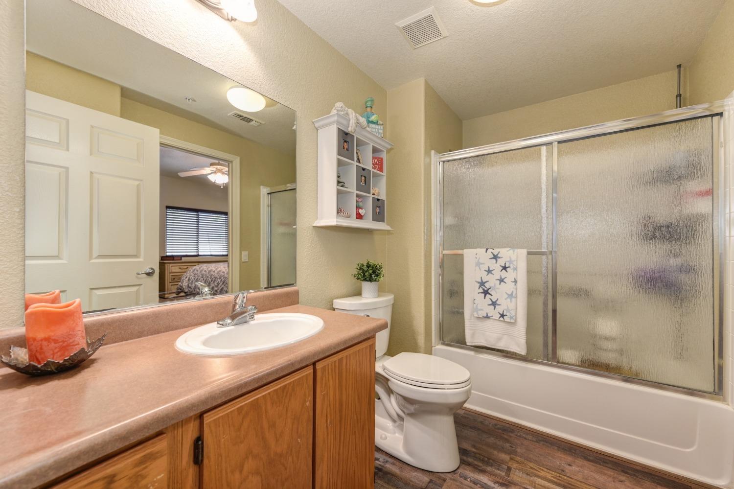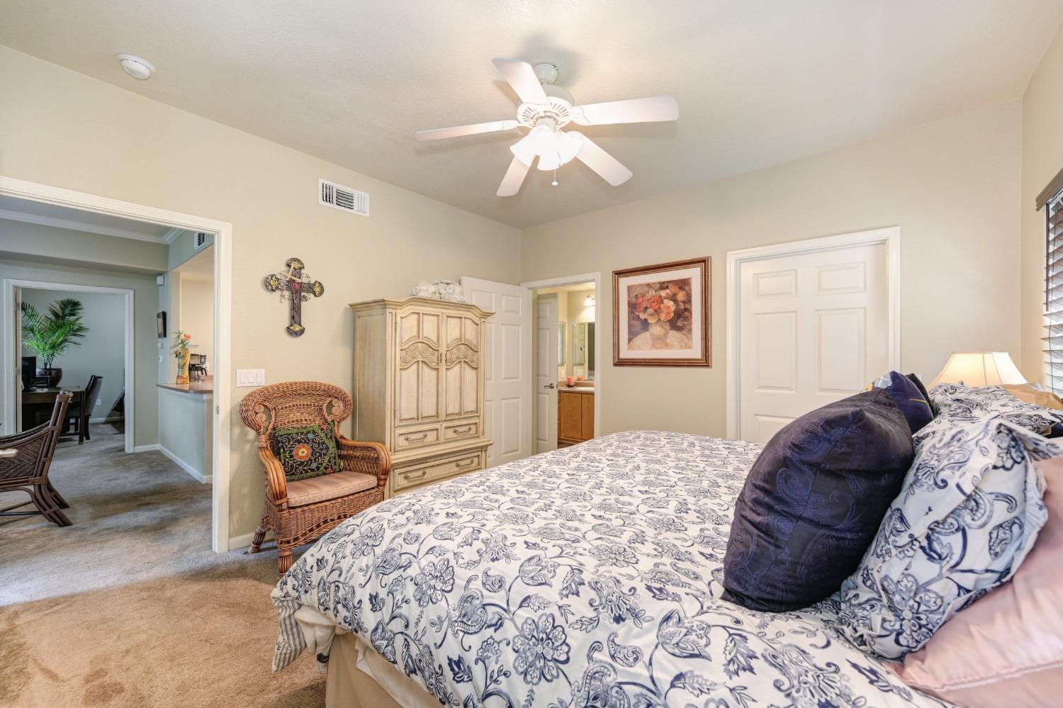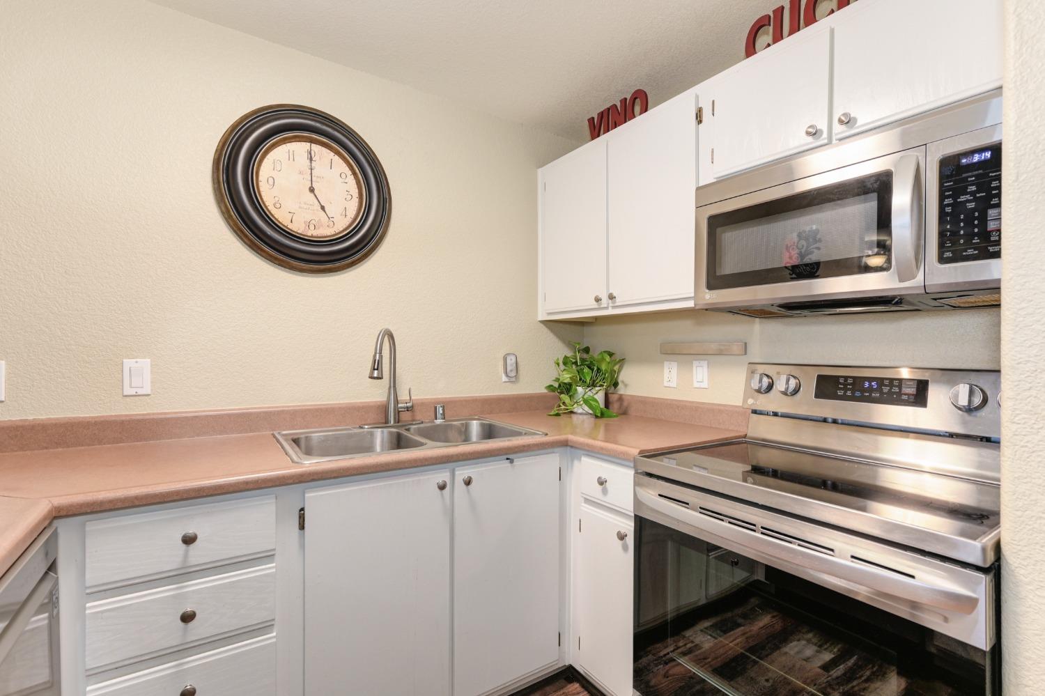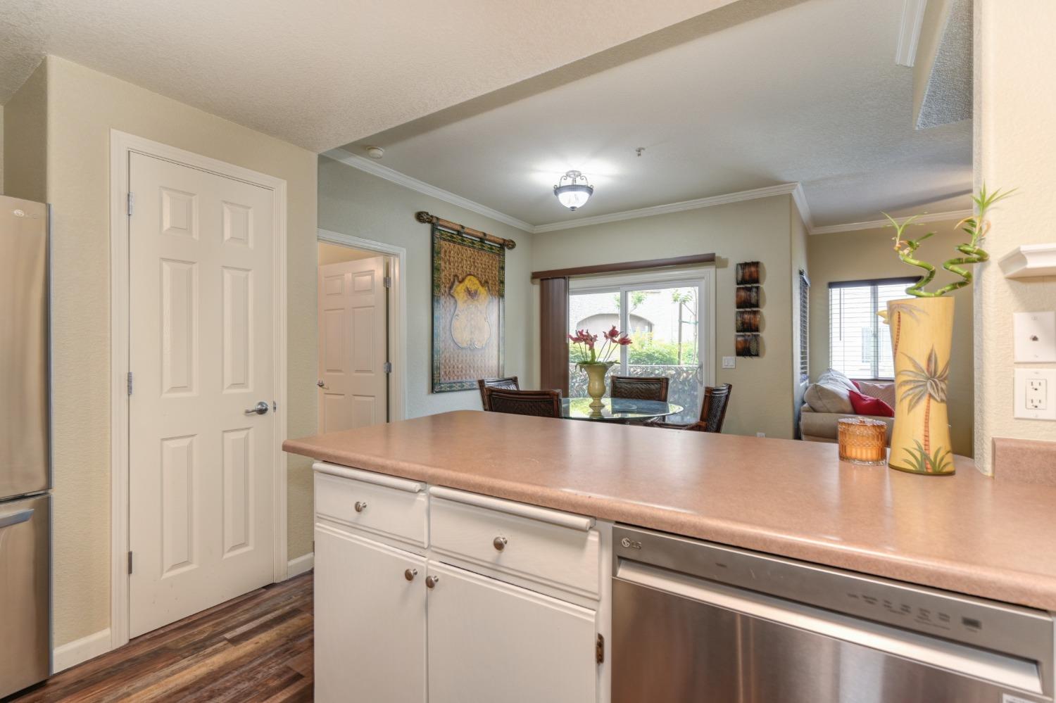 Welcome to this charming 2-bedroom, 2-bathroom home located in the Villas at Diamond Creek. This ground level unit is a comfortable 1057 square feet of living space offering a cozy and inviting atmosphere. Upon entering, you're greeted by a well-appointed family room, perfect for relaxing or entertaining guests. The open kitchen features new stainless steel appliances, beautiful luxury vinyl plank flooring, two pantry closets and ample counter space for meal preparation. The two primary bedrooms include large walk-in closets and en-suite bathrooms. Outside, a lovely patio with overlay wood floors offers a delightful space for enjoying the California sunshine. Home includes a garage and an assigned parking stall behind the gates. New interior paint, carpet (2022) and water heater (2023). Newer washer, dryer and refrigerator included in sale. Close to the pool, spa, gym and playground as well as easy access to nearby grocery stores and restaurants, this condo is a fantastic opportunity for anyone seeking a comfortable and low-maintenance lifestyle. Don't miss the chance to make this delightful home yours - schedule a showing today and experience all it has to offer!