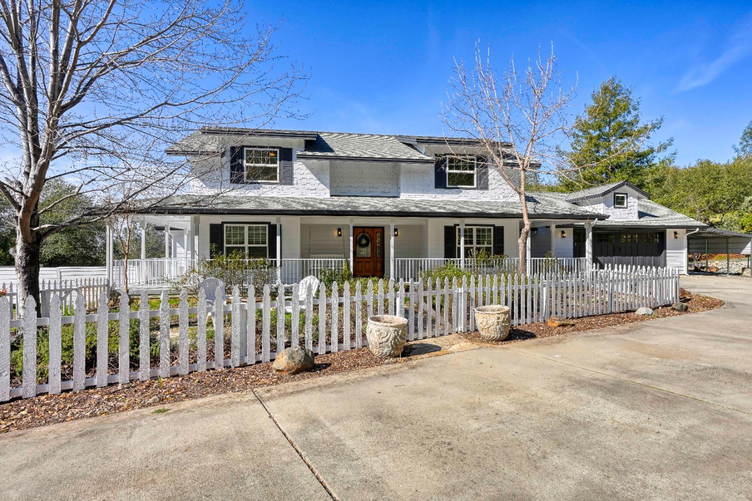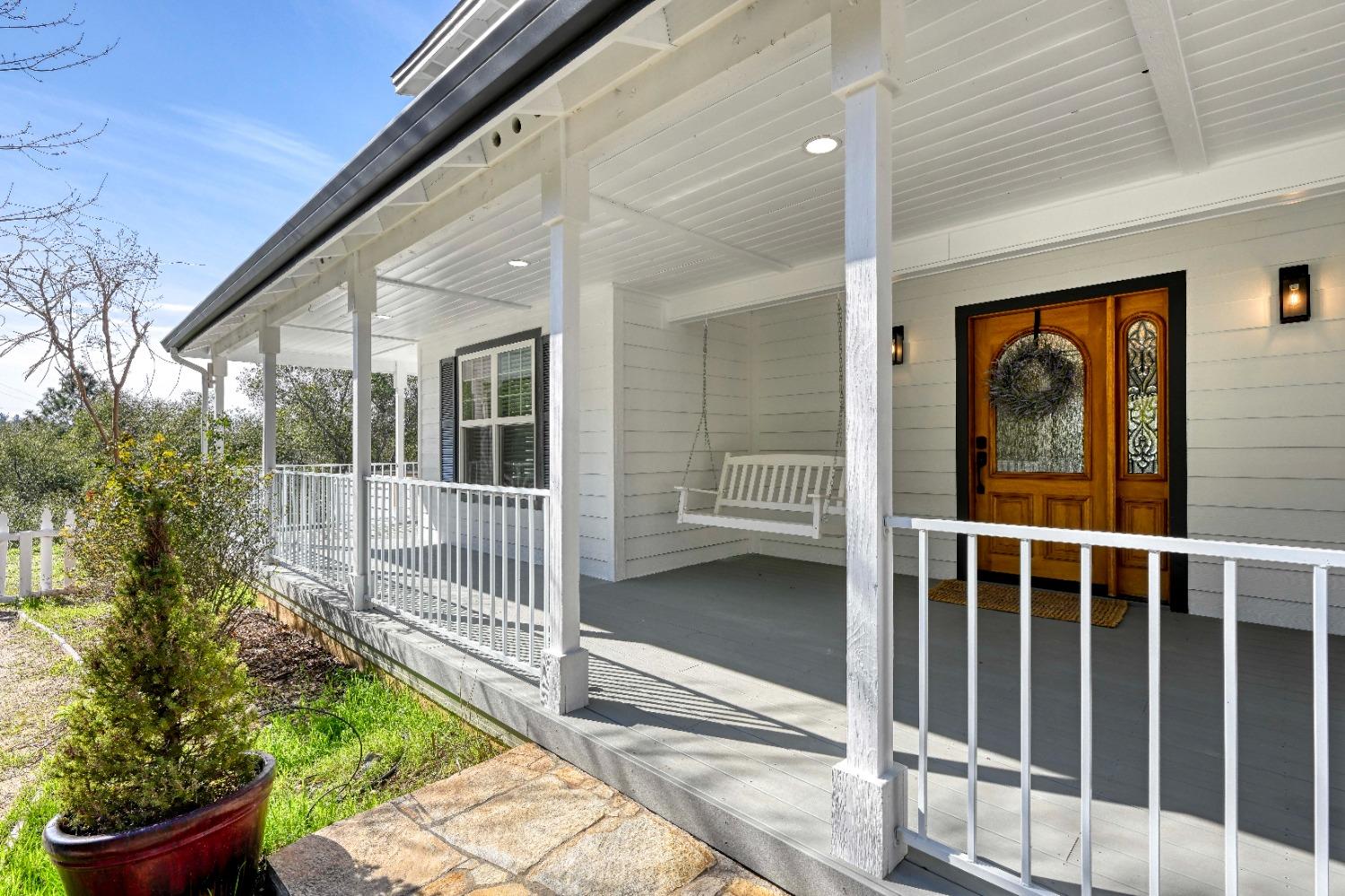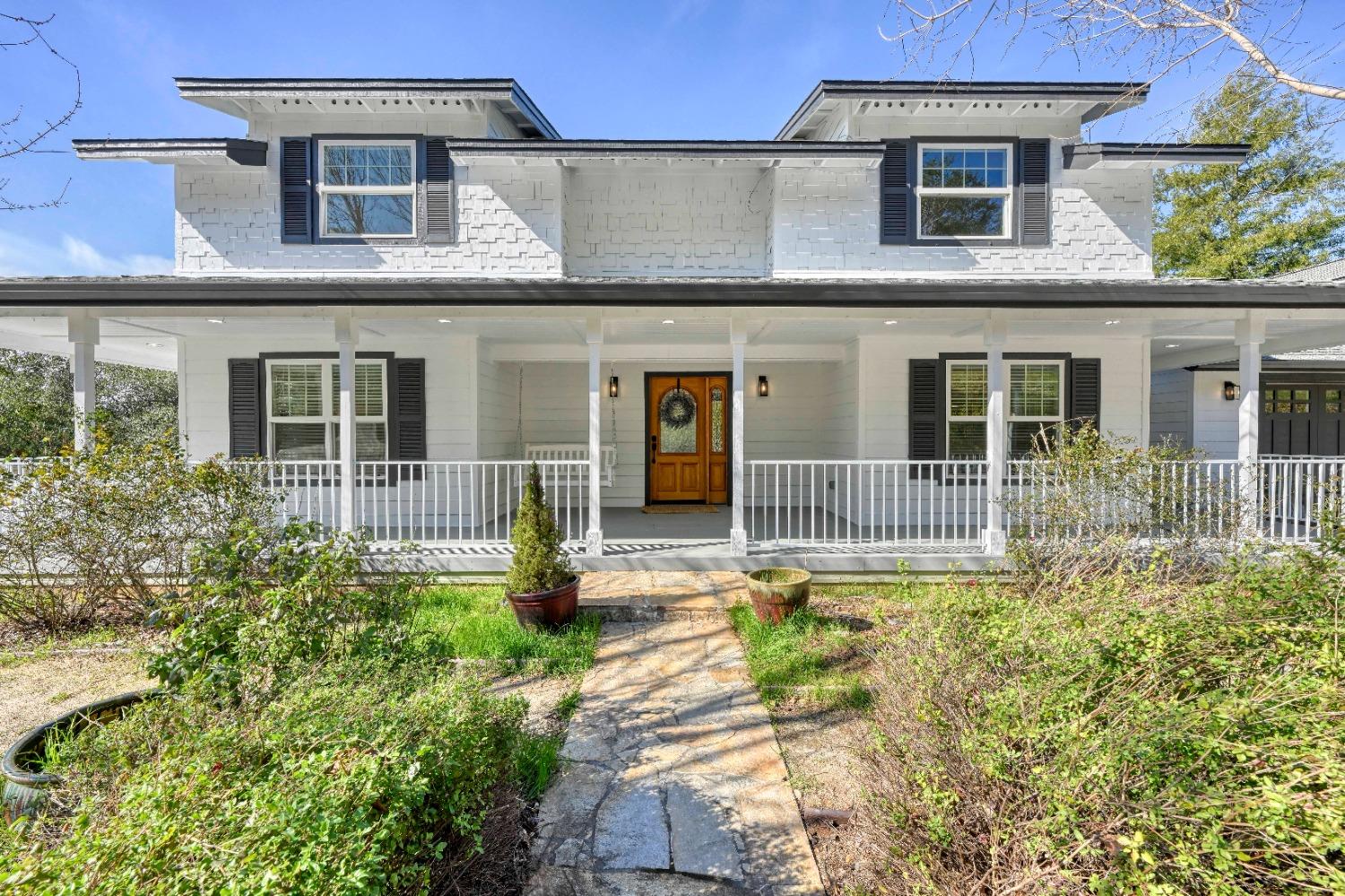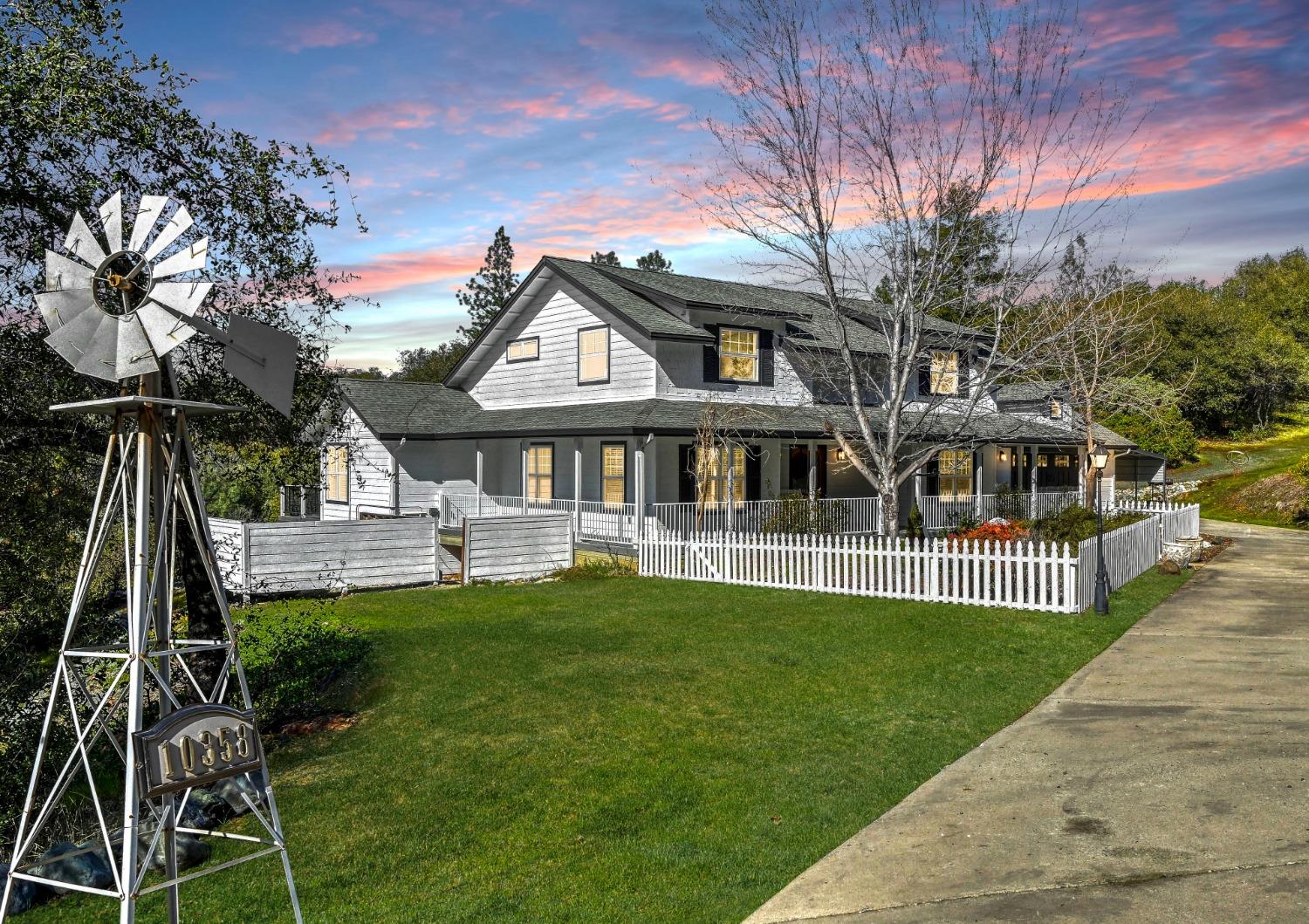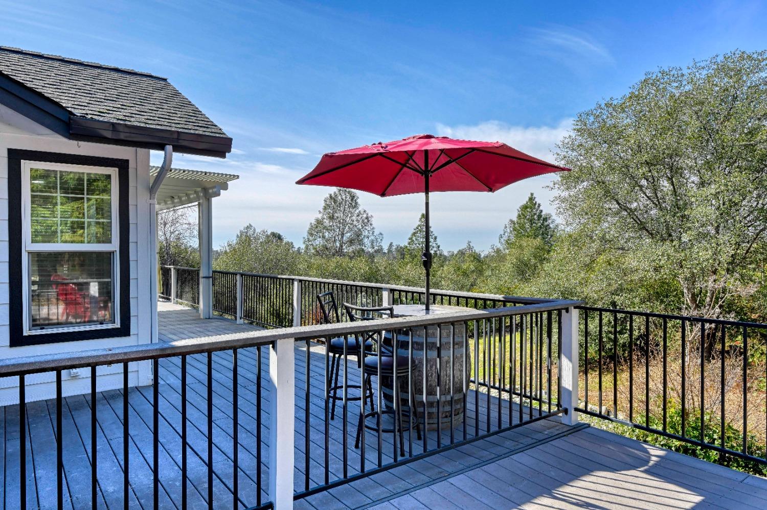 This beautifully remodeled home blends timeless charm with modern updates. A front wrap-around porch with a swing invites you into the light-filled living room, which seamlessly connects to the formal dining area, breakfast nook, and master suite. Two bathrooms feature elegant clawfoot tubs, and contemporary fixtures brighten every space. The master suite offers a cozy seating area, a spacious en-suite bath with a tub and double shower, a walk-in closet, and direct access to the expansive deck. The second bedroom is conveniently located on the main floor. Upstairs, a loft spans the width of the house, with a third bedroom, office area, and full bath. The kitchen features a charming Dutch door, and French doors open to the deck from both the living room and master bedroom. A vaulted ceiling with a statement chandelier creates a stunning focal point, while a firewood stove heats the entire home. Outside, enjoy breathtaking sunsets and twinkling lights of Marysville from the wrap-around deck. The property also offers hiking trails, a potential guest unit building pad, and access to a back road. With owned solar panels, forever views, RV access, this home combines sustainability, style, and comfort.