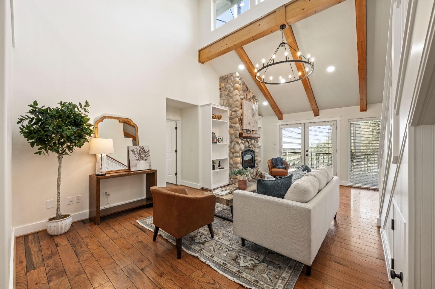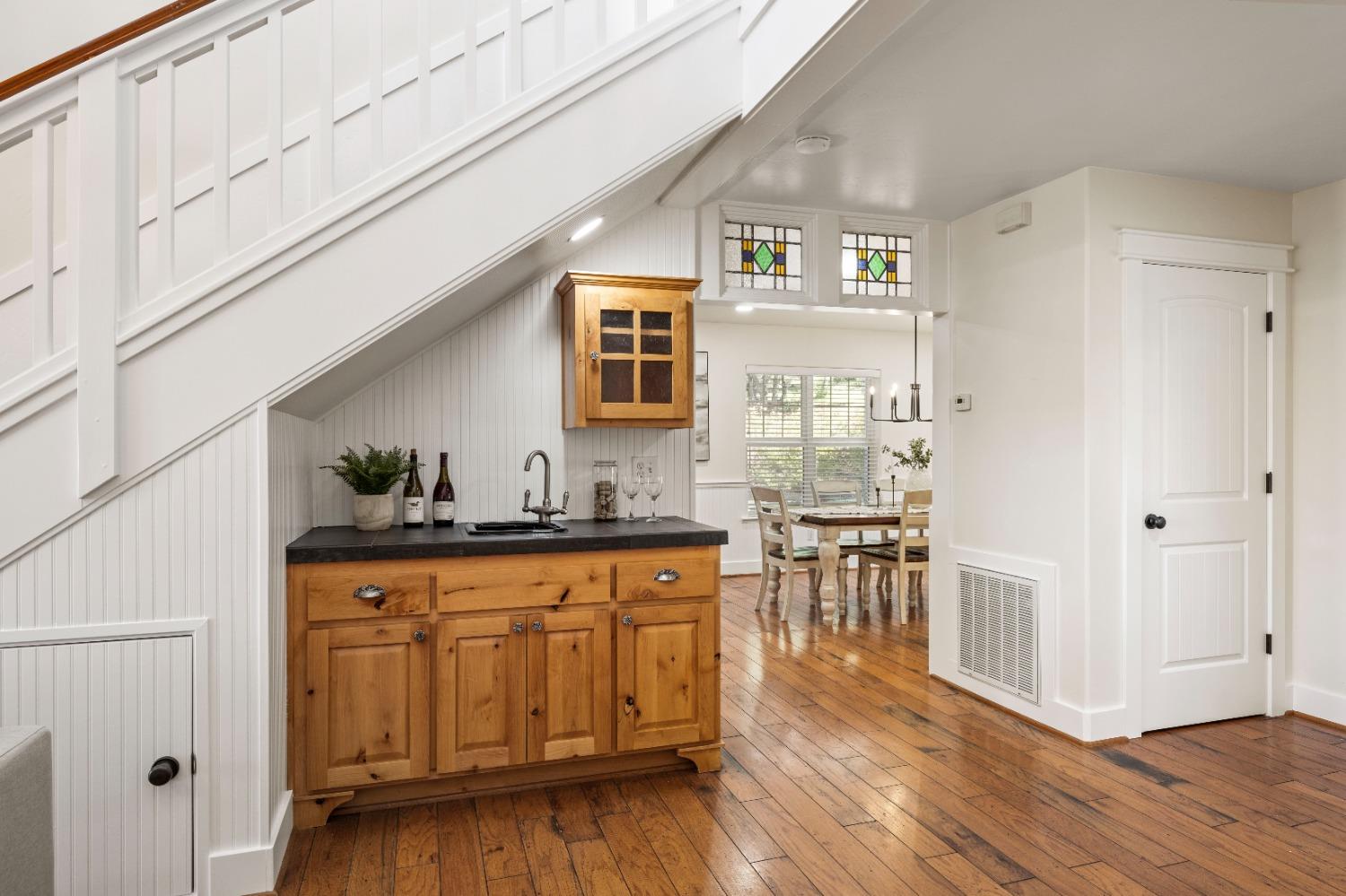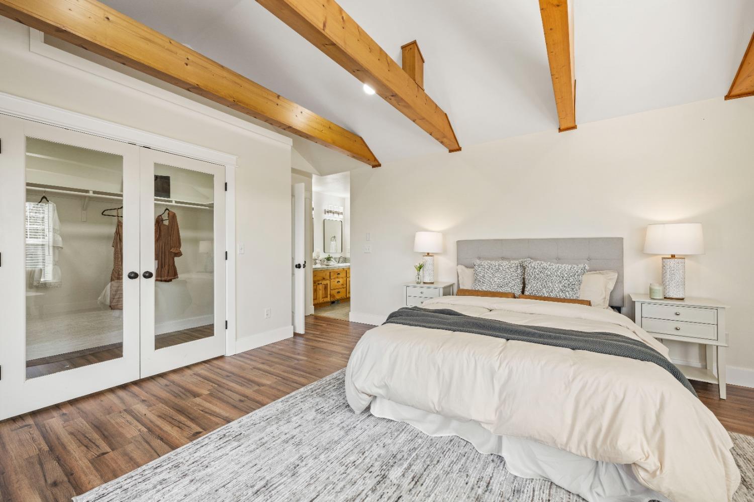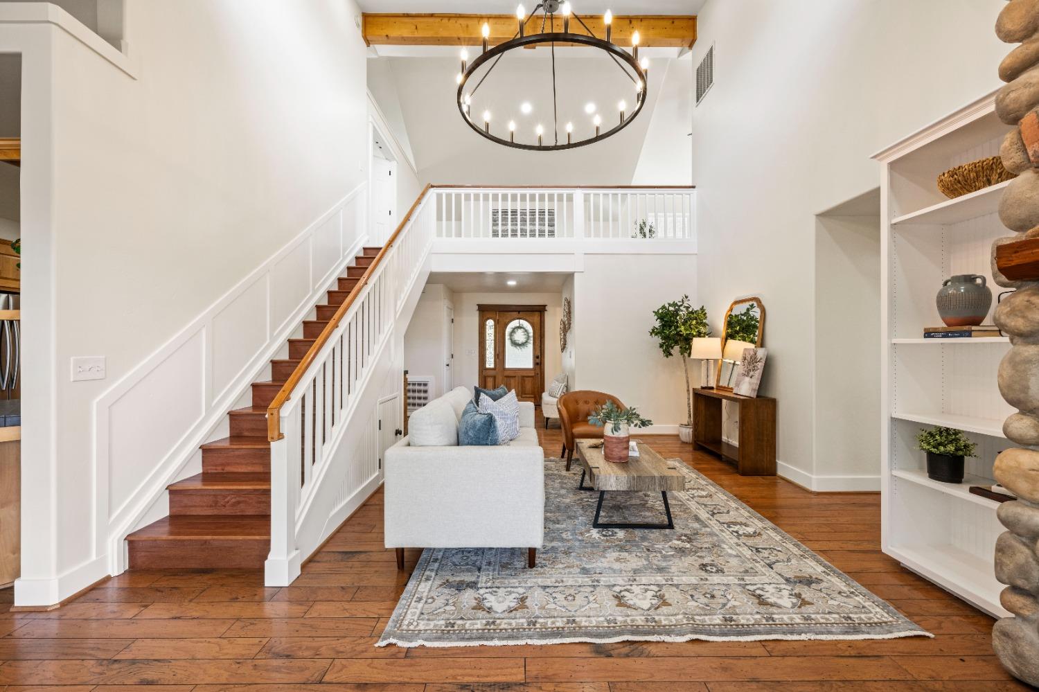 This beautifully remodeled home blends timeless charm with modern updates. A front wrap-around porch with a swing invites you into the light-filled living room, which seamlessly connects to the formal dining area, breakfast nook, and master suite. Two bathrooms feature elegant clawfoot tubs, and contemporary fixtures brighten every space. The master suite offers a cozy seating area, a spacious en-suite bath with a tub and double shower, a walk-in closet, and direct access to the expansive deck. The second bedroom is conveniently located on the main floor. Upstairs, a loft spans the width of the house, with a third bedroom, office area, and full bath. The kitchen features a charming Dutch door, and French doors open to the deck from both the living room and master bedroom. A vaulted ceiling with a statement chandelier creates a stunning focal point, while a firewood stove heats the entire home. Outside, enjoy breathtaking sunsets and twinkling lights of Marysville from the wrap-around deck. The property also offers hiking trails, a potential guest unit building pad, and access to a back road. With owned solar panels, forever views, RV access, this home combines sustainability, style, and comfort.