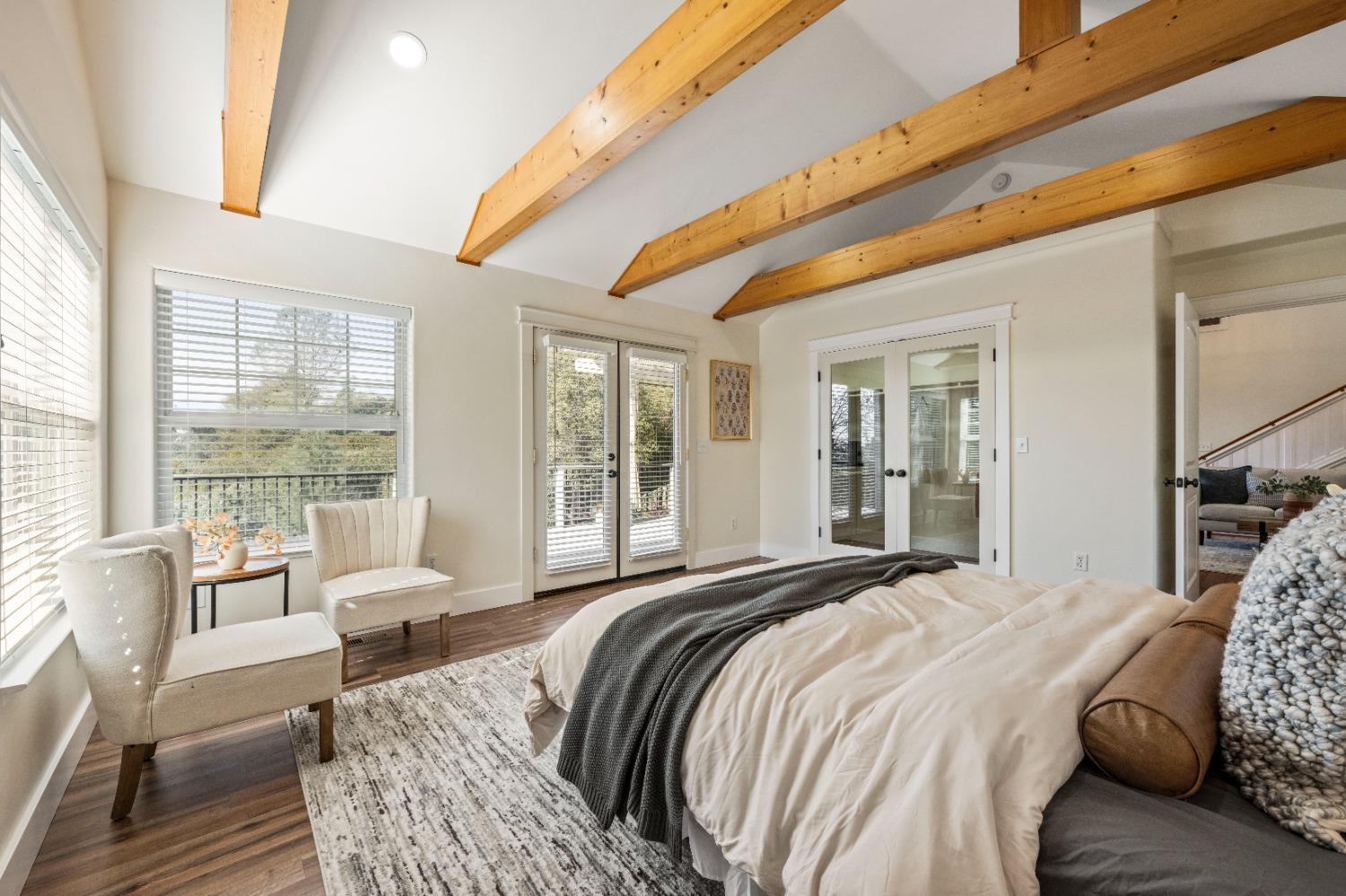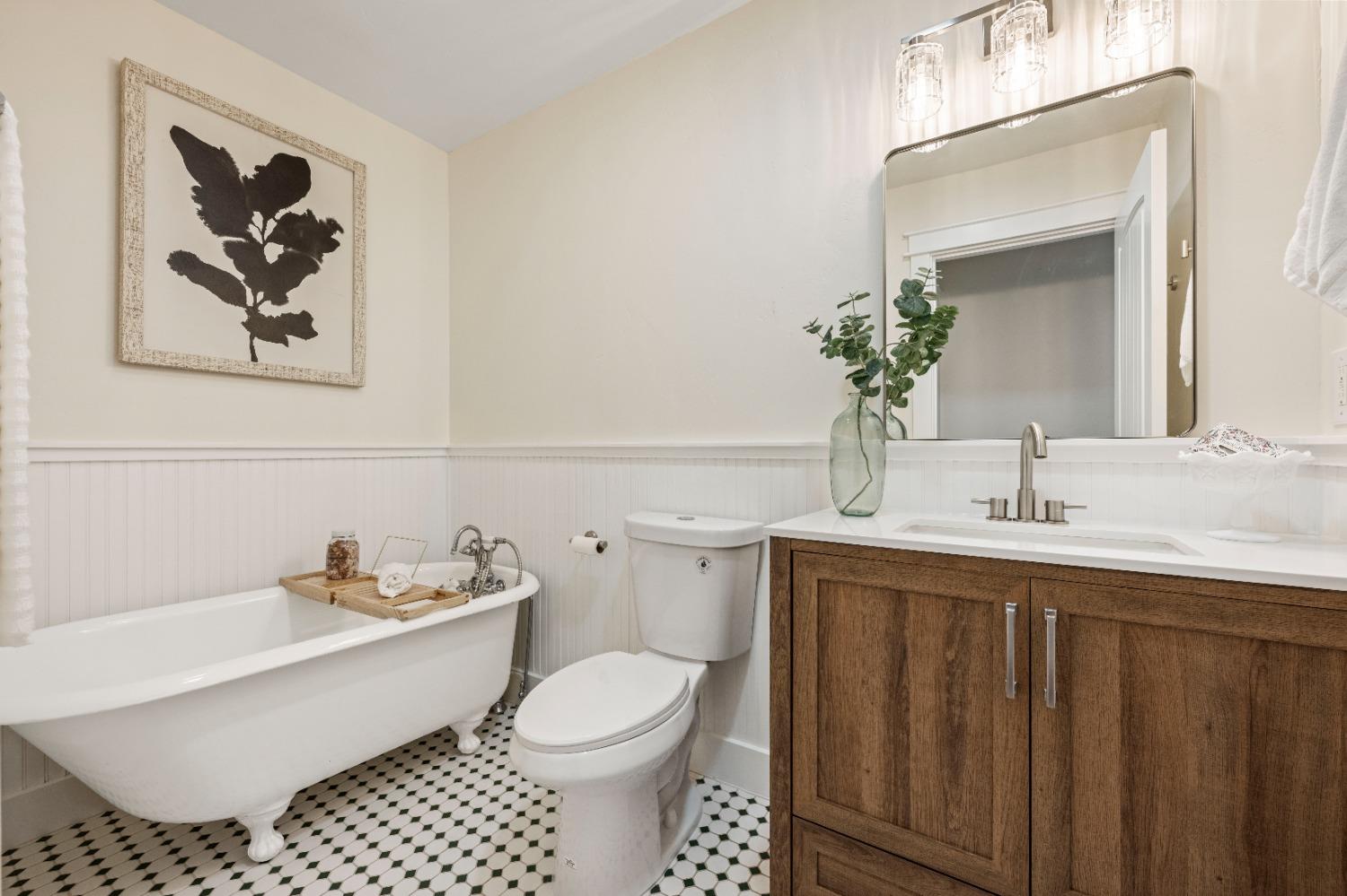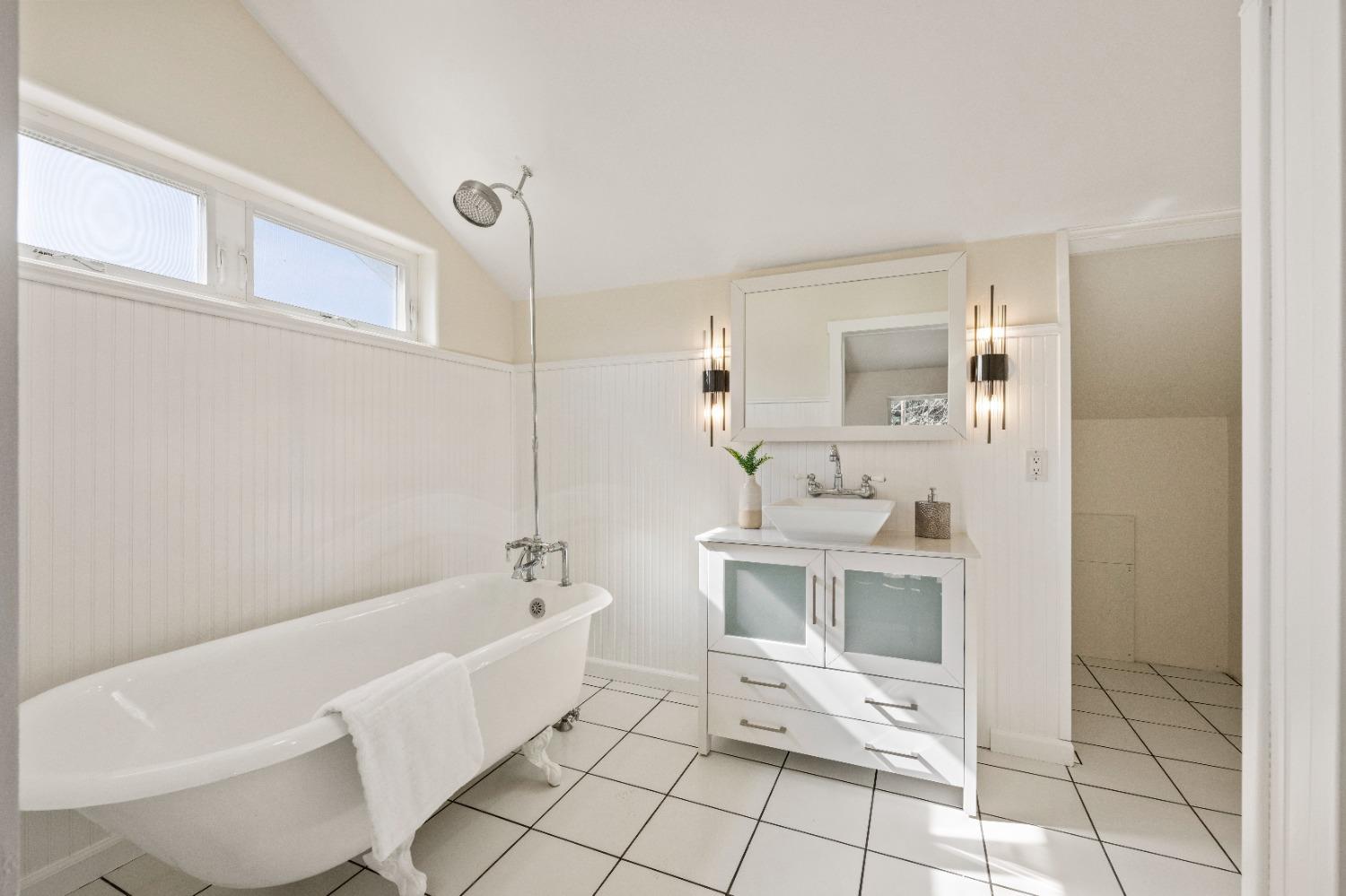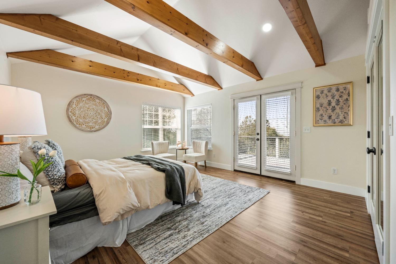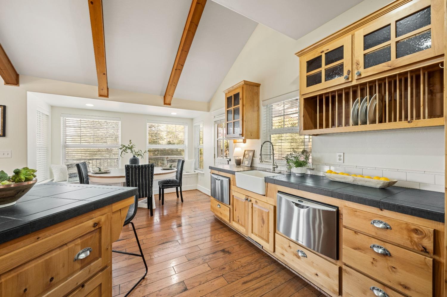 This beautifully remodeled home blends timeless charm with modern updates. A front wrap-around porch with a swing invites you into the light-filled living room, which seamlessly connects to the formal dining area, breakfast nook, and master suite. Two bathrooms feature elegant clawfoot tubs, and contemporary fixtures brighten every space. The master suite offers a cozy seating area, a spacious en-suite bath with a tub and double shower, a walk-in closet, and direct access to the expansive deck. The second bedroom is conveniently located on the main floor. Upstairs, a loft spans the width of the house, with a third bedroom, office area, and full bath. The kitchen features a charming Dutch door, and French doors open to the deck from both the living room and master bedroom. A vaulted ceiling with a statement chandelier creates a stunning focal point, while a firewood stove heats the entire home. Outside, enjoy breathtaking sunsets and twinkling lights of Marysville from the wrap-around deck. The property also offers hiking trails, a potential guest unit building pad, and access to a back road. With owned solar panels, forever views, RV access, this home combines sustainability, style, and comfort.