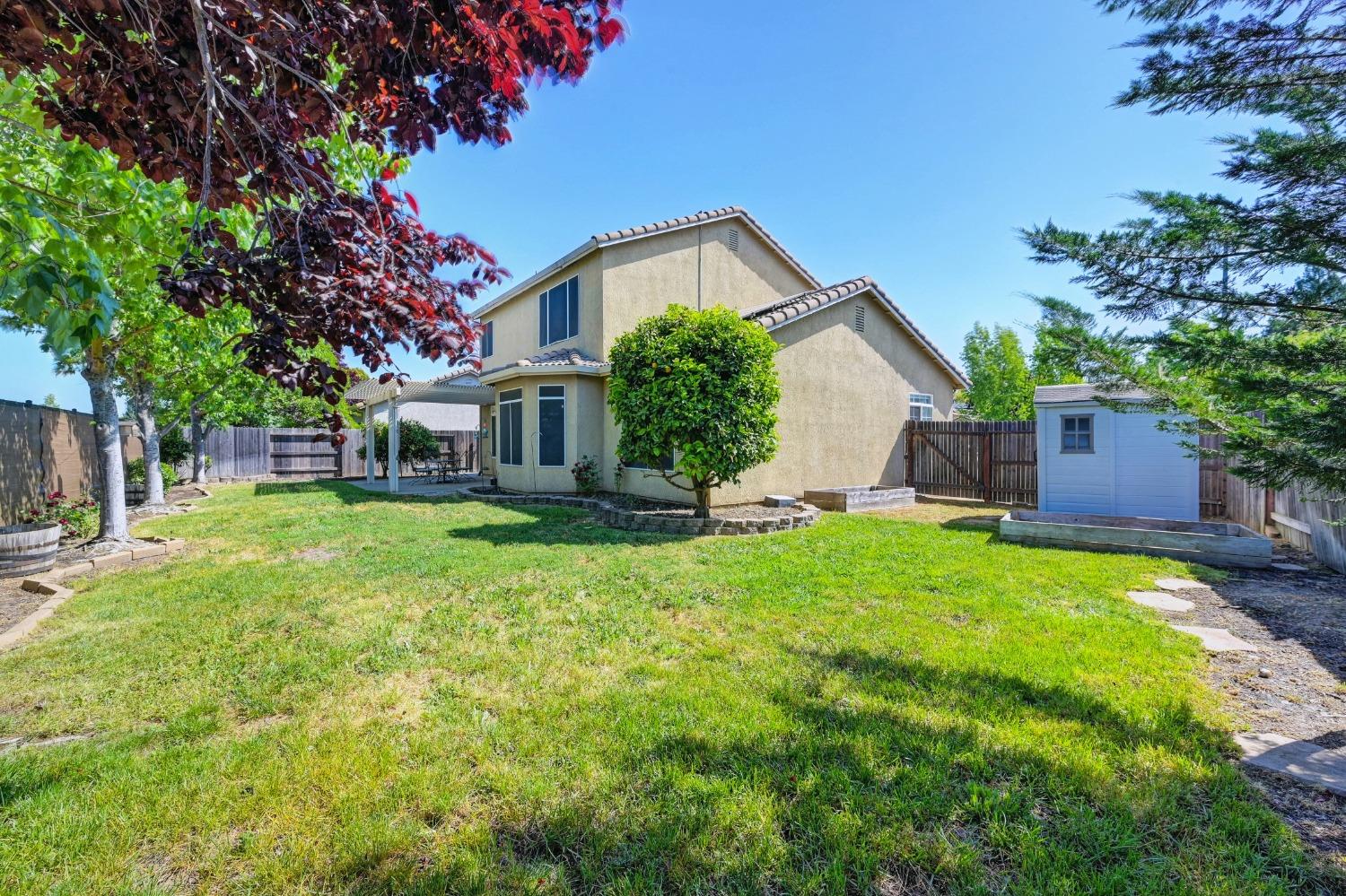 MAJOR PRICE IMPROVEMENT! Welcome to 104 Douglas Ct, a delightful two story home in the heart of Lincoln, where comfort seamlessly blends with style. Nestled in a quiet cul-de-sac, this residence offers 1,973 square feet of thoughtfully designed living space. As you enter, you'll be greeted by a freshly updated kitchen, showcasing granite countertops and painted oak cabinets, complete with a dining bar & a cozy breakfast nook. The pantry provides ample storage, making it easy to keep your culinary space organized functional. Relax in the inviting family room, and highlighted by a charming fireplace ideal for cozy nights in. The main level also features a spacious living room, dining room, a convenient updated half bathroom, and a laundry room (washer/dryer inc.) Venture upstairs to find 3 generous bedrooms (all with walk-in closets) and two bathrooms. The home is adorned with a blend of carpet and LVP flooring, offering a modern touch throughout. The three-car garage provides versatile options for storage, a workspace, or room for all your toys! Step outside to enjoy a large backyard complete with covered patio, fruit trees, garden bed, shed, dog run, with the added possibility of RV access. Premium solar with 3 batteries. No Mello Roos or HOA.