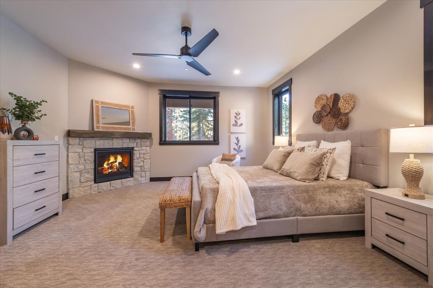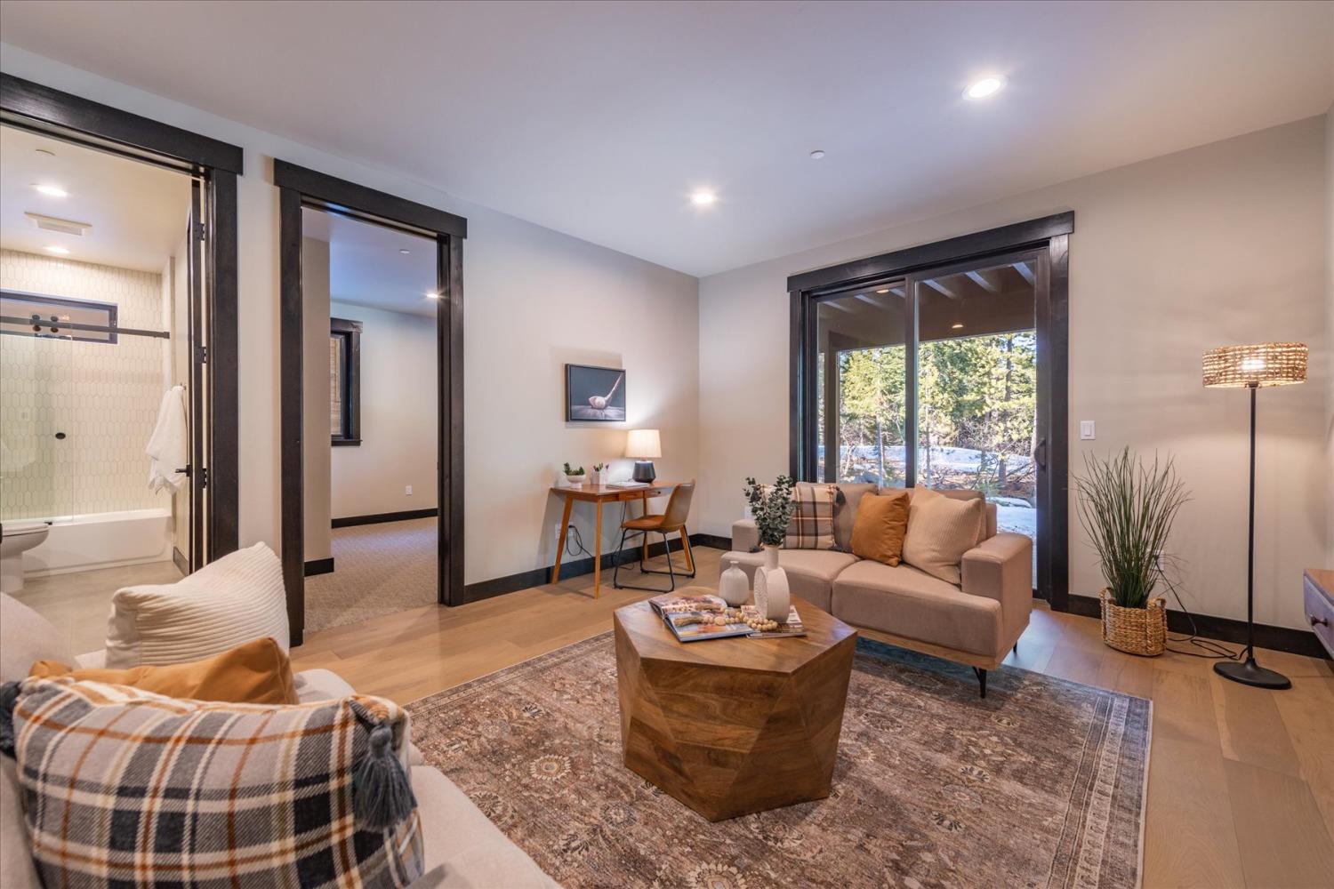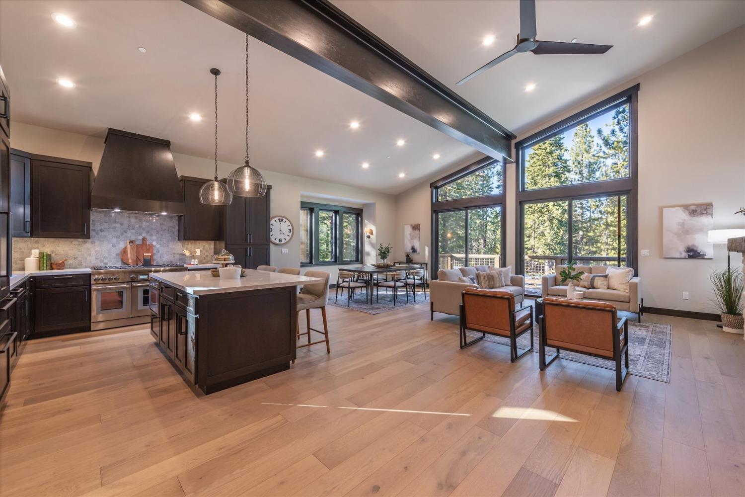 Experience the ultimate in modern mountain living with this stunning new construction, perfectly situated on the 18th tee box of Tahoe Donner. This luxurious home boasts two spacious master bedrooms, each featuring private ensuite baths and cozy fireplaces ideal for relaxing after a day of adventure. The thoughtfully designed floor plan includes a game room, perfect for entertaining family and friends, while the expansive outdoor space offers endless opportunities to enjoy the beauty of Tahoe Donner. Whether it's golfing, hiking, biking, or skiing, this home places you at the heart of all the action.Indulge in the perfect blend of elegance and outdoor recreation with this exceptional property.