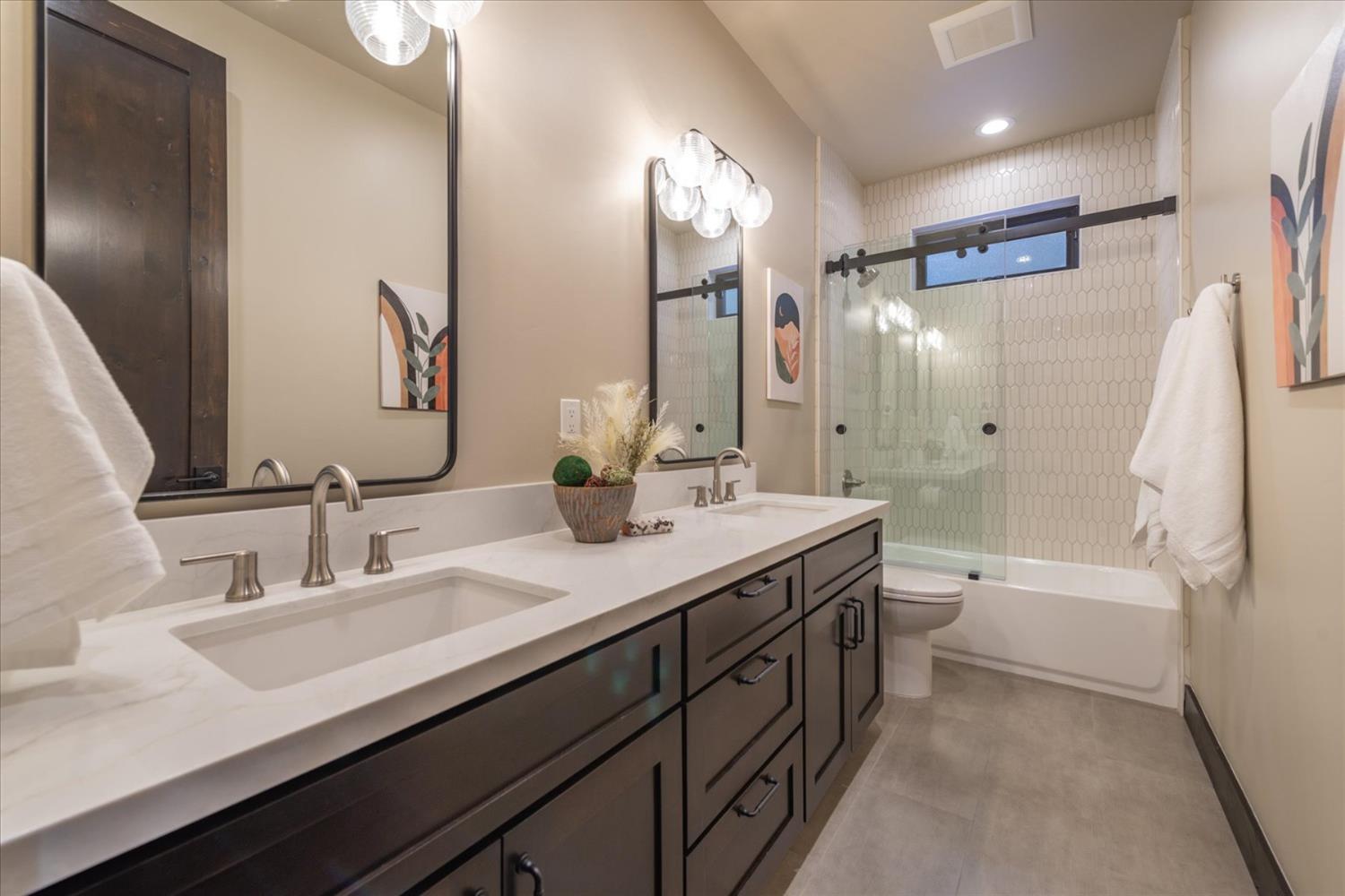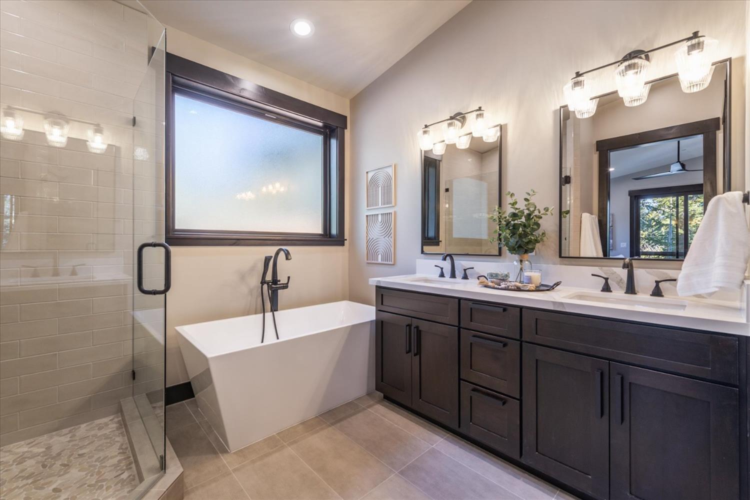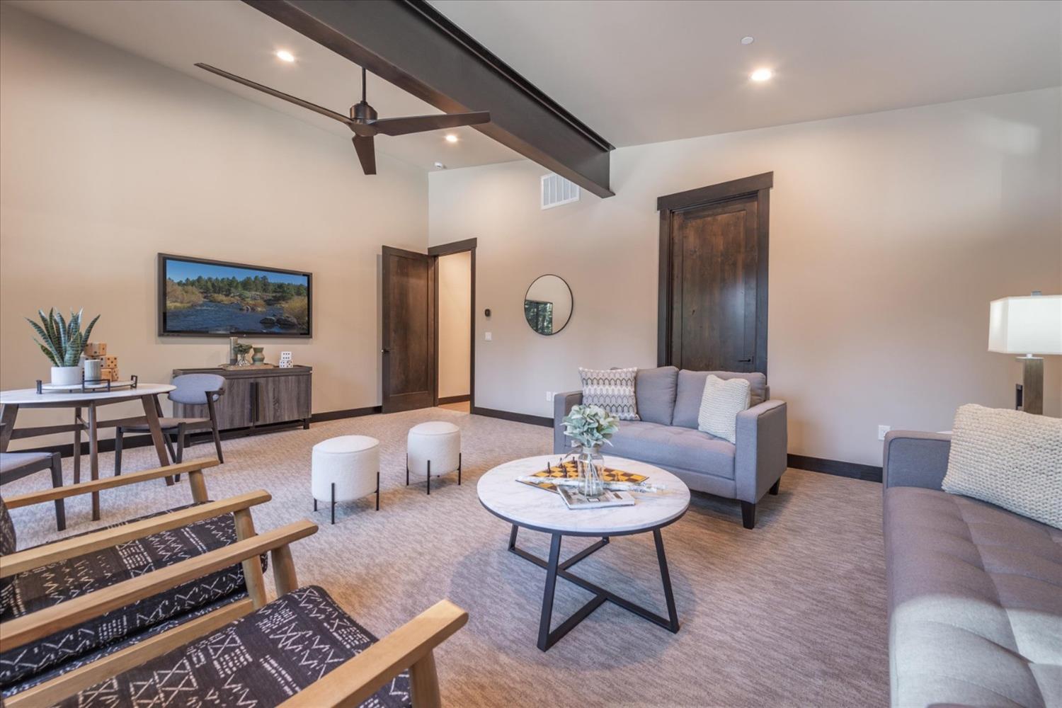 Experience the ultimate in modern mountain living with this stunning new construction, perfectly situated on the 18th tee box of Tahoe Donner. This luxurious home boasts two spacious master bedrooms, each featuring private ensuite baths and cozy fireplaces ideal for relaxing after a day of adventure. The thoughtfully designed floor plan includes a game room, perfect for entertaining family and friends, while the expansive outdoor space offers endless opportunities to enjoy the beauty of Tahoe Donner. Whether it's golfing, hiking, biking, or skiing, this home places you at the heart of all the action.Indulge in the perfect blend of elegance and outdoor recreation with this exceptional property.