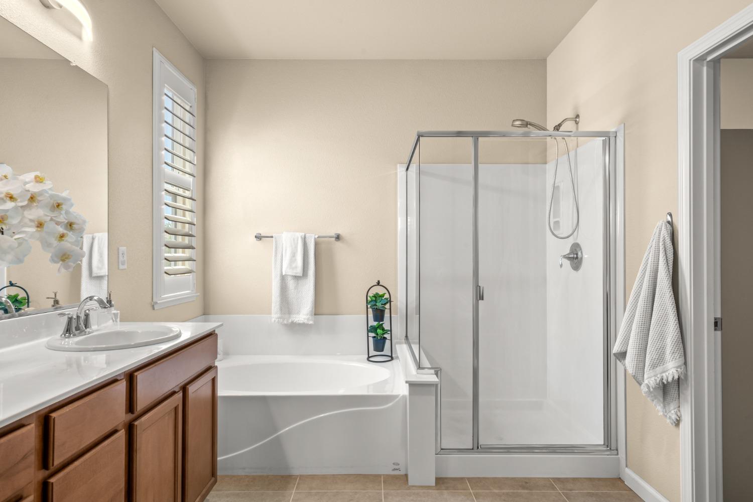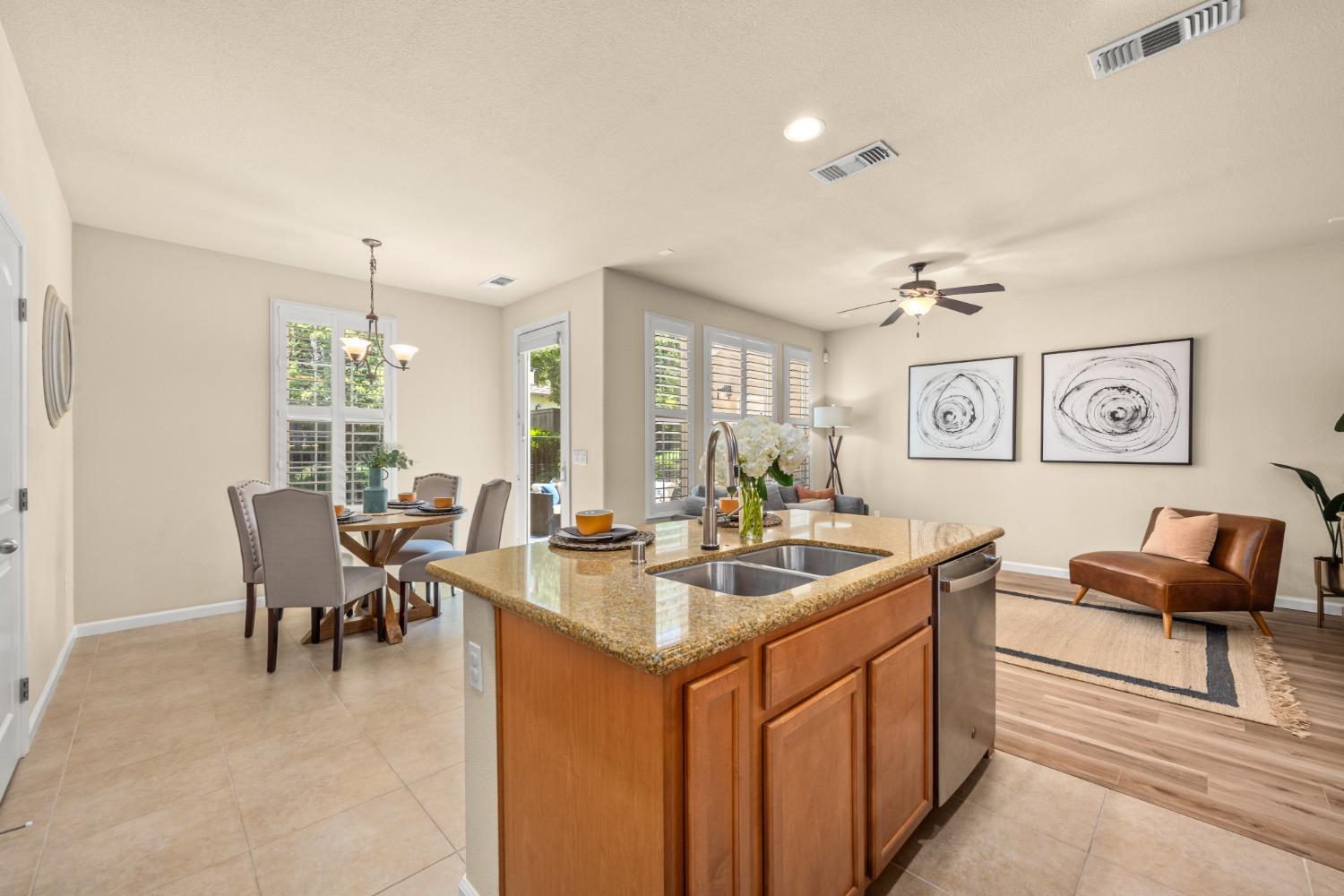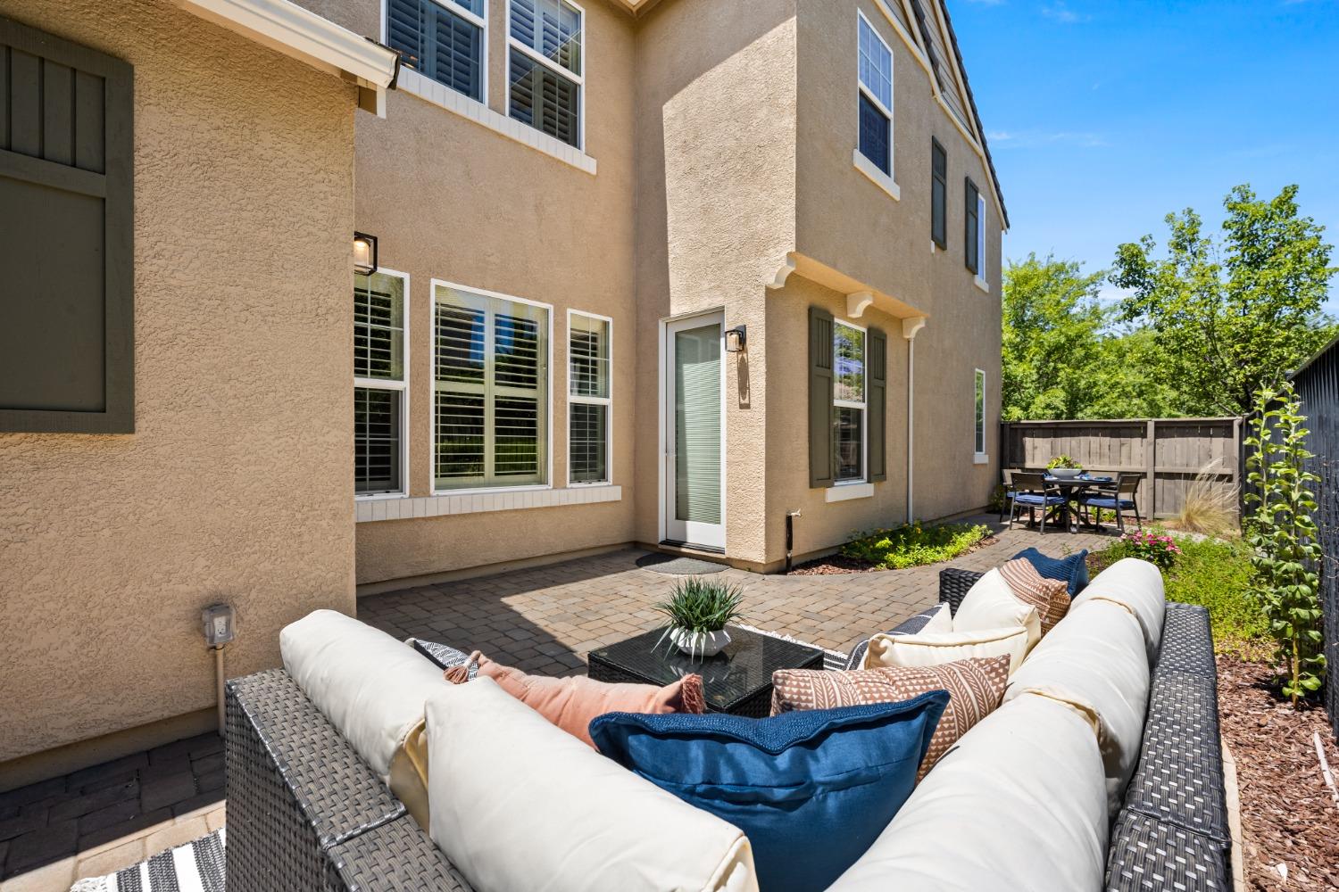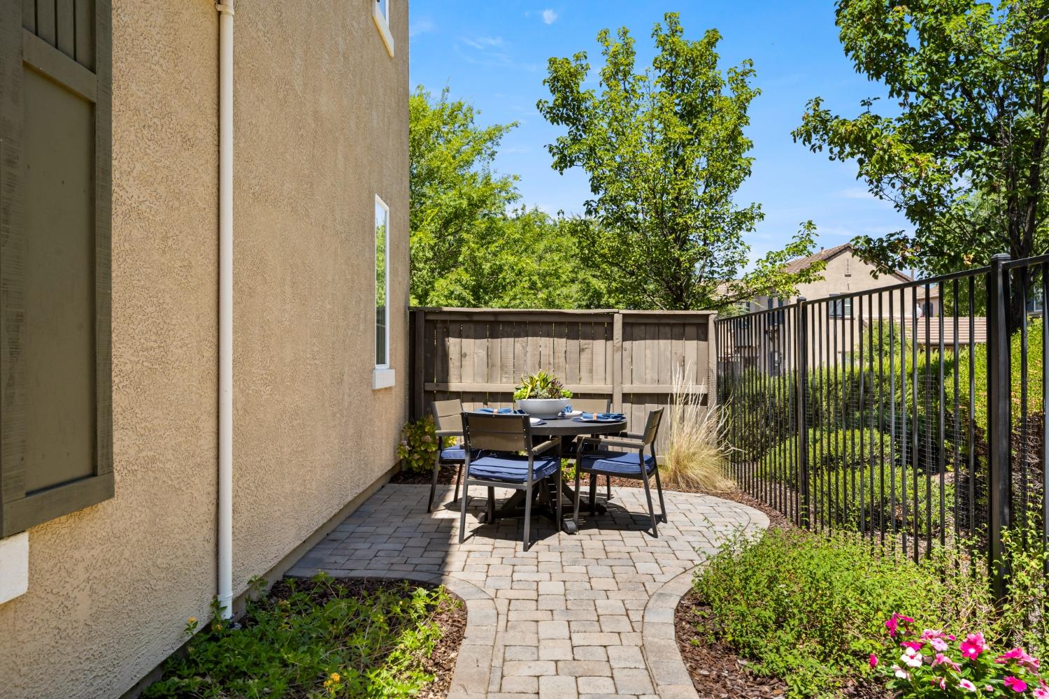 Nestled within the tree-lined streets of the gated community of Villemont, this home offers a tranquil and secure environment, complemented by community amenities including a pool, spa, gym, clubhouse, and park. Upon entering, you'll be greeted by high ceilings that add a sense of spaciousness and sophistication to the home. The layout provides flexible spaces, allowing for seamless adaptation to various lifestyle needs. Its thoughtfully designed floor plan, with primary suites on each floor, creates an opportunity for multi-generational living, catering to diverse family dynamics. The kitchen is a chef's delight with granite countertops, stainless steel appliances, and a layout that opens to both the living area and an inviting eat-in kitchen. The island features bar seating, perfect for casual meals or entertaining guests. Upstairs you will find a generously sized primary suite, 2 additional bedrooms, a laundry room and a loft that presents an ideal setting for an office, home gym, or second living area. With ample storage spaces and large closets, this home ensures organizational ease. Step outside to discover a backyard oasis that doesn't share any fences, and opens to an expansive area of mature landscaping that provides a serene buffer between you and the neighbors.