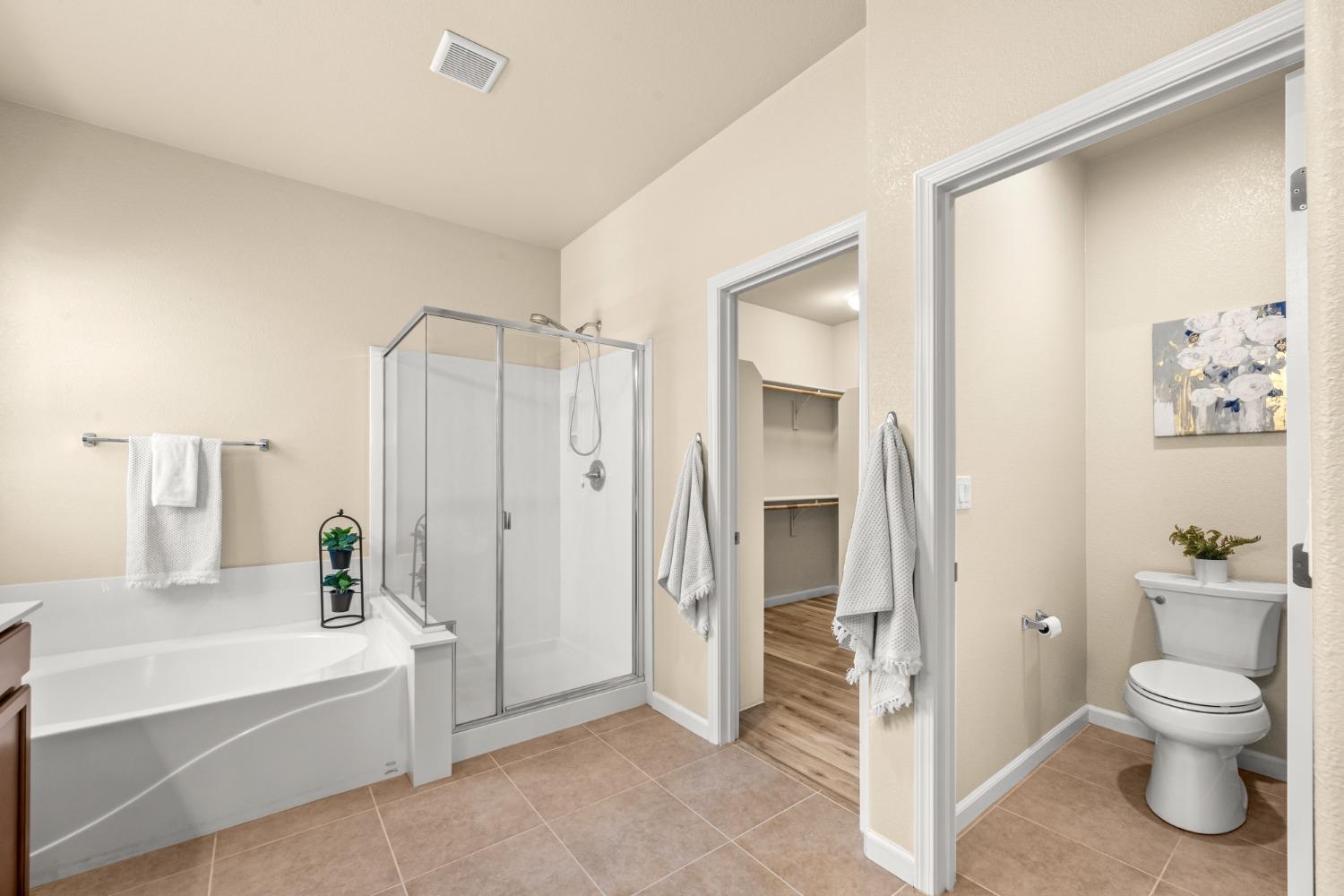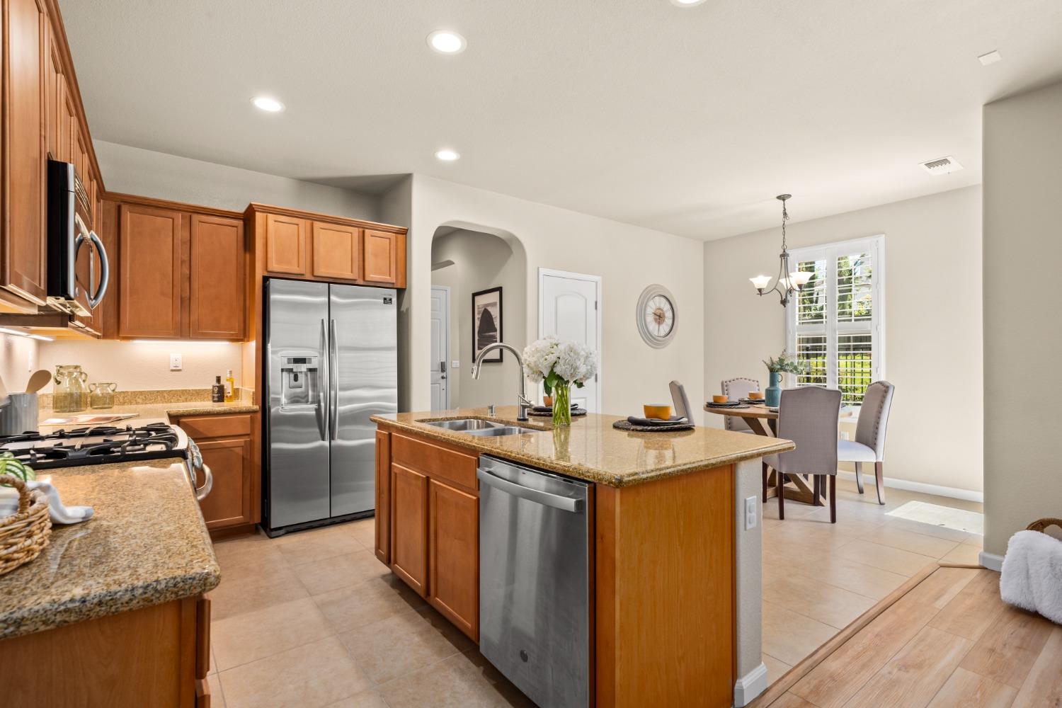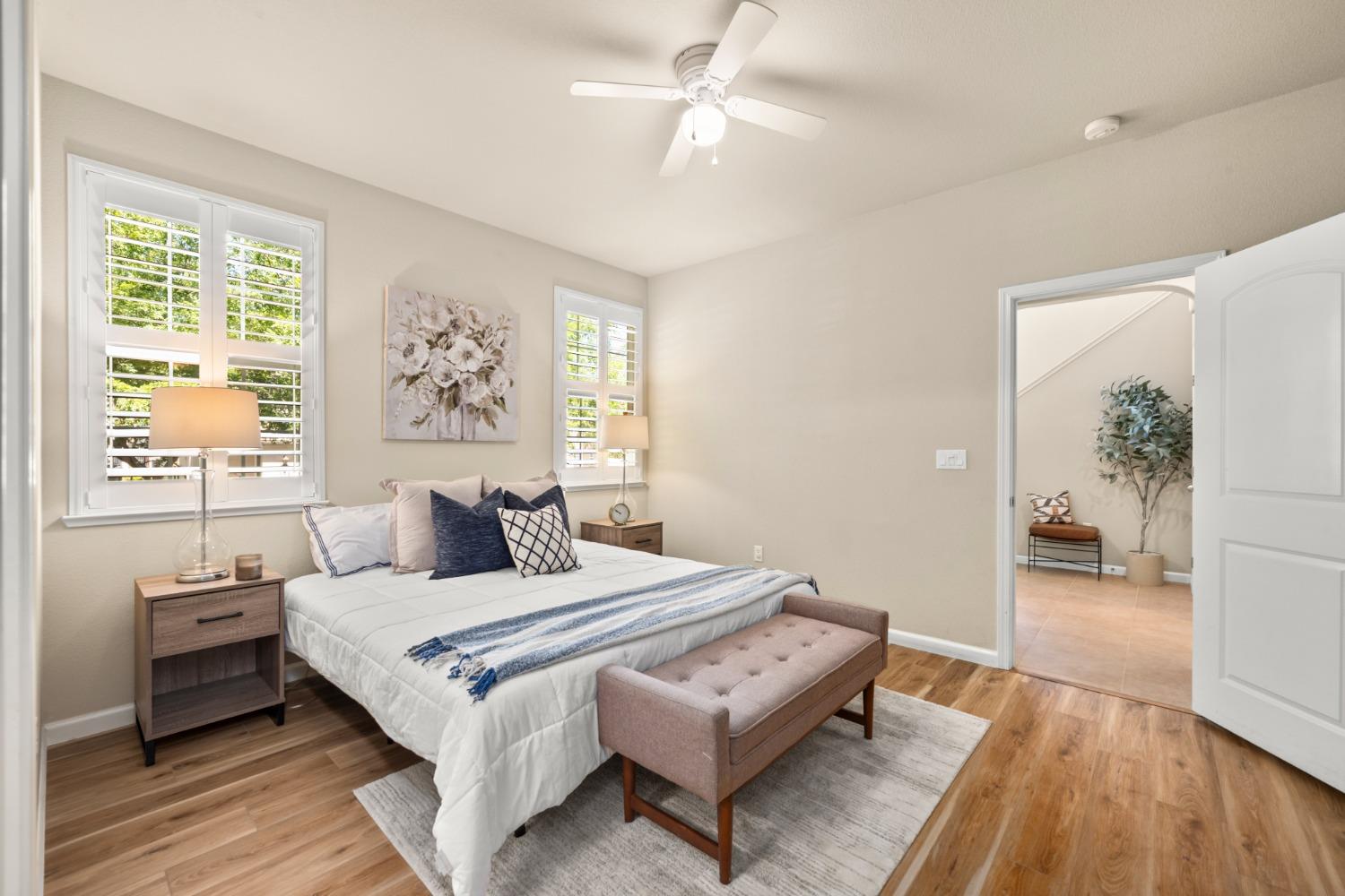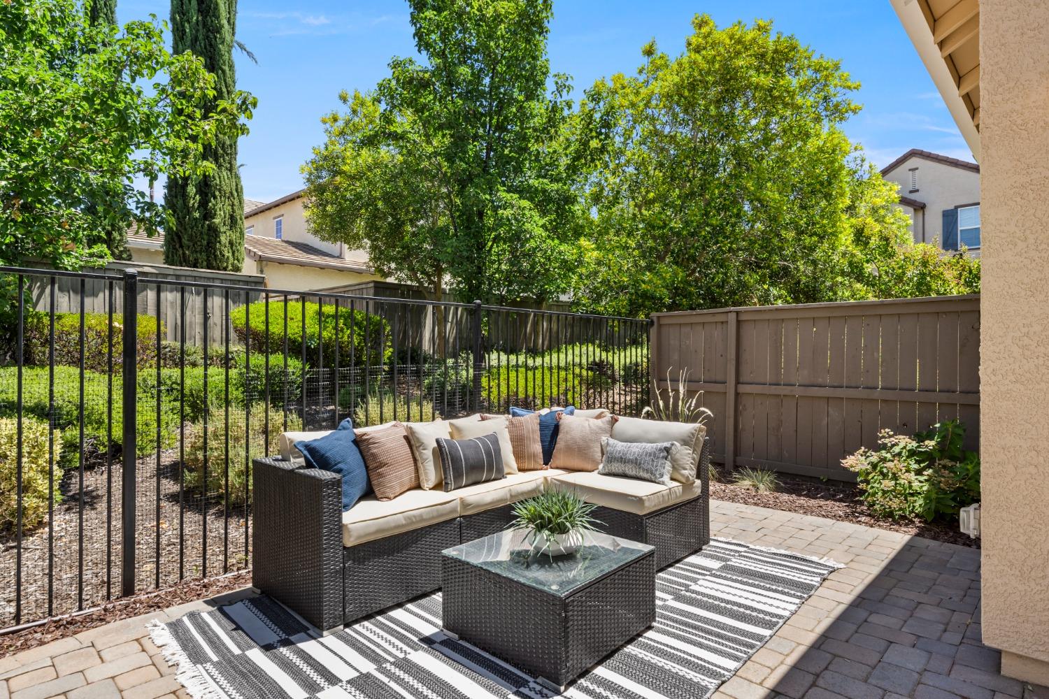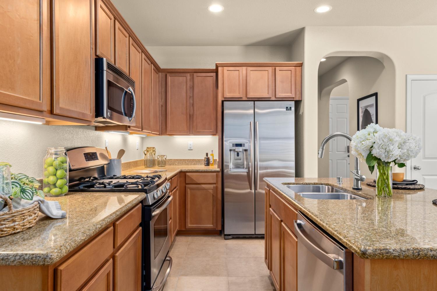 Nestled within the tree-lined streets of the gated community of Villemont, this home offers a tranquil and secure environment, complemented by community amenities including a pool, spa, gym, clubhouse, and park. Upon entering, you'll be greeted by high ceilings that add a sense of spaciousness and sophistication to the home. The layout provides flexible spaces, allowing for seamless adaptation to various lifestyle needs. Its thoughtfully designed floor plan, with primary suites on each floor, creates an opportunity for multi-generational living, catering to diverse family dynamics. The kitchen is a chef's delight with granite countertops, stainless steel appliances, and a layout that opens to both the living area and an inviting eat-in kitchen. The island features bar seating, perfect for casual meals or entertaining guests. Upstairs you will find a generously sized primary suite, 2 additional bedrooms, a laundry room and a loft that presents an ideal setting for an office, home gym, or second living area. With ample storage spaces and large closets, this home ensures organizational ease. Step outside to discover a backyard oasis that doesn't share any fences, and opens to an expansive area of mature landscaping that provides a serene buffer between you and the neighbors.
