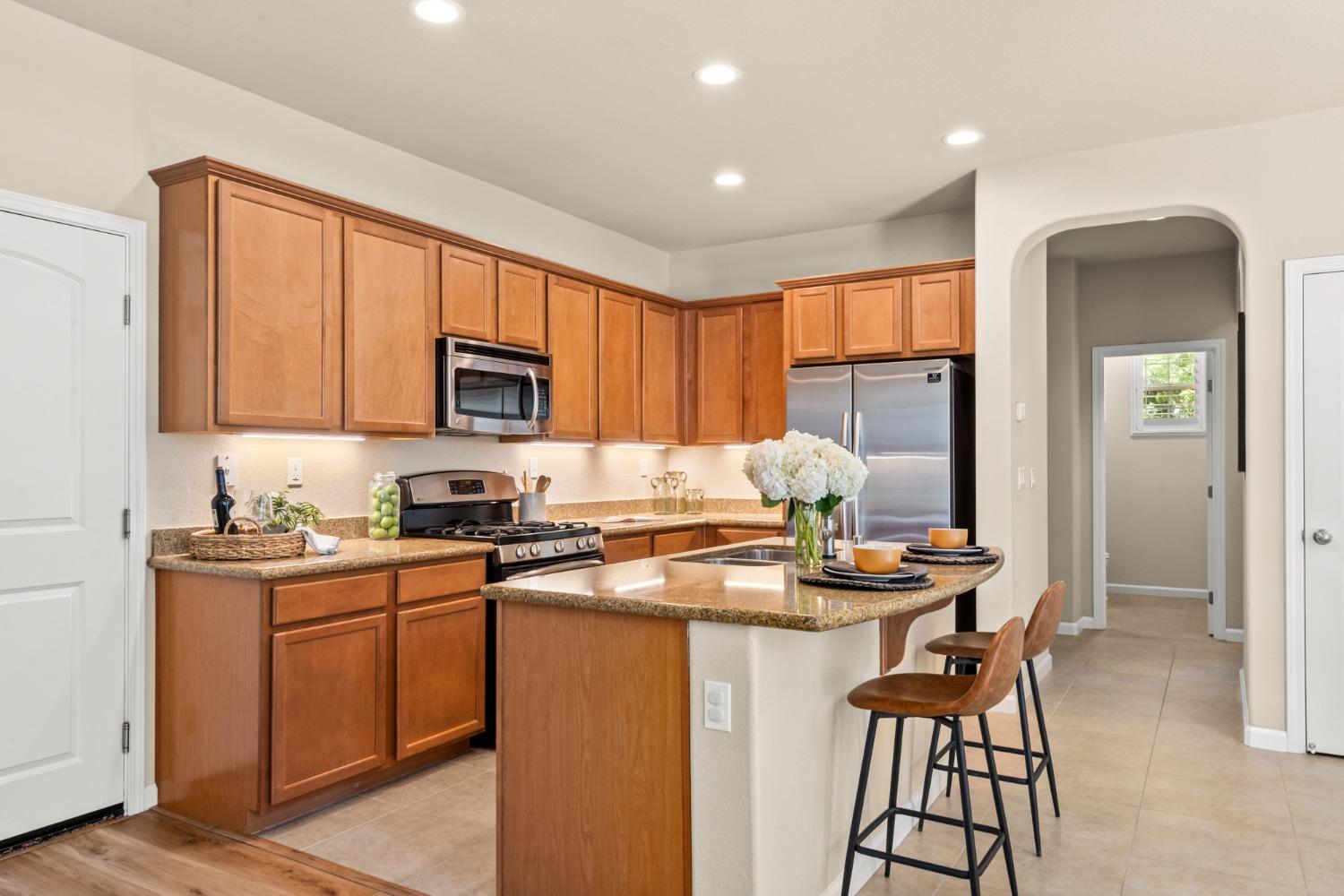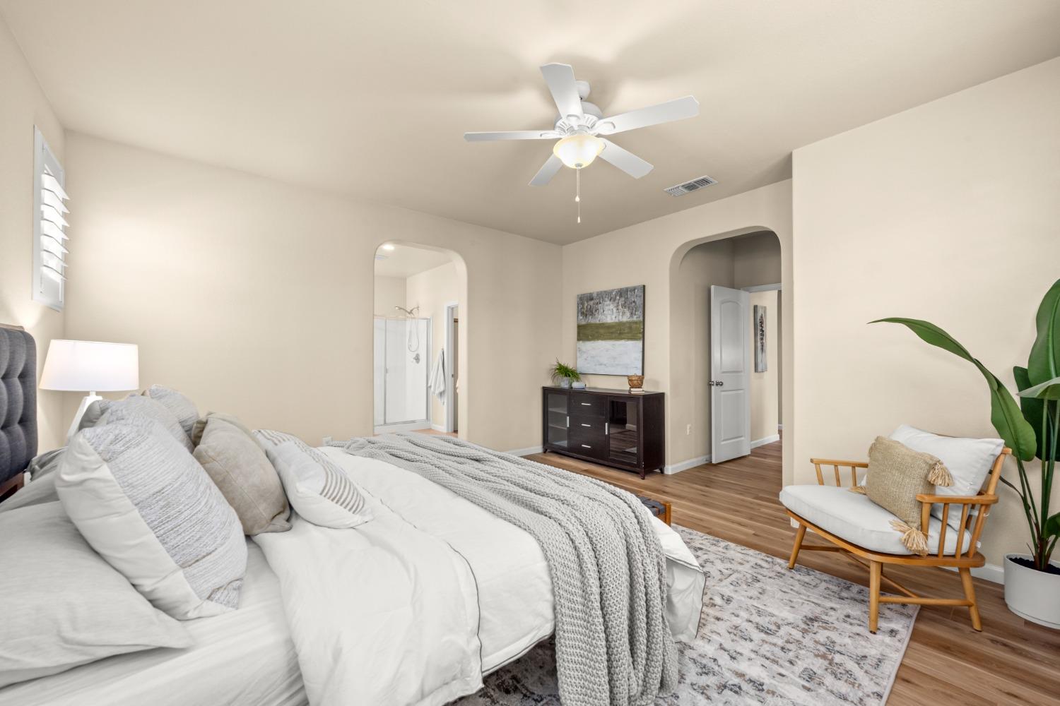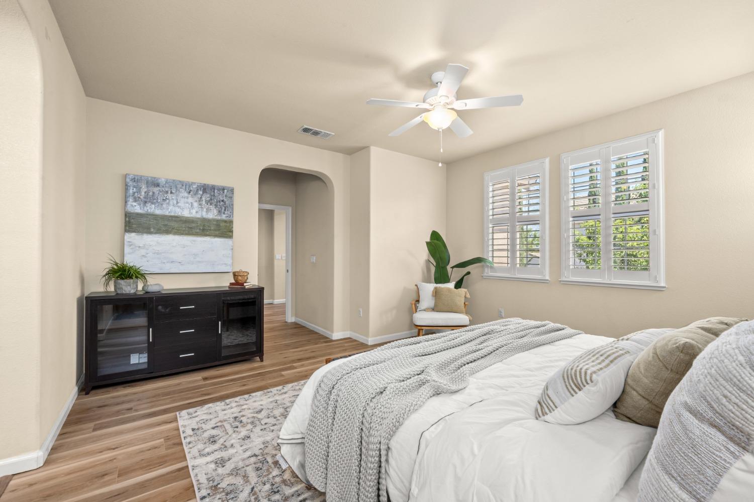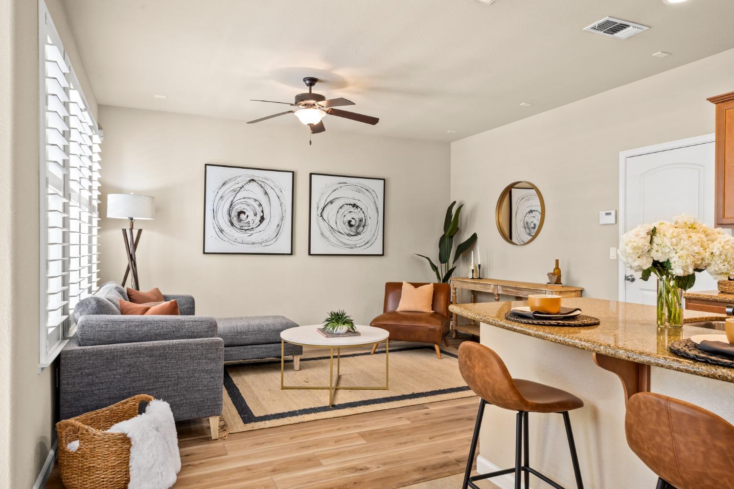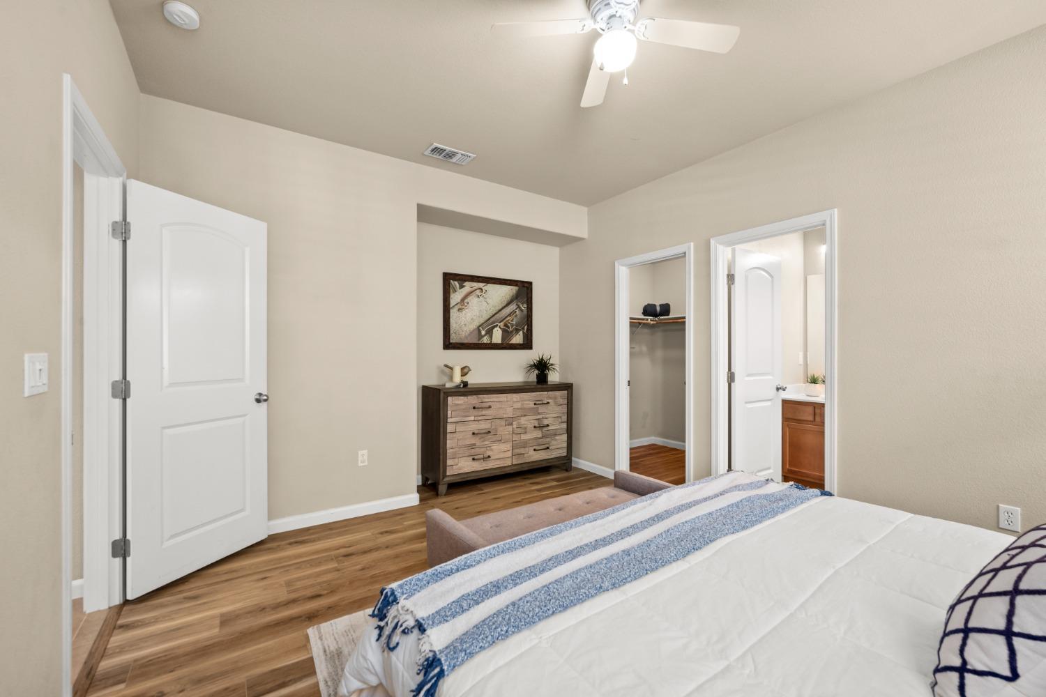 Nestled within the tree-lined streets of the gated community of Villemont, this home offers a tranquil and secure environment, complemented by community amenities including a pool, spa, gym, clubhouse, and park. Upon entering, you'll be greeted by high ceilings that add a sense of spaciousness and sophistication to the home. The layout provides flexible spaces, allowing for seamless adaptation to various lifestyle needs. Its thoughtfully designed floor plan, with primary suites on each floor, creates an opportunity for multi-generational living, catering to diverse family dynamics. The kitchen is a chef's delight with granite countertops, stainless steel appliances, and a layout that opens to both the living area and an inviting eat-in kitchen. The island features bar seating, perfect for casual meals or entertaining guests. Upstairs you will find a generously sized primary suite, 2 additional bedrooms, a laundry room and a loft that presents an ideal setting for an office, home gym, or second living area. With ample storage spaces and large closets, this home ensures organizational ease. Step outside to discover a backyard oasis that doesn't share any fences, and opens to an expansive area of mature landscaping that provides a serene buffer between you and the neighbors.