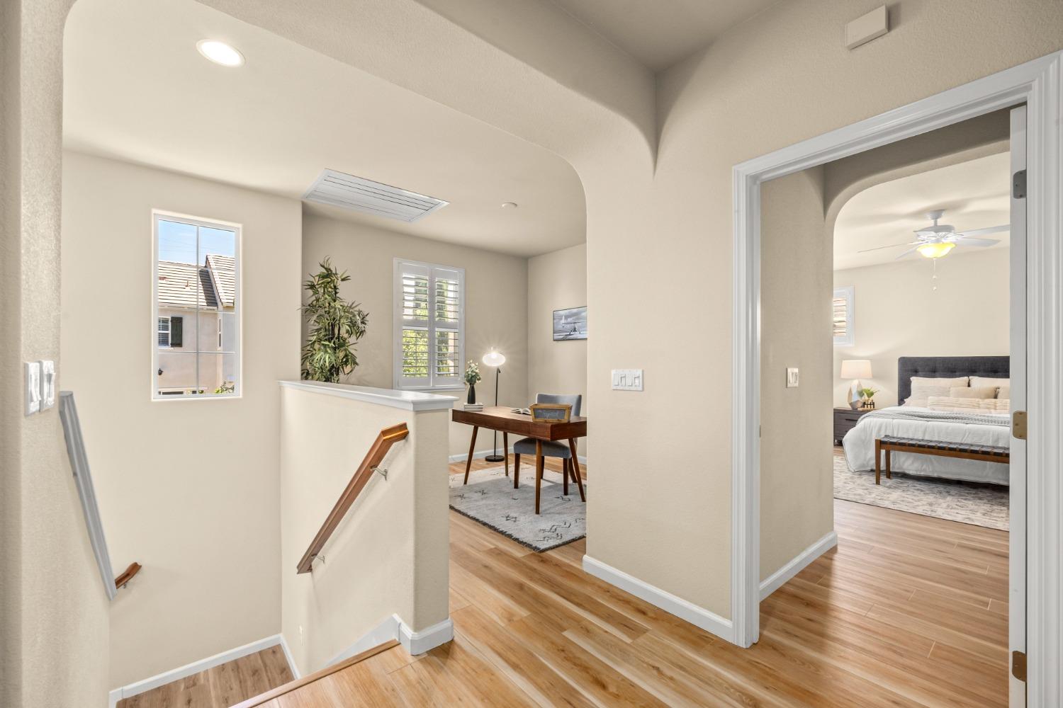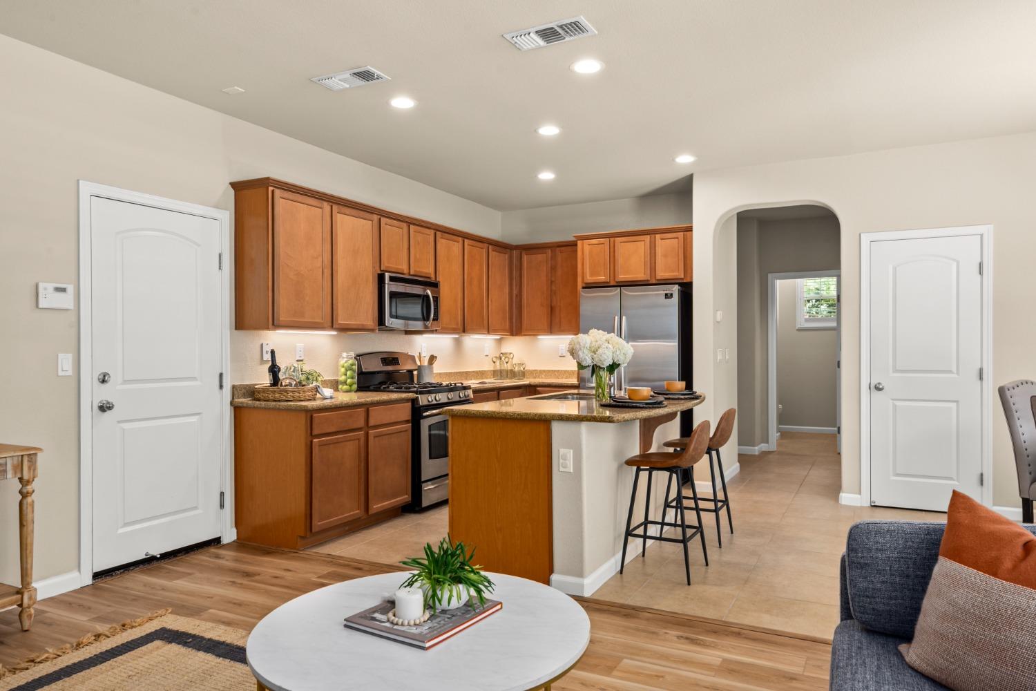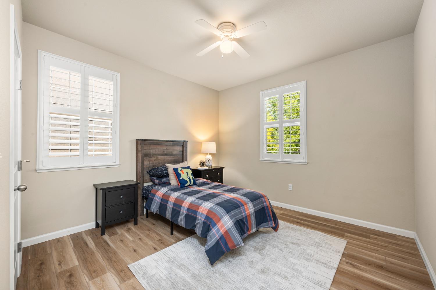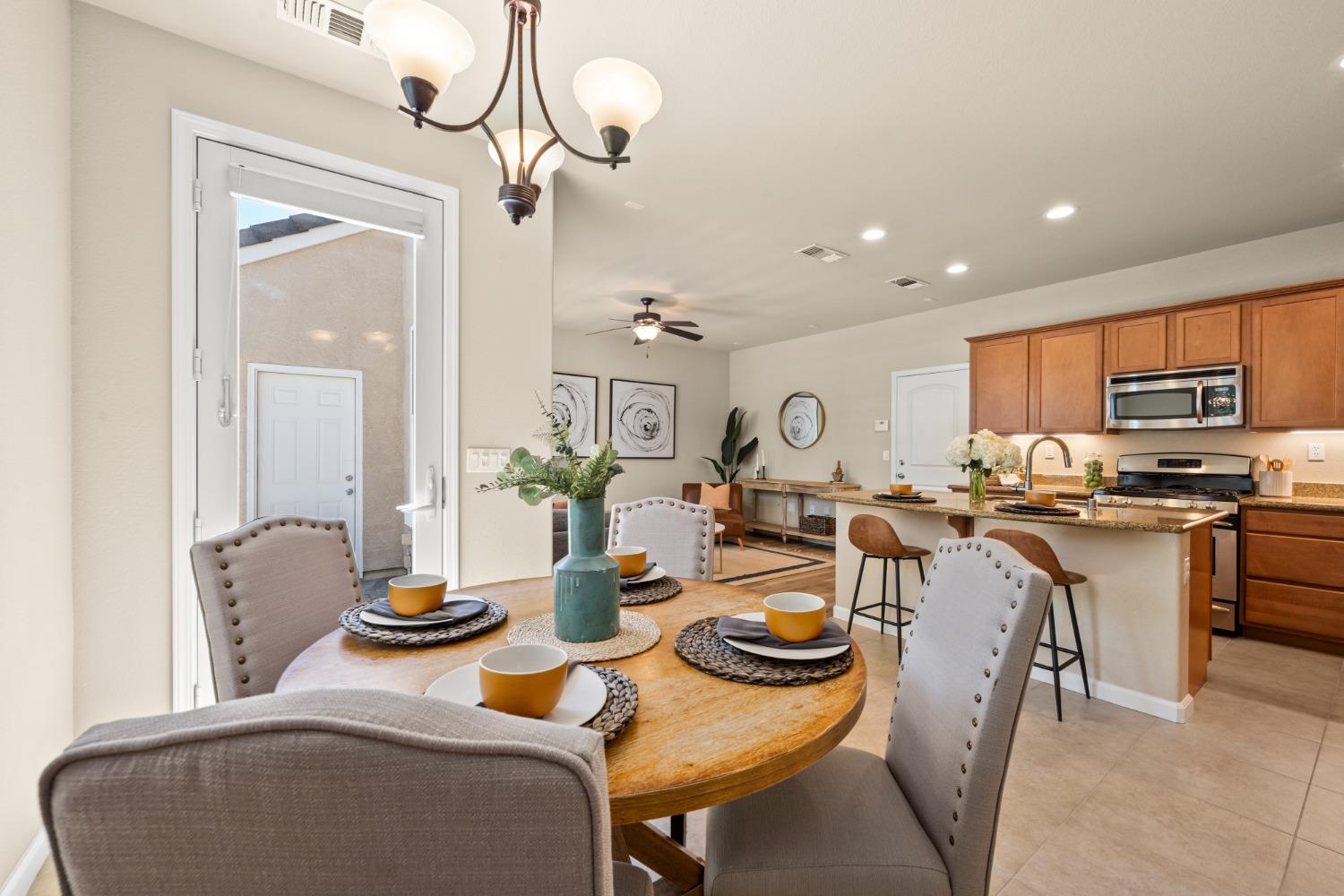 Nestled within the tree-lined streets of the gated community of Villemont, this home offers a tranquil and secure environment, complemented by community amenities including a pool, spa, gym, clubhouse, and park. Upon entering, you'll be greeted by high ceilings that add a sense of spaciousness and sophistication to the home. The layout provides flexible spaces, allowing for seamless adaptation to various lifestyle needs. Its thoughtfully designed floor plan, with primary suites on each floor, creates an opportunity for multi-generational living, catering to diverse family dynamics. The kitchen is a chef's delight with granite countertops, stainless steel appliances, and a layout that opens to both the living area and an inviting eat-in kitchen. The island features bar seating, perfect for casual meals or entertaining guests. Upstairs you will find a generously sized primary suite, 2 additional bedrooms, a laundry room and a loft that presents an ideal setting for an office, home gym, or second living area. With ample storage spaces and large closets, this home ensures organizational ease. Step outside to discover a backyard oasis that doesn't share any fences, and opens to an expansive area of mature landscaping that provides a serene buffer between you and the neighbors.
