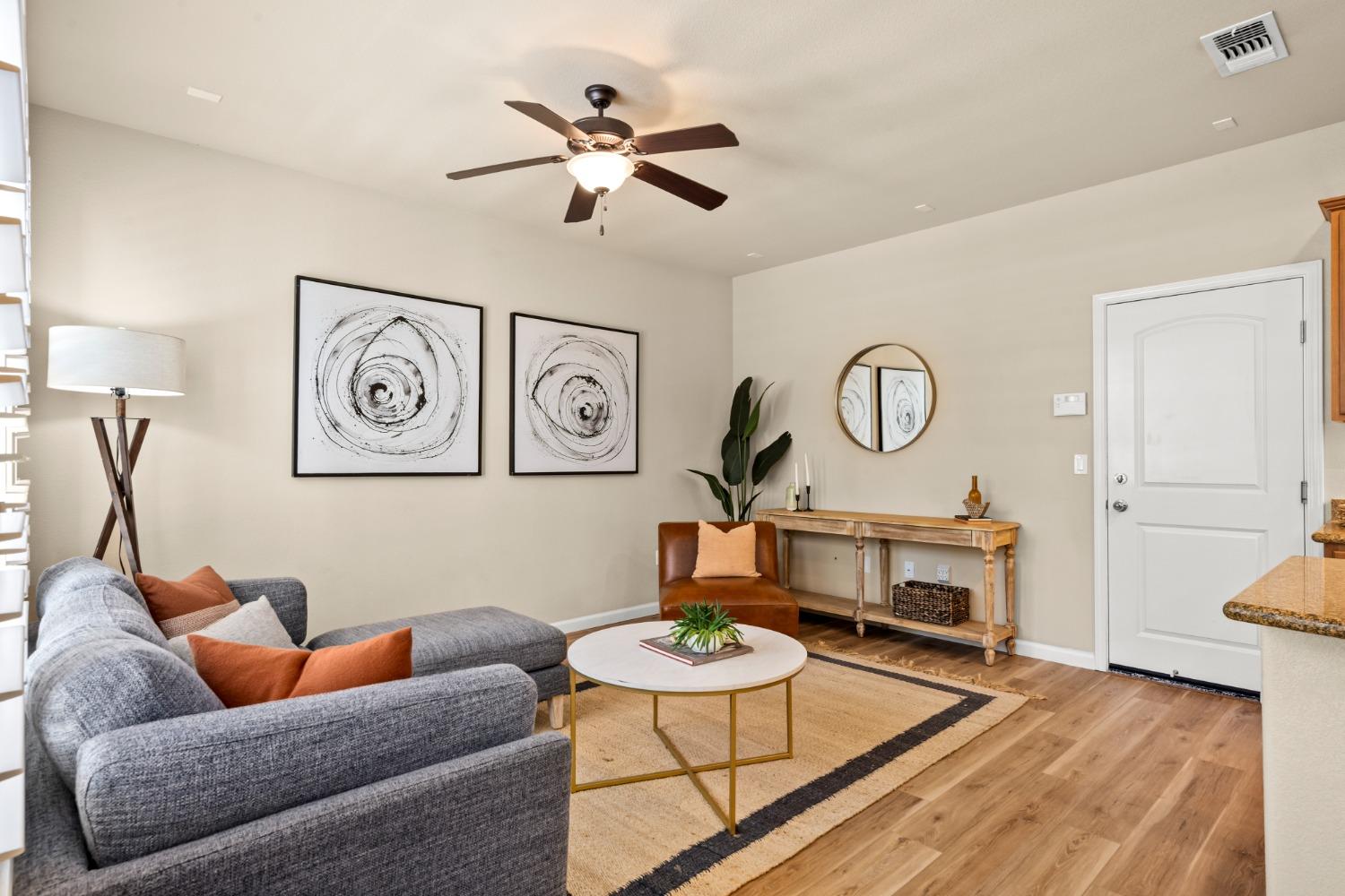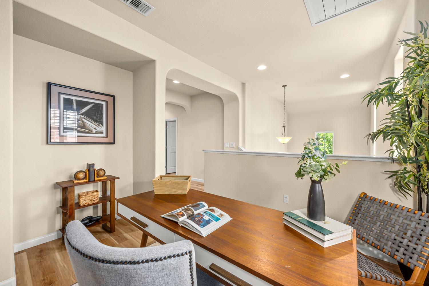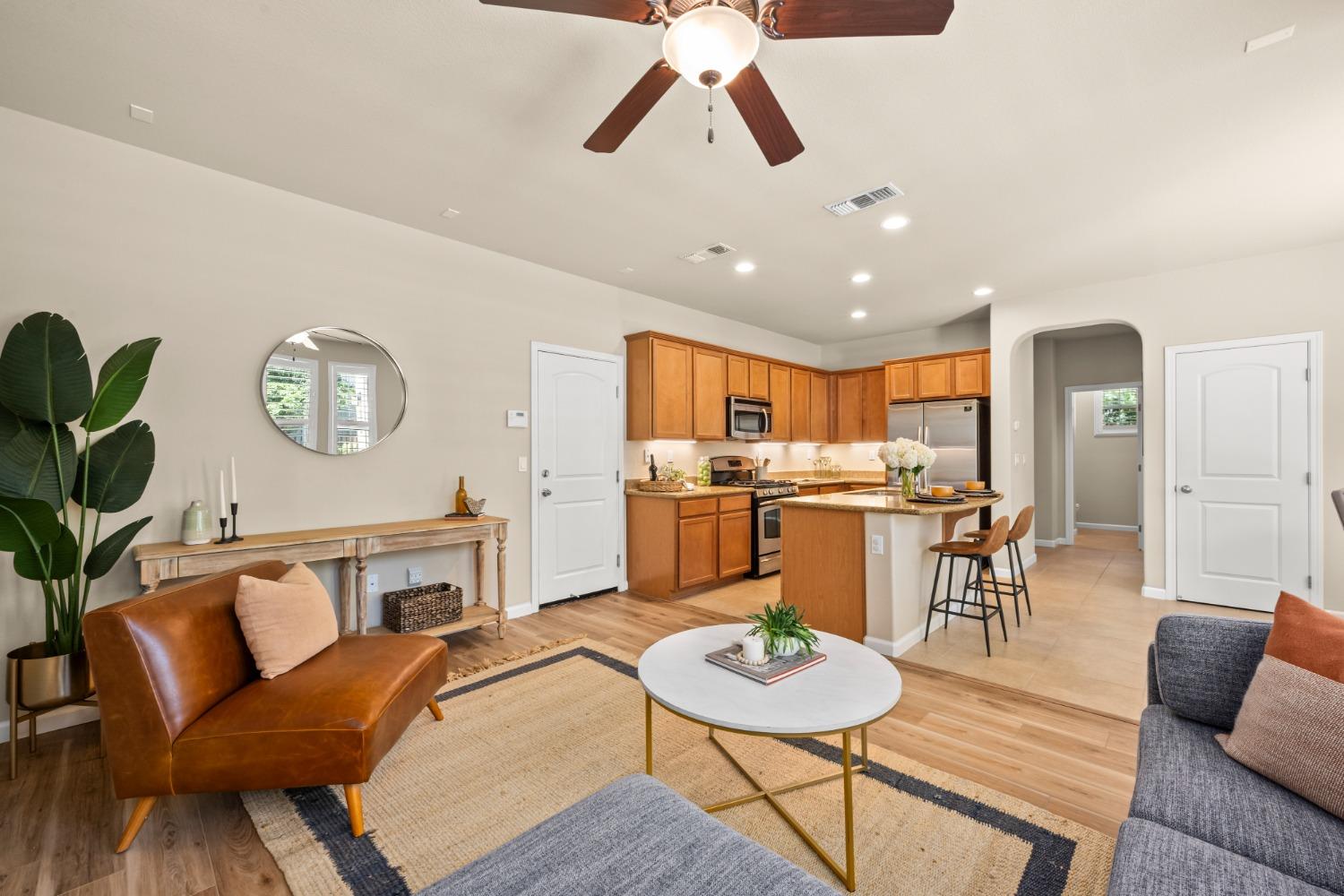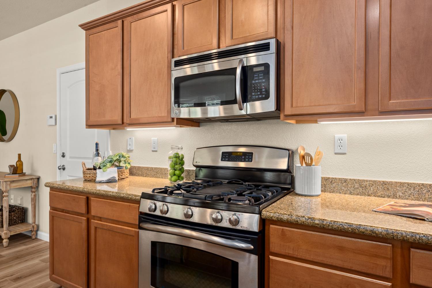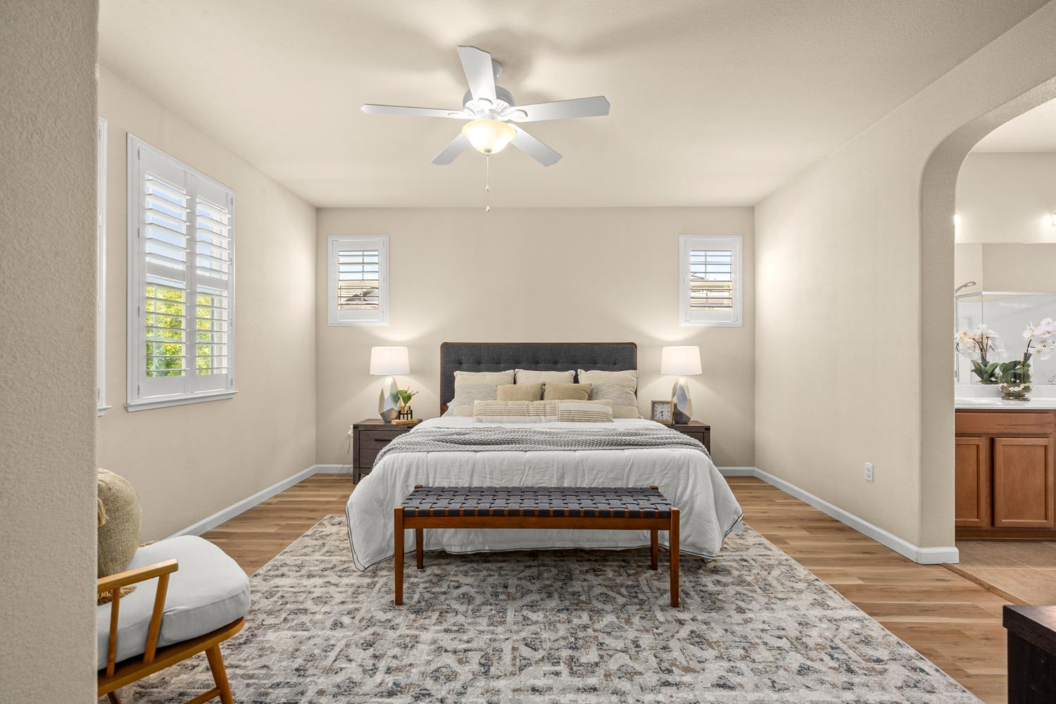 Nestled within the tree-lined streets of the gated community of Villemont, this home offers a tranquil and secure environment, complemented by community amenities including a pool, spa, gym, clubhouse, and park. Upon entering, you'll be greeted by high ceilings that add a sense of spaciousness and sophistication to the home. The layout provides flexible spaces, allowing for seamless adaptation to various lifestyle needs. Its thoughtfully designed floor plan, with primary suites on each floor, creates an opportunity for multi-generational living, catering to diverse family dynamics. The kitchen is a chef's delight with granite countertops, stainless steel appliances, and a layout that opens to both the living area and an inviting eat-in kitchen. The island features bar seating, perfect for casual meals or entertaining guests. Upstairs you will find a generously sized primary suite, 2 additional bedrooms, a laundry room and a loft that presents an ideal setting for an office, home gym, or second living area. With ample storage spaces and large closets, this home ensures organizational ease. Step outside to discover a backyard oasis that doesn't share any fences, and opens to an expansive area of mature landscaping that provides a serene buffer between you and the neighbors.