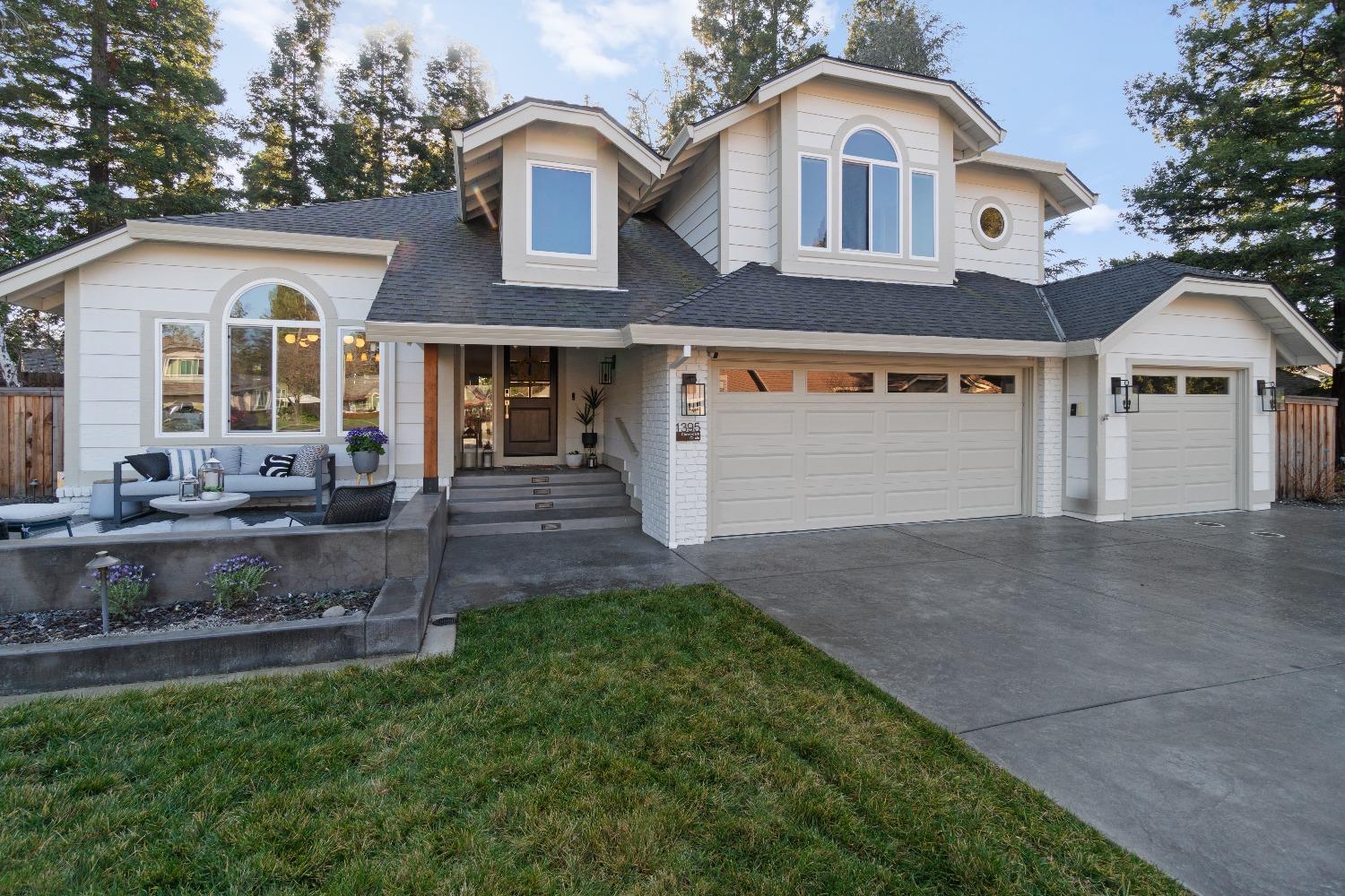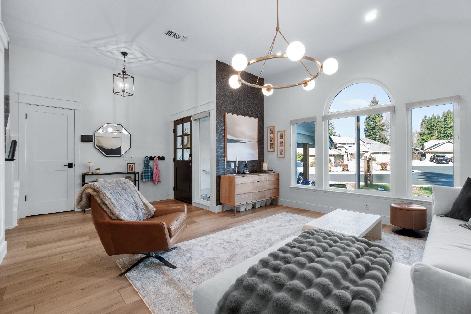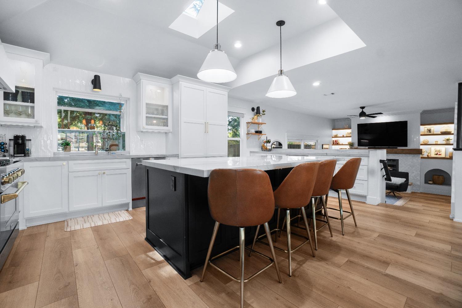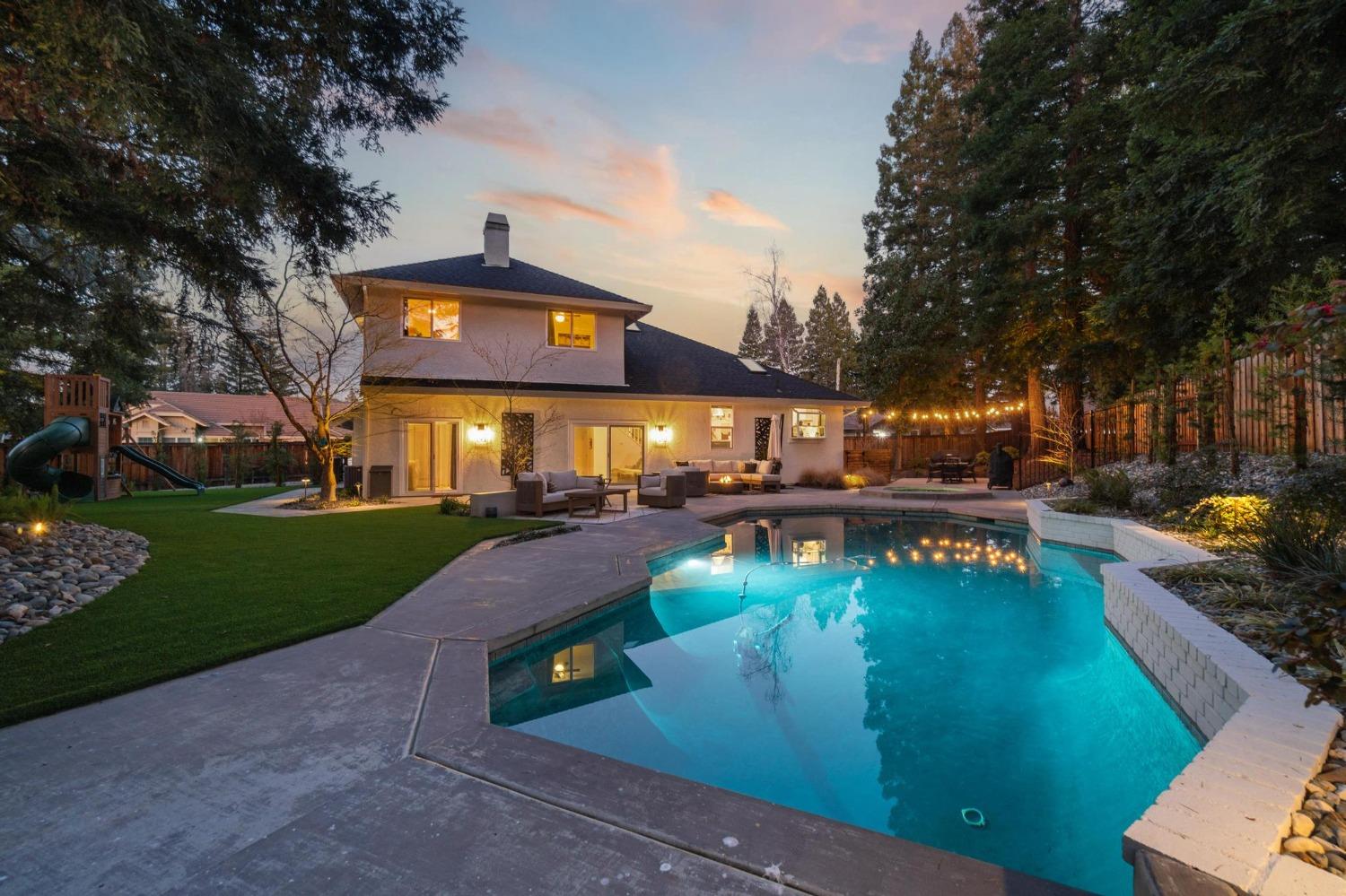 Perfectly positioned on a circular drive on a 1/3 acre lot in the sought after Huntington Oaks neighborhood. Nearly every part of this one-of-a-kind home has been thoughtfully and meticulously updated and remodeled, both inside and out. Elegant sight lines at every turn make it feel like you're living in a vacation home. The show stopper kitchen is completely custom with 10' ceilings and skylight, maple cabinetry and custom-designed pantry, 6-burner gas cooktop, 8' island, quartzite slab counters, designer inspired tile backsplash, bev fridge and more. Drenched in natural light thanks to the many skylights, panel glass doors and an abundance of windows. Upstairs primary suite offers a true retreat with an oversized shower with dual shower heads, furniture piece vanity with dual sinks plus makeup vanity and generously sized walk-in closet. 2 more ample sized bedrooms and a hall bath round out the upstairs. Downstairs provides a remote 4th bedroom and 3rd full bath making it the perfect guest suite or office space. The backyard is an experience. Tahoe-like trees create the backdrop for a professionally designed yard with pool, spa, large turf area, lighting and multiple seating areas. 3 car garage. No HOA or Mello Roos! Properties of this caliber are a rare offering. Make it yours!