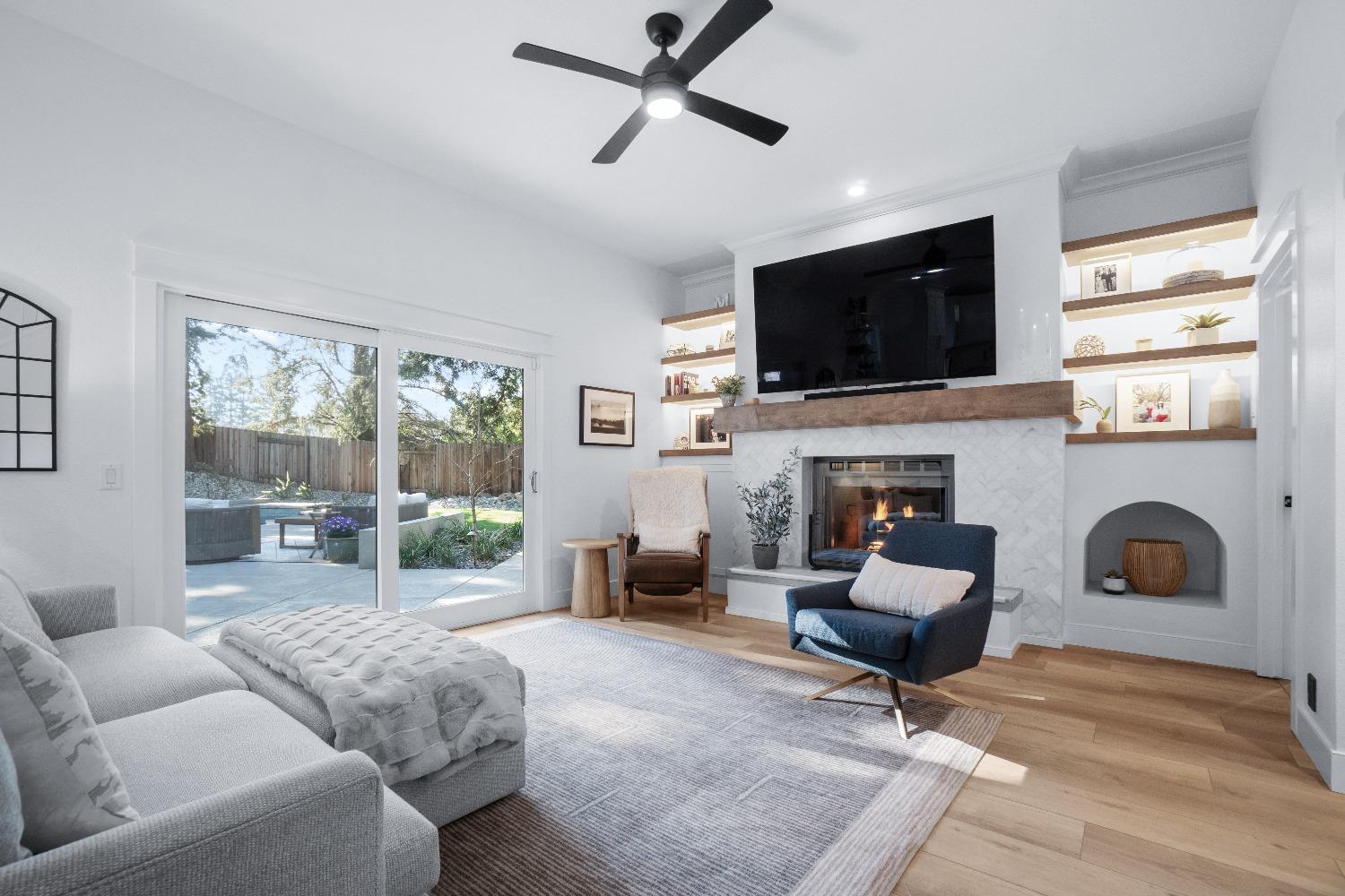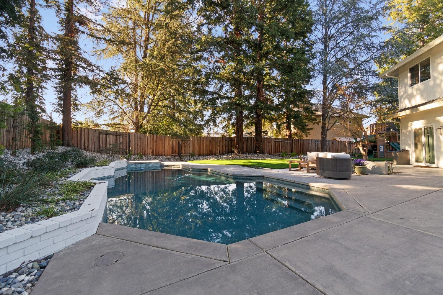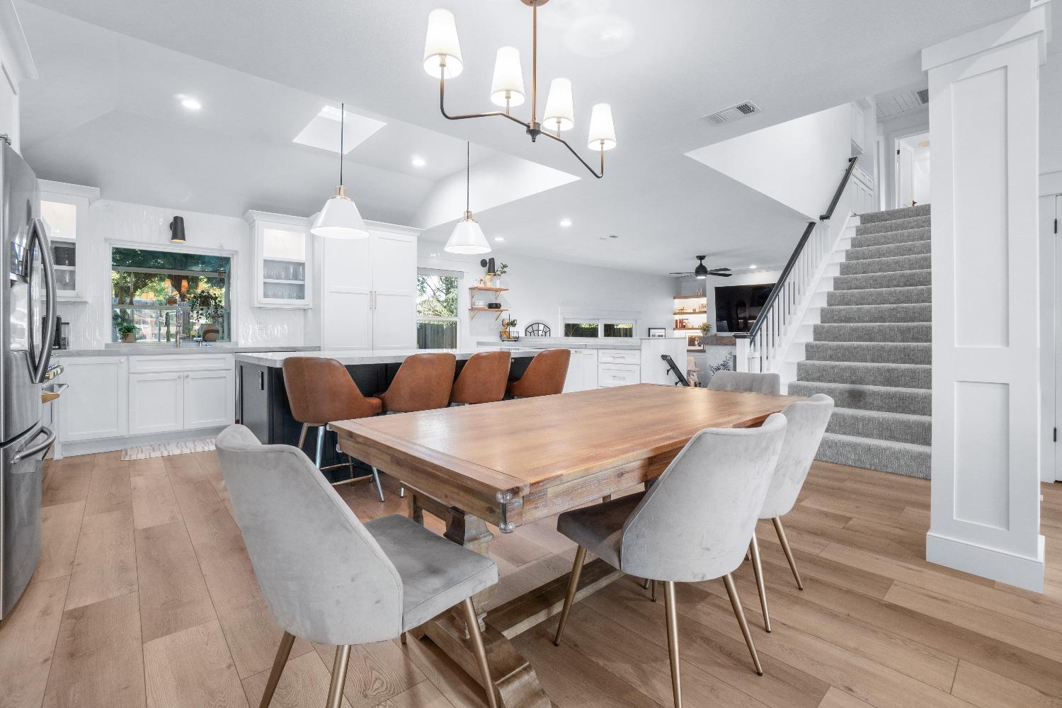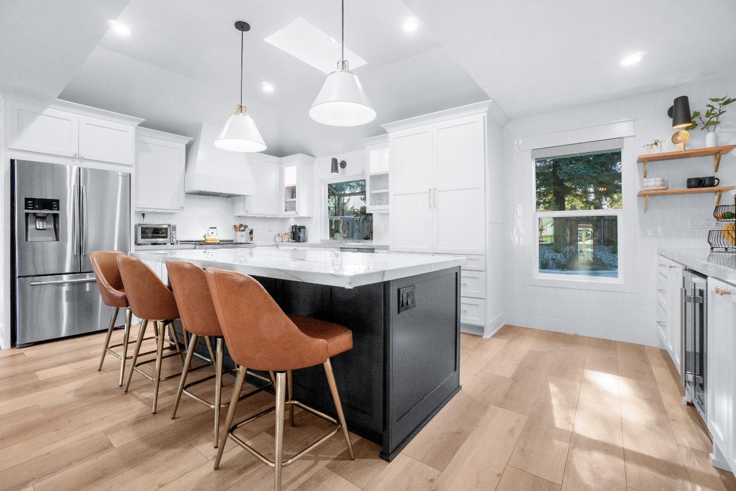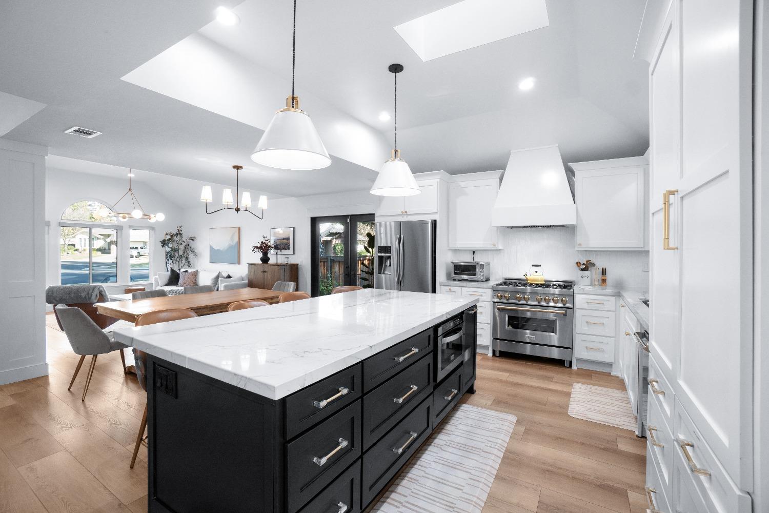 Perfectly positioned on a circular drive on a 1/3 acre lot in the sought after Huntington Oaks neighborhood. Nearly every part of this one-of-a-kind home has been thoughtfully and meticulously updated and remodeled, both inside and out. Elegant sight lines at every turn make it feel like you're living in a vacation home. The show stopper kitchen is completely custom with 10' ceilings and skylight, maple cabinetry and custom-designed pantry, 6-burner gas cooktop, 8' island, quartzite slab counters, designer inspired tile backsplash, bev fridge and more. Drenched in natural light thanks to the many skylights, panel glass doors and an abundance of windows. Upstairs primary suite offers a true retreat with an oversized shower with dual shower heads, furniture piece vanity with dual sinks plus makeup vanity and generously sized walk-in closet. 2 more ample sized bedrooms and a hall bath round out the upstairs. Downstairs provides a remote 4th bedroom and 3rd full bath making it the perfect guest suite or office space. The backyard is an experience. Tahoe-like trees create the backdrop for a professionally designed yard with pool, spa, large turf area, lighting and multiple seating areas. 3 car garage. No HOA or Mello Roos! Properties of this caliber are a rare offering. Make it yours!