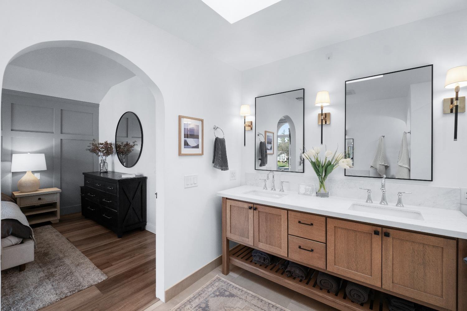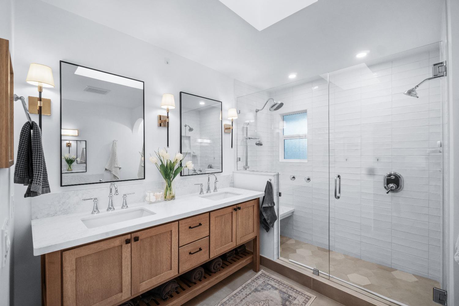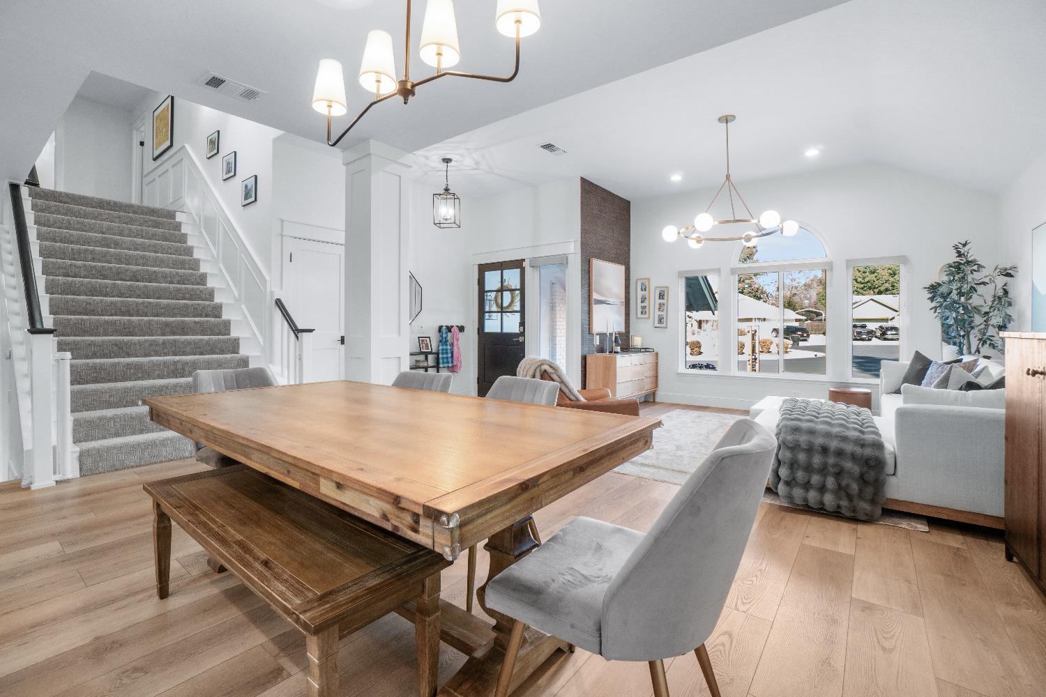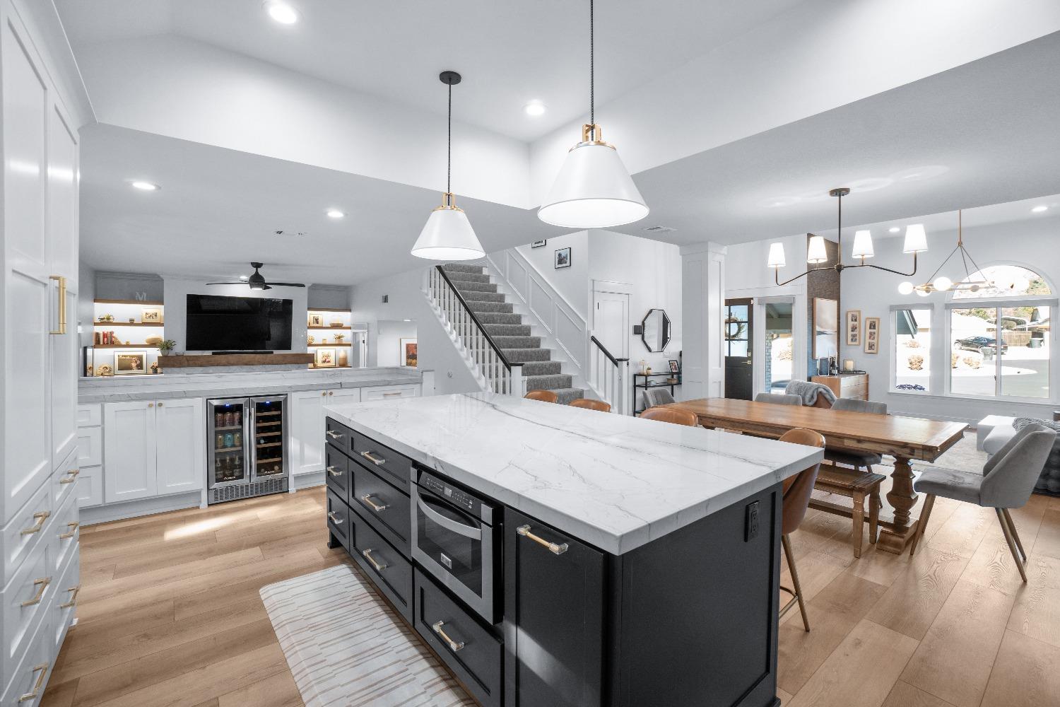 Perfectly positioned on a circular drive on a 1/3 acre lot in the sought after Huntington Oaks neighborhood. Nearly every part of this one-of-a-kind home has been thoughtfully and meticulously updated and remodeled, both inside and out. Elegant sight lines at every turn make it feel like you're living in a vacation home. The show stopper kitchen is completely custom with 10' ceilings and skylight, maple cabinetry and custom-designed pantry, 6-burner gas cooktop, 8' island, quartzite slab counters, designer inspired tile backsplash, bev fridge and more. Drenched in natural light thanks to the many skylights, panel glass doors and an abundance of windows. Upstairs primary suite offers a true retreat with an oversized shower with dual shower heads, furniture piece vanity with dual sinks plus makeup vanity and generously sized walk-in closet. 2 more ample sized bedrooms and a hall bath round out the upstairs. Downstairs provides a remote 4th bedroom and 3rd full bath making it the perfect guest suite or office space. The backyard is an experience. Tahoe-like trees create the backdrop for a professionally designed yard with pool, spa, large turf area, lighting and multiple seating areas. 3 car garage. No HOA or Mello Roos! Properties of this caliber are a rare offering. Make it yours!