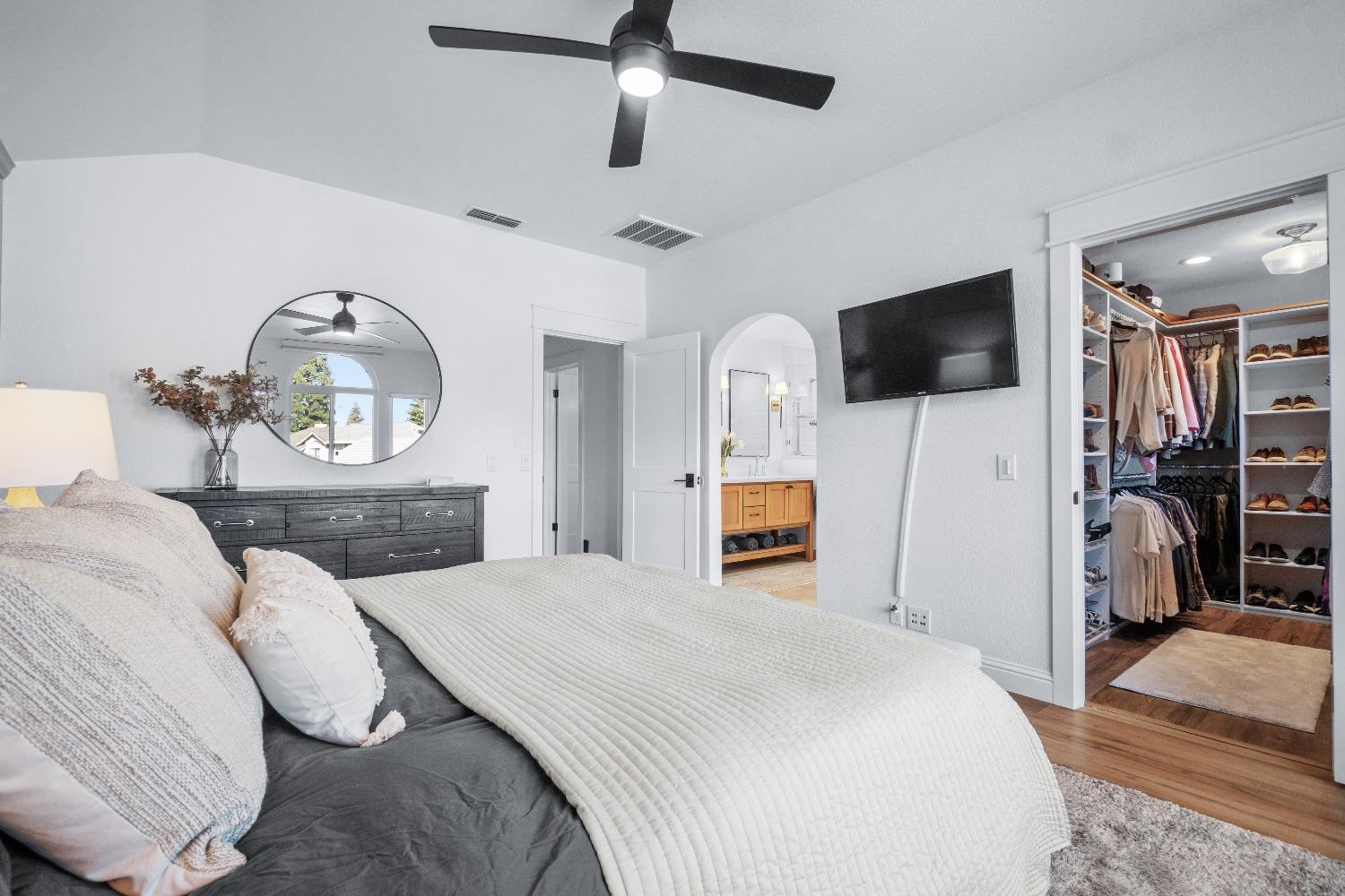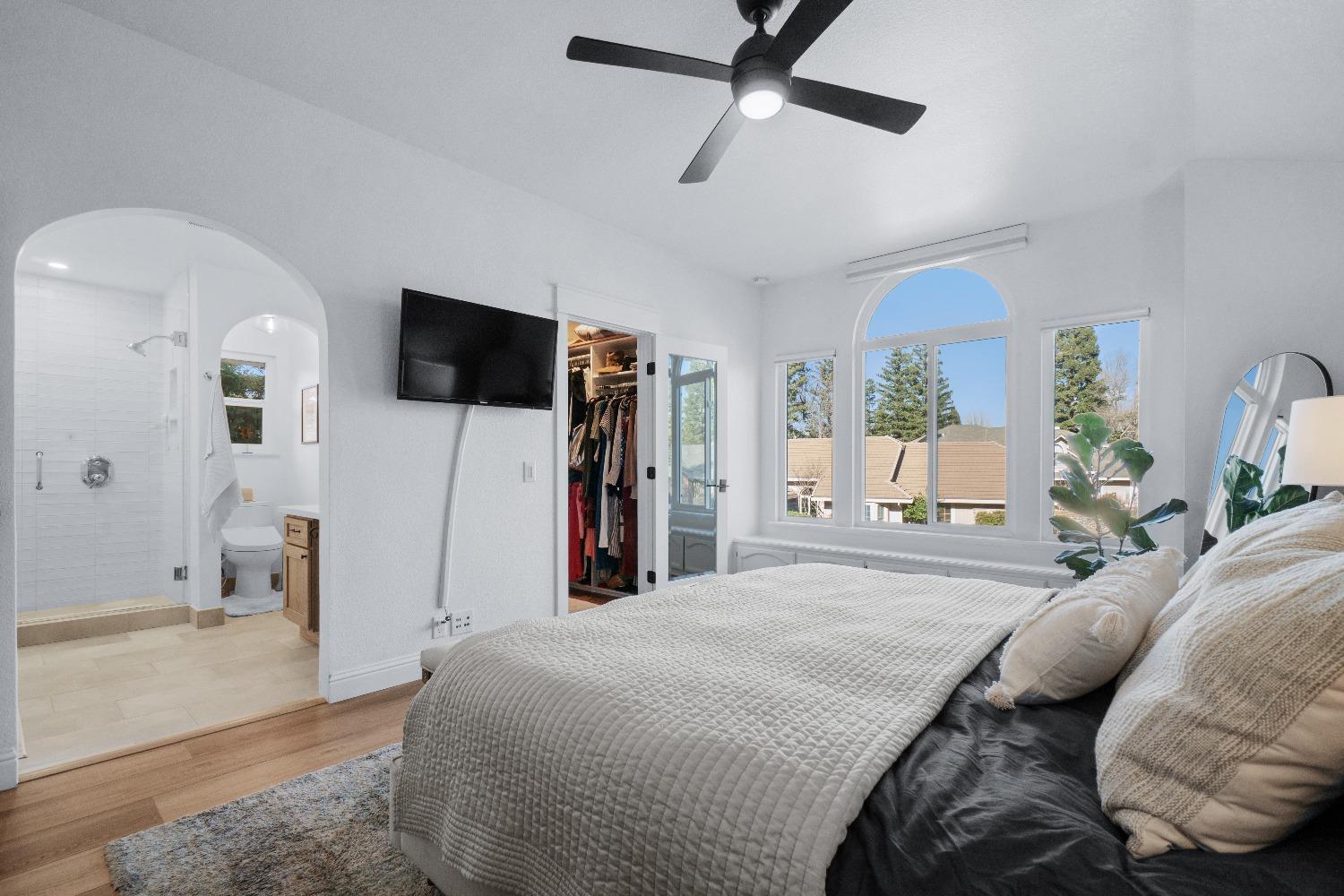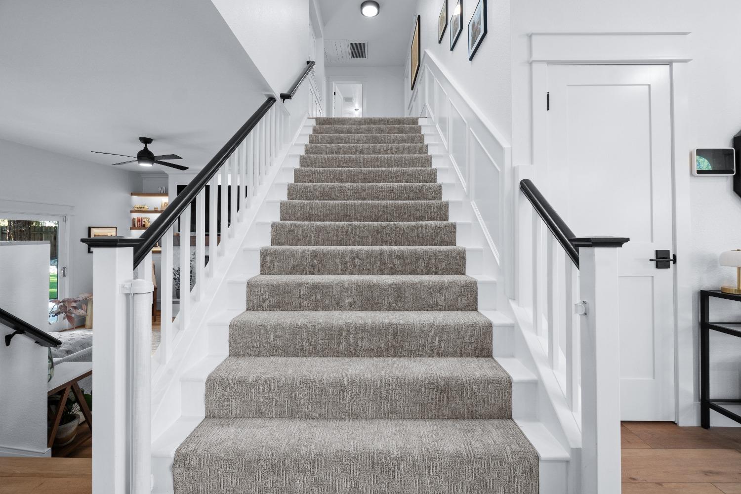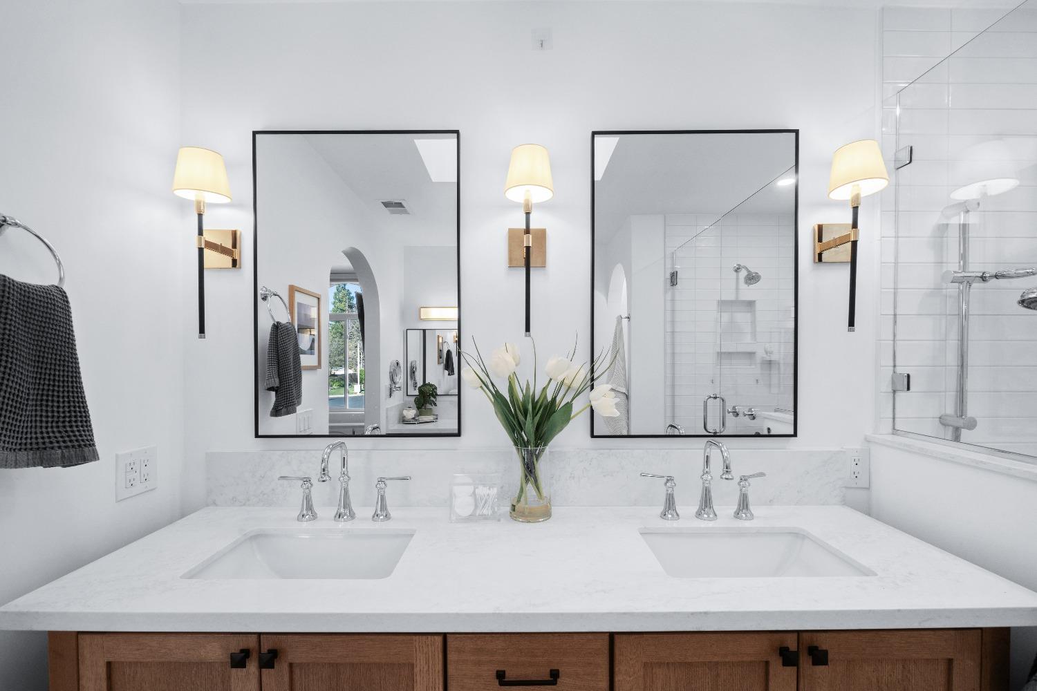 Perfectly positioned on a circular drive on a 1/3 acre lot in the sought after Huntington Oaks neighborhood. Nearly every part of this one-of-a-kind home has been thoughtfully and meticulously updated and remodeled, both inside and out. Elegant sight lines at every turn make it feel like you're living in a vacation home. The show stopper kitchen is completely custom with 10' ceilings and skylight, maple cabinetry and custom-designed pantry, 6-burner gas cooktop, 8' island, quartzite slab counters, designer inspired tile backsplash, bev fridge and more. Drenched in natural light thanks to the many skylights, panel glass doors and an abundance of windows. Upstairs primary suite offers a true retreat with an oversized shower with dual shower heads, furniture piece vanity with dual sinks plus makeup vanity and generously sized walk-in closet. 2 more ample sized bedrooms and a hall bath round out the upstairs. Downstairs provides a remote 4th bedroom and 3rd full bath making it the perfect guest suite or office space. The backyard is an experience. Tahoe-like trees create the backdrop for a professionally designed yard with pool, spa, large turf area, lighting and multiple seating areas. 3 car garage. No HOA or Mello Roos! Properties of this caliber are a rare offering. Make it yours!