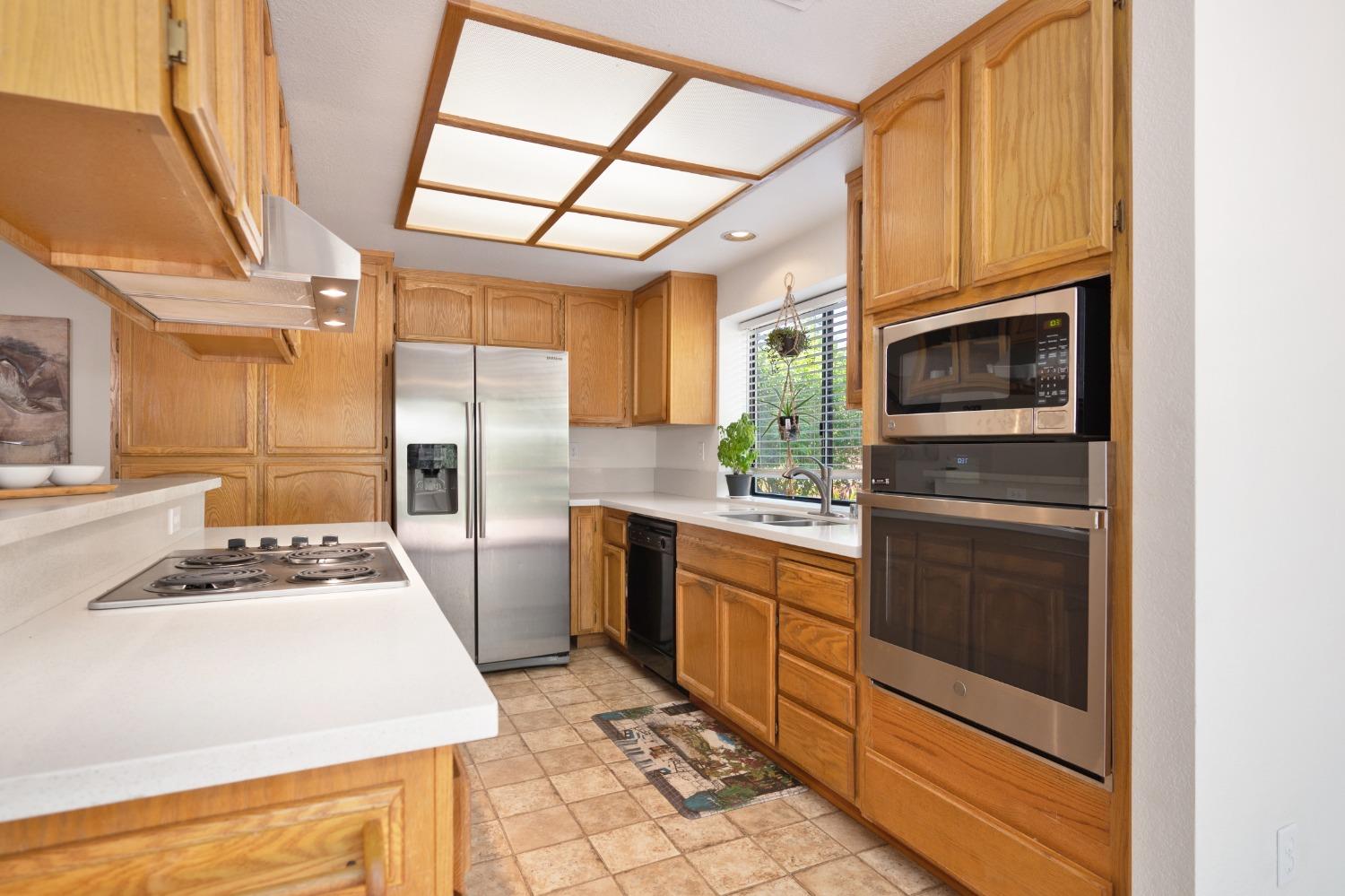 PRICE IMPROVEMENT! Welcome to this move-in ready East Roseville 3-bedroom, 2-bathroom home offering 1899 square feet of comfortable living space in a very desirable neighborhood. Step inside and be greeted by a bright and spacious living and dining area with vaulted ceilings and access to a covered patio. The kitchen features quartz counters, brand new stainless steel oven and microwave to match the refrigerator and a great pantry with pull out shelves. The primary bedroom is a true retreat with ample space, walk-in closet, en-suite bathroom and backyard access. Two additional bedrooms offer plenty of room for kids, guests or a home office. Inside laundry with overhead cabinets and washer/dryer included. Outside, enjoy your private outdoor space with a large deck perfect for relaxing or entertaining. The backyard shed has power and is ideal for that extra space you may be looking for. Don't miss this opportunity to make 1402 McBride Drive your new home. It's a true gem with all the amenities you need for comfortable and convenient living. Walking distance to Maidu Regional Park and George Sargeant Elementary School. No Mello Roos or HOA. Schedule a showing today!
