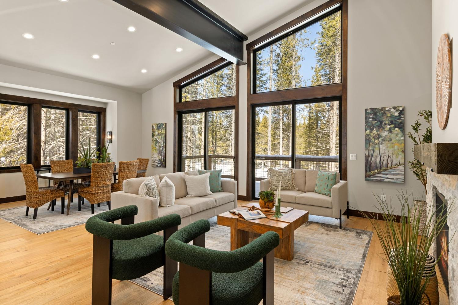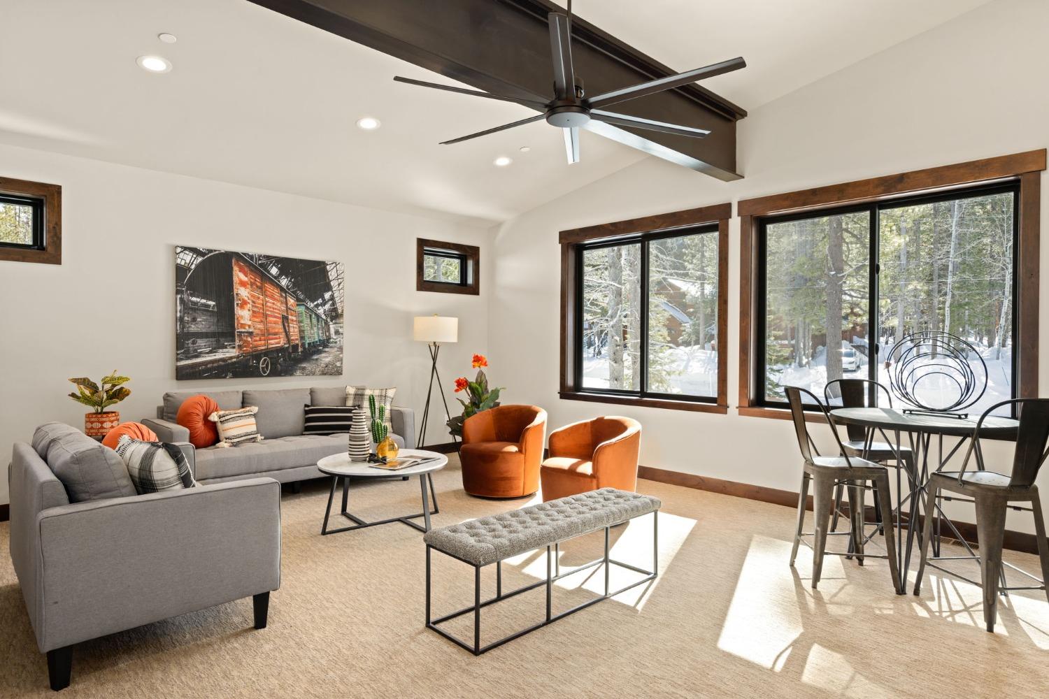 Experience mountain living at its finest in this brand-new, 3,241 sq ft luxury cabin nestled in the heart of Tahoe Donner. This stunning custom home boasts 4 spacious bedrooms and 4 bathrooms, including two primary suites with cozy fireplaces, perfect for relaxing after a day of outdoor adventures. Step inside to discover an open-concept kitchen, living, and dining areaideal for entertainingwith expansive windows that fill the space with natural light. The game room provides extra space for family fun and gatherings. Enjoy breathtaking golf course views from both the upstairs and downstairs decks, creating seamless indoor-outdoor living. Situated directly on the 15th hole, this property is perfect for golf enthusiasts and nature lovers alike. Located within the Tahoe Donner HOA, residents have access to exceptional amenities, including pools, fitness centers, trails, and more. Whether you're seeking a year-round retreat or a luxurious mountain getaway, this home delivers unmatched comfort and style.