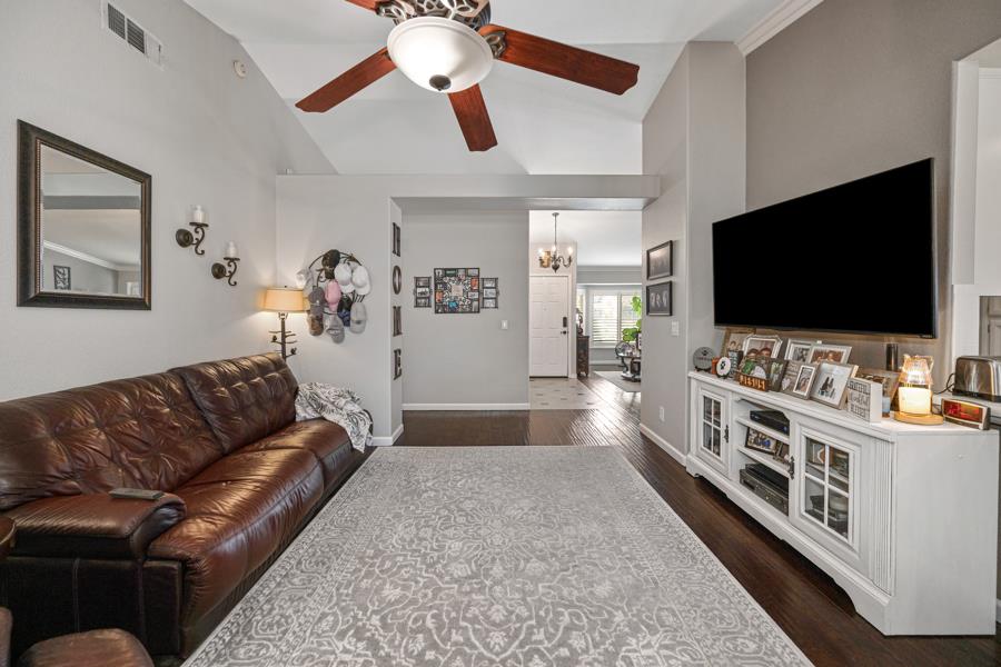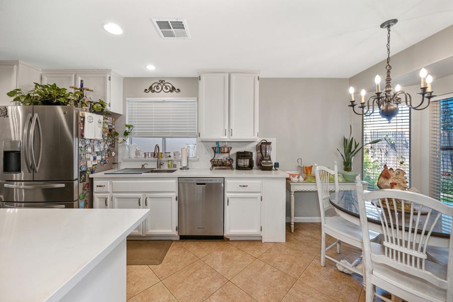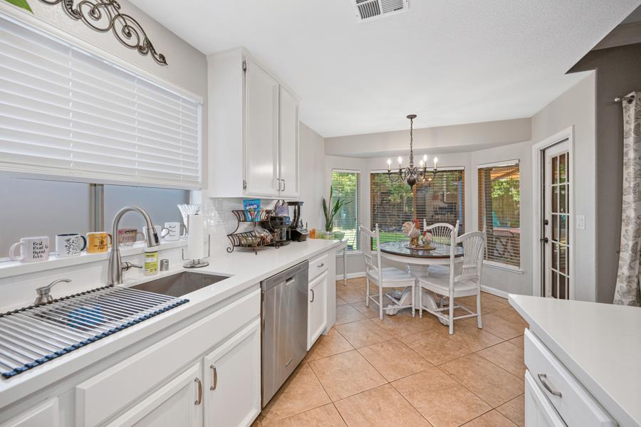 Welcome to this beautifully maintained 4-bedroom, 2-bath home offering approximately 1,787 sq. ft. of comfortable living space in the highly sought-after Dry Creek School District. Designed for both everyday living and entertaining, this home features a versatile floor plan with separate living and family rooms, providing flexibility for gatherings, relaxation, or quiet retreat. The updated kitchen serves as the heart of the home, showcasing quartz countertops, abundant cabinetry, and a cozy breakfast nookperfect for casual dining or morning coffee. Engineered wood flooring flows throughout, adding warmth and character, while neutral interior paint creates a bright, inviting atmosphere. A formal dining area offers the ideal setting for holiday meals and special occasions, while the spacious family room provides a comfortable place to unwind. The separate living room adds additional versatility for entertaining or a private sitting area. All four bedrooms are well-sized, offering comfortable accommodations for family, guests, or a home office. The functional layout balances privacy and convenience, making it ideal for a variety of lifestyles. Additional highlights include a 3-car garage with an exterior sink and ample built-in cabinetry, plus a beautifully landscaped backyard featuring a pergola and two mature fruit trees (peach and pear). Located in a desirable Roseville neighborhood with easy access to parks, shopping, dining, and commuter routes, this move-in ready home combines comfort, style, and an exceptional location.