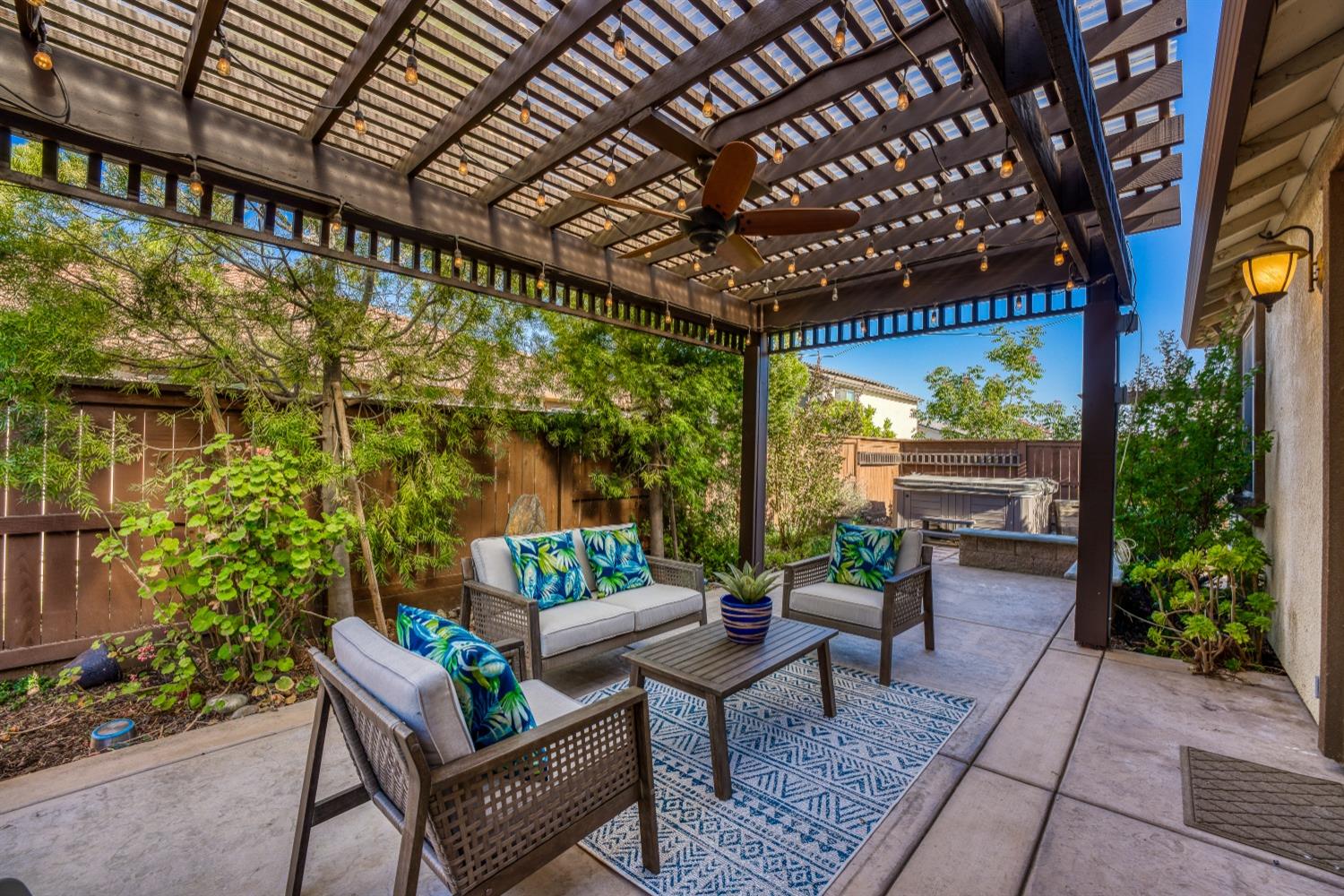 You won't find anything else like this on the market! This stunning single level home offers owned solar and pre-paid Mello Roos taxes! Walk in to find an open and flowing floor plan with a great-room style kitchen, dining, and living room combination. The kitchen provides an abundance of cabinet space and a large island with seating area, plus a 5-burner gas cooktop, double ovens, SS appliances, granite counters and a custom tile backsplash! The spacious floor plan offers flexibility with a remote den or 4th bedroom and half bath at the front of the home, plus a jack-and-jill style bath for the two spacious secondary bedrooms. Relax in the luxury of your private primary suite at the back of the home. A generously sized bedroom leads to the light and bright primary bath with a welcoming soaking tub, stall shower with glass surround, and oversized walk-in closet. Find solace or host lively gatherings in the intimate setting of your lush backyard, complete with fruit trees, a pergola, hot tub, and platform ready for your pizza oven. Enjoy an incredible location near walking and bike trails, parks, and the newly completed Sports Park Overcrossing. Combine all of this with farmland views out the front, a short commute to Davis, and a 3-car garage! Come make this one yours!