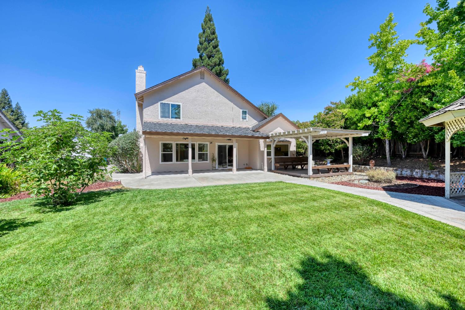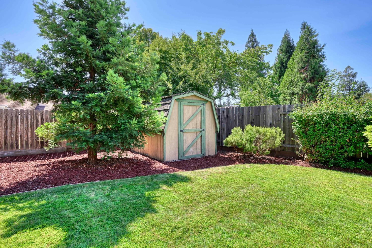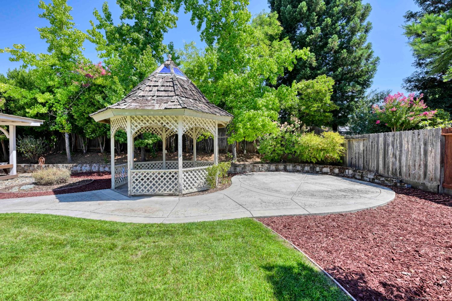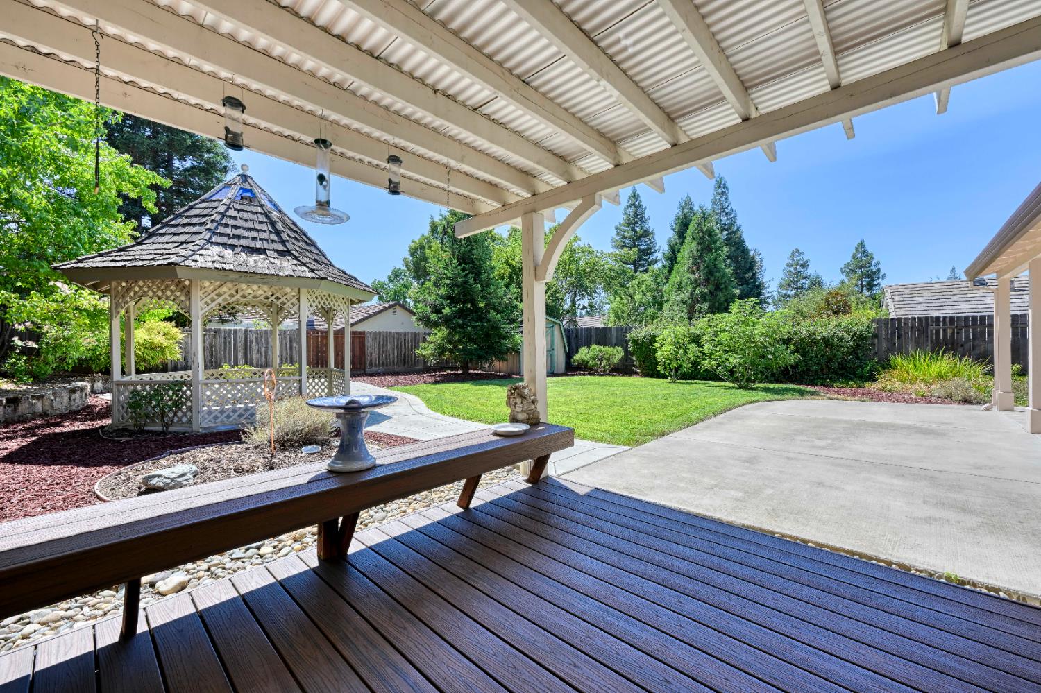 Welcome to Stonegate Village! NO HOA! No Mello-Roos! 2,138 sqft two-story charmer is perfectly located on a redwood tree-lined street The exterior has been freshly painted, Step inside to find a spacious main level with cathedral ceilings, hickory wood flooring, slate and porcelain tile, a cozy family room with fireplace, and windows that fill the home with natural light. Full bedroom & updated bathroom downstairs make a great spot for guests, extended family, or a home office. Kitchen has been gently refreshed, giving buyers the chance to add their own design. Upstairs primary suite has a walk-in closet, updated bath, custom tilework, marble countertop, beautiful custom built modern wood cabinetry, while two additional bedrooms & a full hall bath provide plenty of room for everyone. Outside, the large yard has numerous fruit trees, a covered patio, gazebo, storage shed, and a grassy play area. Bonus: furniture, refrigerator, washer/dryer optional/negotiable with the home! A three-car garage, side access adds even more space for vehicles or hobbies. You can walk to nearby parks, summer concerts, CSD swimming lessons, farmers market,community trails plus all three local schools are ​walking distance. Come see why Stonegate Village is such a sought after neighborhood!