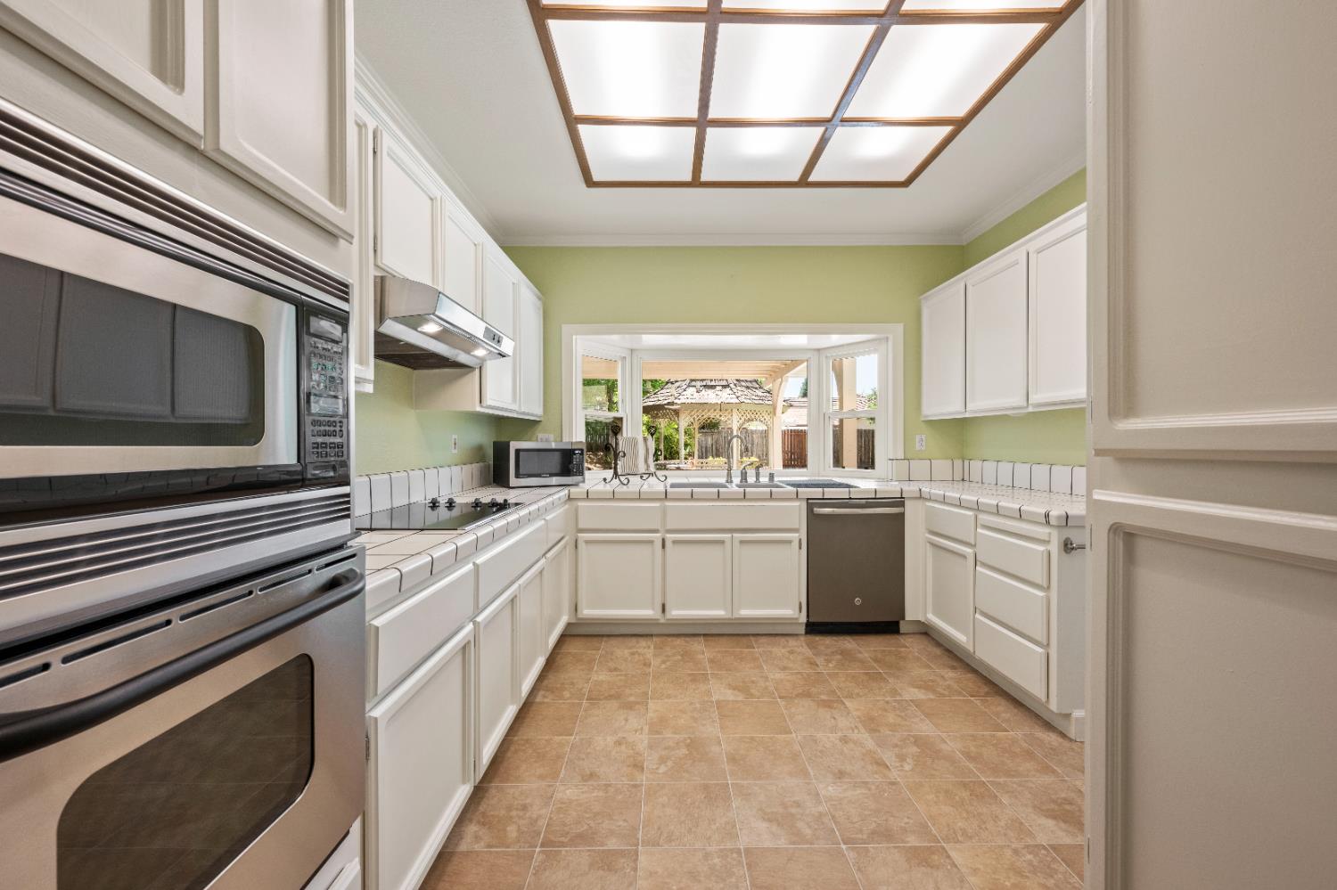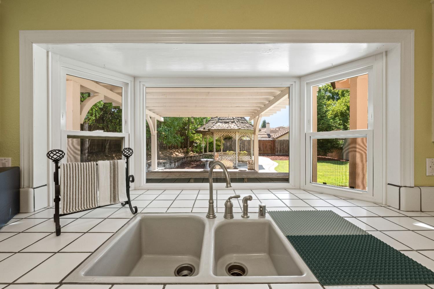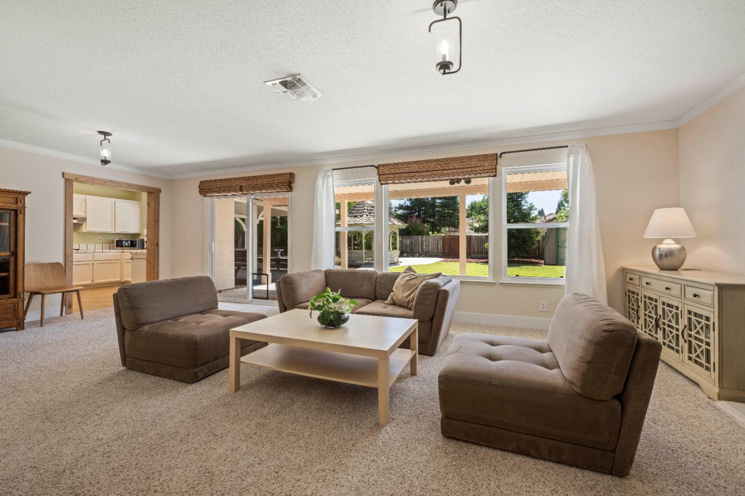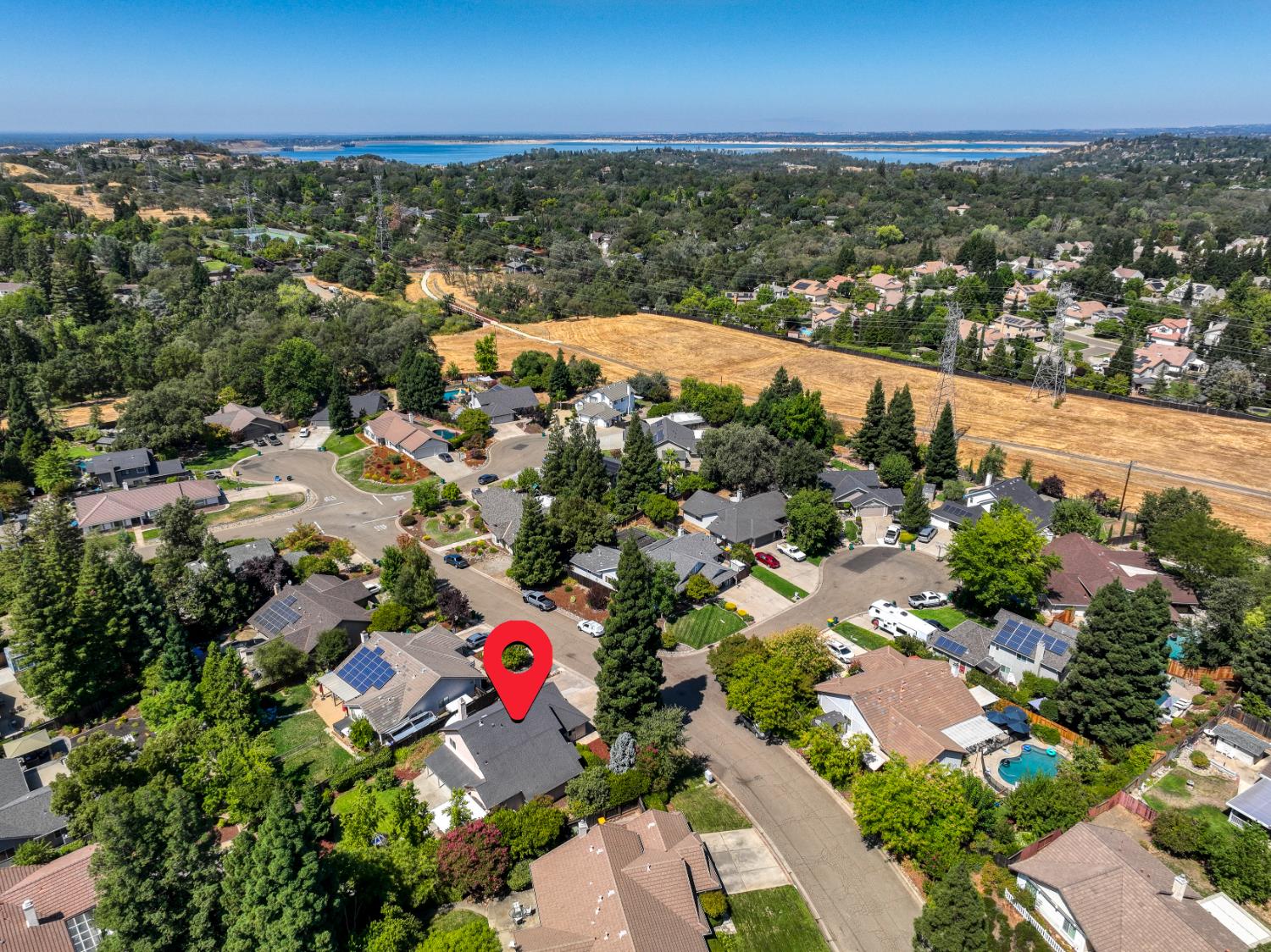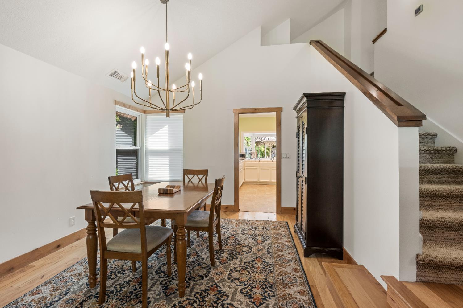 Welcome to Stonegate Village! NO HOA! No Mello-Roos! 2,138 sqft two-story charmer is perfectly located on a redwood tree-lined street The exterior has been freshly painted, Step inside to find a spacious main level with cathedral ceilings, hickory wood flooring, slate and porcelain tile, a cozy family room with fireplace, and windows that fill the home with natural light. Full bedroom & updated bathroom downstairs make a great spot for guests, extended family, or a home office. Kitchen has been gently refreshed, giving buyers the chance to add their own design. Upstairs primary suite has a walk-in closet, updated bath, custom tilework, marble countertop, beautiful custom built modern wood cabinetry, while two additional bedrooms & a full hall bath provide plenty of room for everyone. Outside, the large yard has numerous fruit trees, a covered patio, gazebo, storage shed, and a grassy play area. Bonus: furniture, refrigerator, washer/dryer optional/negotiable with the home! A three-car garage, side access adds even more space for vehicles or hobbies. You can walk to nearby parks, summer concerts, CSD swimming lessons, farmers market,community trails plus all three local schools are ​walking distance. Come see why Stonegate Village is such a sought after neighborhood!