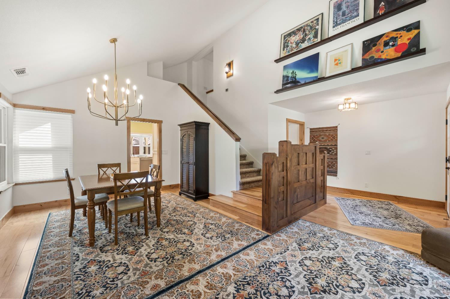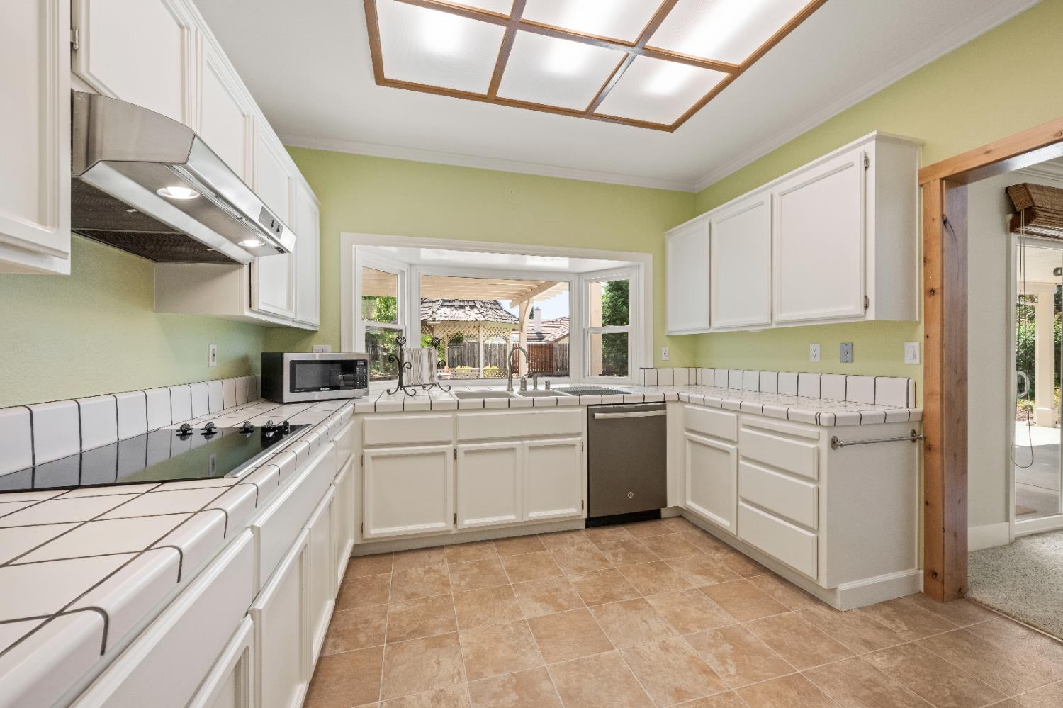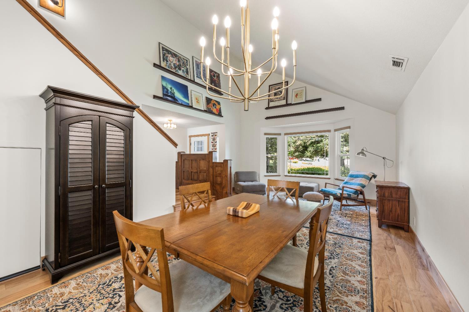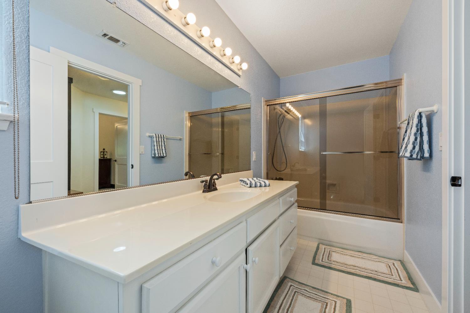 Welcome to Stonegate Village! NO HOA! No Mello-Roos! 2,138 sqft two-story charmer is perfectly located on a redwood tree-lined street The exterior has been freshly painted, Step inside to find a spacious main level with cathedral ceilings, hickory wood flooring, slate and porcelain tile, a cozy family room with fireplace, and windows that fill the home with natural light. Full bedroom & updated bathroom downstairs make a great spot for guests, extended family, or a home office. Kitchen has been gently refreshed, giving buyers the chance to add their own design. Upstairs primary suite has a walk-in closet, updated bath, custom tilework, marble countertop, beautiful custom built modern wood cabinetry, while two additional bedrooms & a full hall bath provide plenty of room for everyone. Outside, the large yard has numerous fruit trees, a covered patio, gazebo, storage shed, and a grassy play area. Bonus: furniture, refrigerator, washer/dryer optional/negotiable with the home! A three-car garage, side access adds even more space for vehicles or hobbies. You can walk to nearby parks, summer concerts, CSD swimming lessons, farmers market,community trails plus all three local schools are ​walking distance. Come see why Stonegate Village is such a sought after neighborhood!
