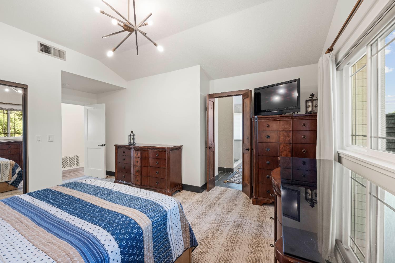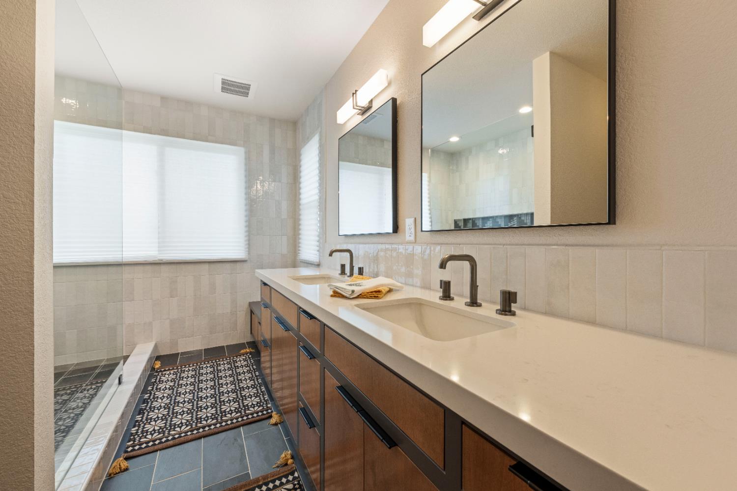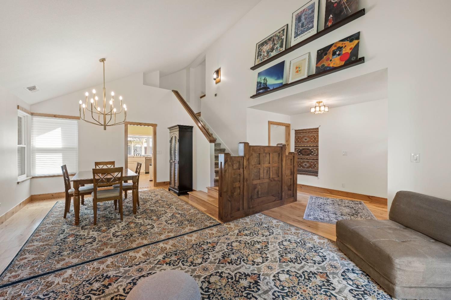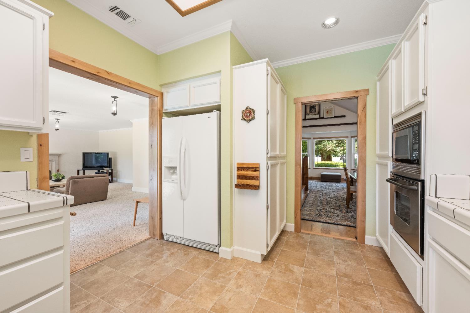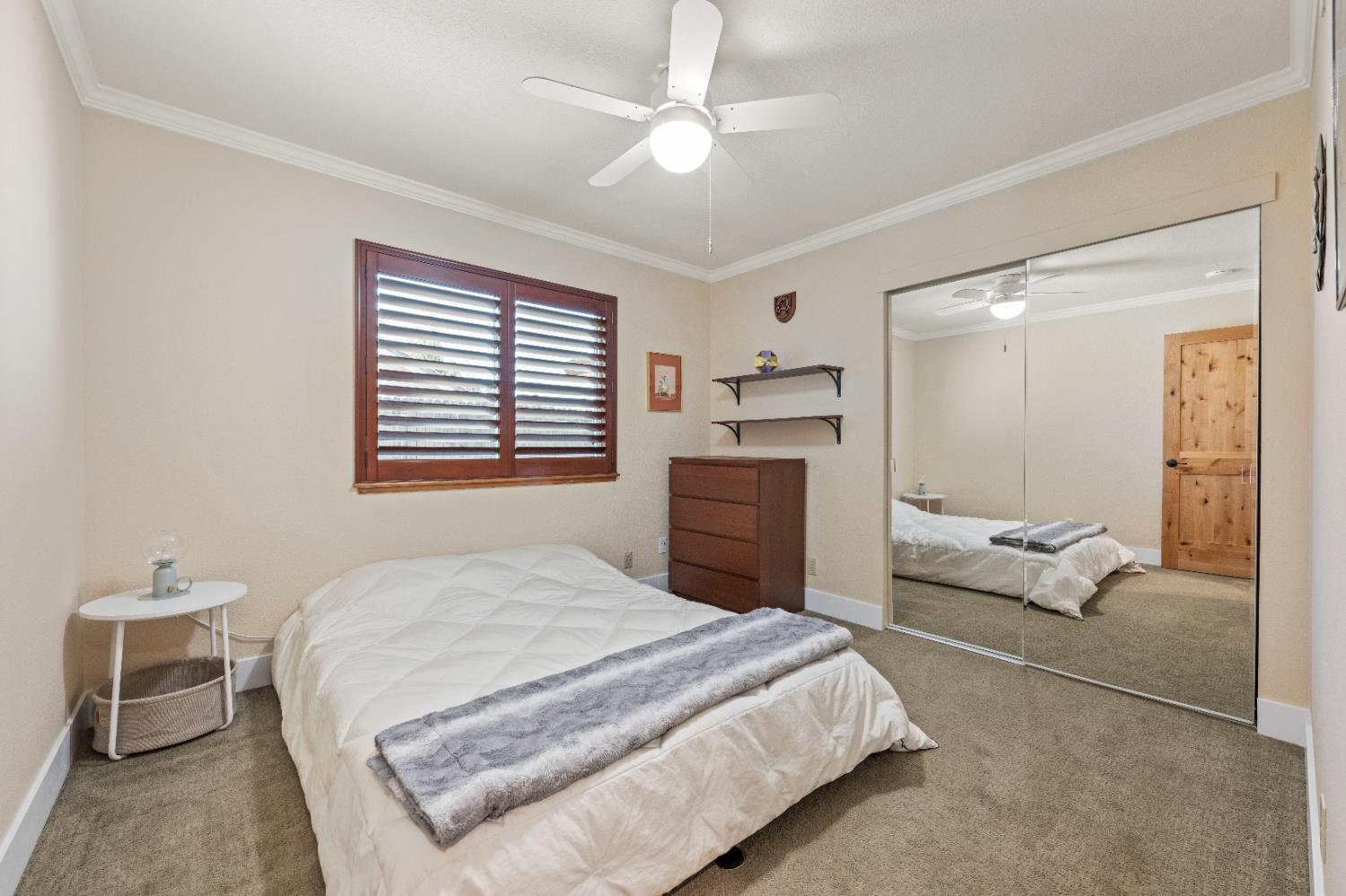 Welcome to Stonegate Village! NO HOA! No Mello-Roos! 2,138 sqft two-story charmer is perfectly located on a redwood tree-lined street The exterior has been freshly painted, Step inside to find a spacious main level with cathedral ceilings, hickory wood flooring, slate and porcelain tile, a cozy family room with fireplace, and windows that fill the home with natural light. Full bedroom & updated bathroom downstairs make a great spot for guests, extended family, or a home office. Kitchen has been gently refreshed, giving buyers the chance to add their own design. Upstairs primary suite has a walk-in closet, updated bath, custom tilework, marble countertop, beautiful custom built modern wood cabinetry, while two additional bedrooms & a full hall bath provide plenty of room for everyone. Outside, the large yard has numerous fruit trees, a covered patio, gazebo, storage shed, and a grassy play area. Bonus: furniture, refrigerator, washer/dryer optional/negotiable with the home! A three-car garage, side access adds even more space for vehicles or hobbies. You can walk to nearby parks, summer concerts, CSD swimming lessons, farmers market,community trails plus all three local schools are ​walking distance. Come see why Stonegate Village is such a sought after neighborhood!