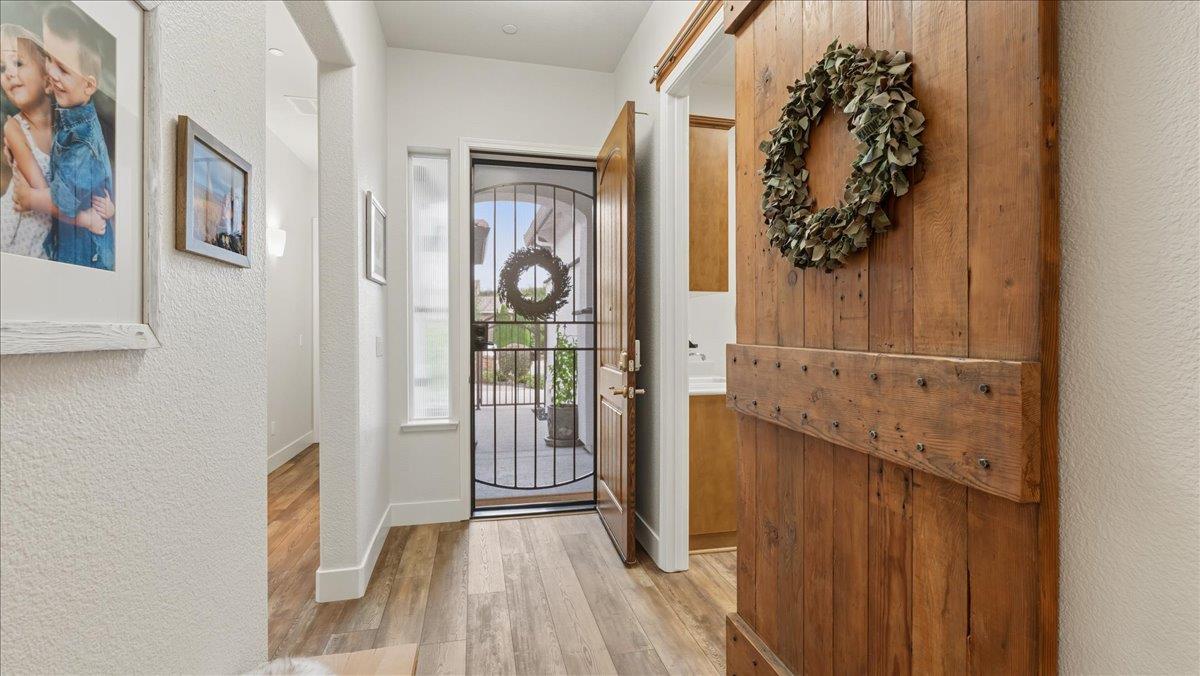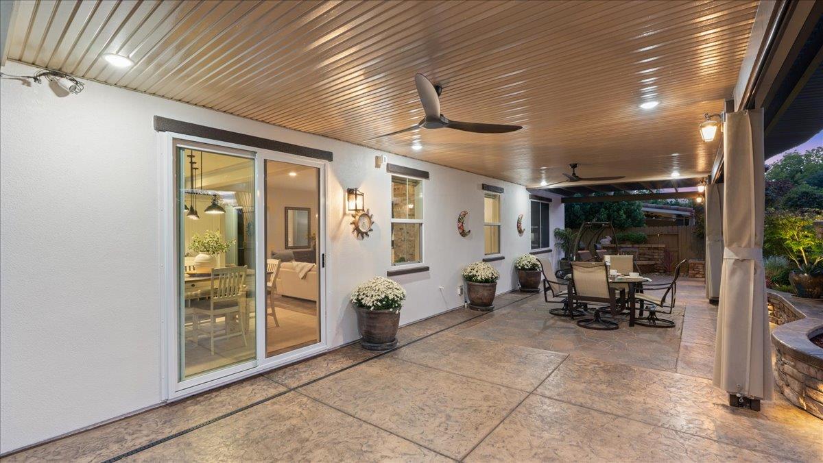 Designed for effortless living, this beautifully upgraded single-story Elliott Home offers the perfect blend of comfort, style, and low-maintenance convenience. With 3 bedrooms, 2 bathrooms, and a desirable 3-car garage, the layout is ideal for those looking to downsize without compromise. The remodeled, chef-inspired kitchen features a quartz island, ceiling-height cabinetry, GE Caf appliances, and thoughtful finishes that make everyday cooking and entertaining a pleasure. The living room centers around a stacked-stone gas fireplace, while luxury vinyl plank flooring and upgraded lighting create a warm, refined feel throughout. The primary suite includes a frameless walk-in shower, soaking tub and hot water on demand. Outdoors, enjoy a private greenbelt setting with walking trails, a covered patio, outdoor fireplace, built-in BBQ, and tranquil water featureperfect for relaxing without the upkeep. Energy-efficient upgrades, owned solar, and a finished garage with epoxy floors and storage complete the package. Appreciate the ease of single-story living, exceptional upgrades already done, and a peaceful greenbelt lifestyleso you can spend more time enjoying life and less time maintaining a home.