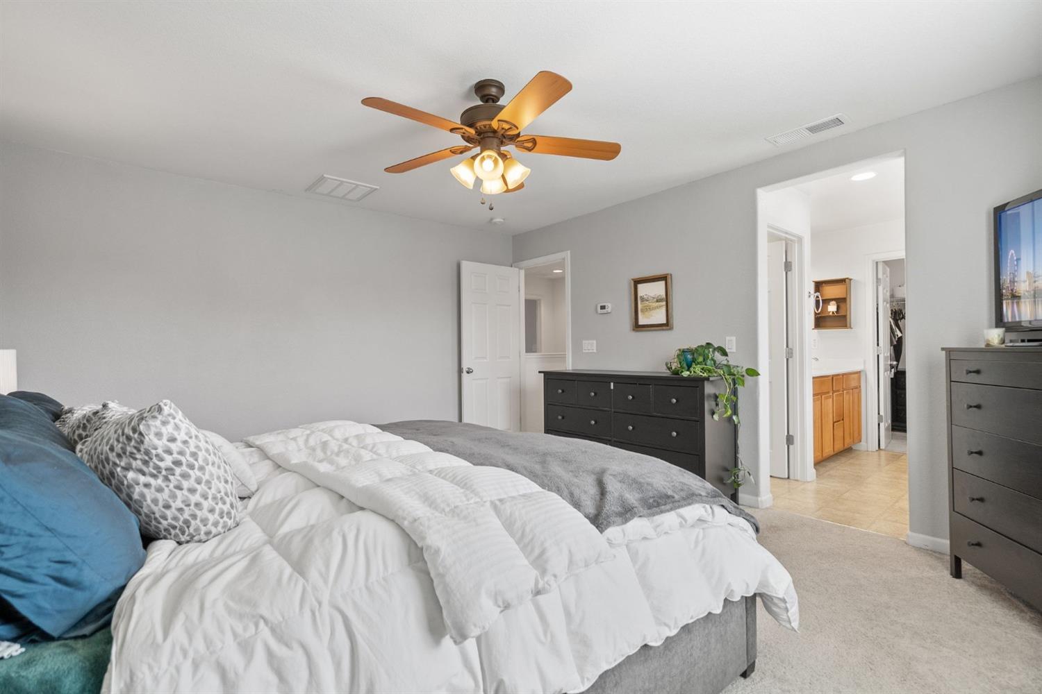 Discover the epitome of comfortable and convenient living in this charming 3 bedroom home nestled in a nature-forward Roseville community, with easy walking accessibility to both Pleasant Grove Creek Trail and Veterans Memorial Park. The home is strategically positioned facing East, ensuring a delightful sunrise and sunset experience each and every day. With all three bedrooms and the laundry room located upstairs, this residence provides the perfect balance of privacy, and functionality. Throughout the home you can find thoughtful updates that adorn the interior, like: accent walls, upgraded light fixtures and ceiling fans that add a touch of modern elegance. Experience the perfect blend of tranquility and convenience, with low-maintenance backyard landscaping complemented by the association's care for the front yard, ensuring both serenity and pristine curb appeal for the homeowners. This home has been meticulously well-kept, and exudes charm throughout, offering a perfect blend of comfort and style. Welcome to your new haven!