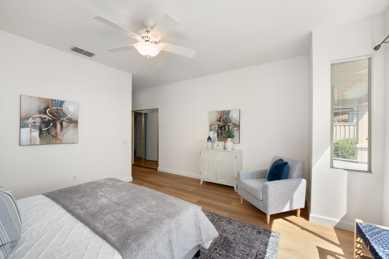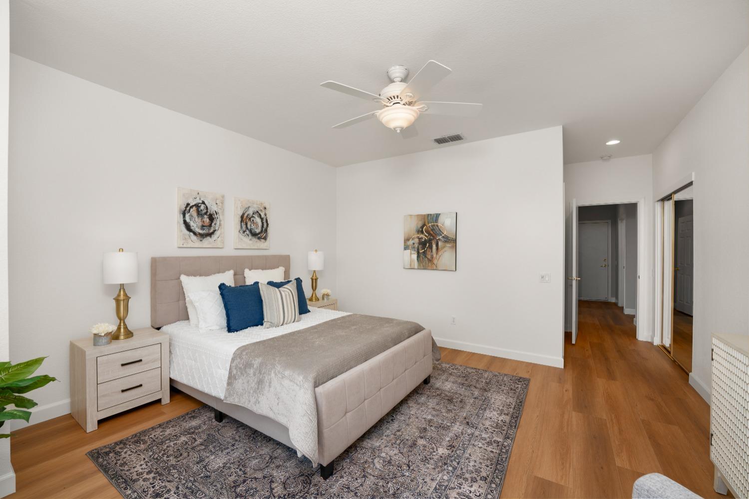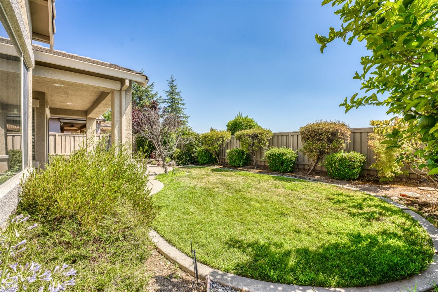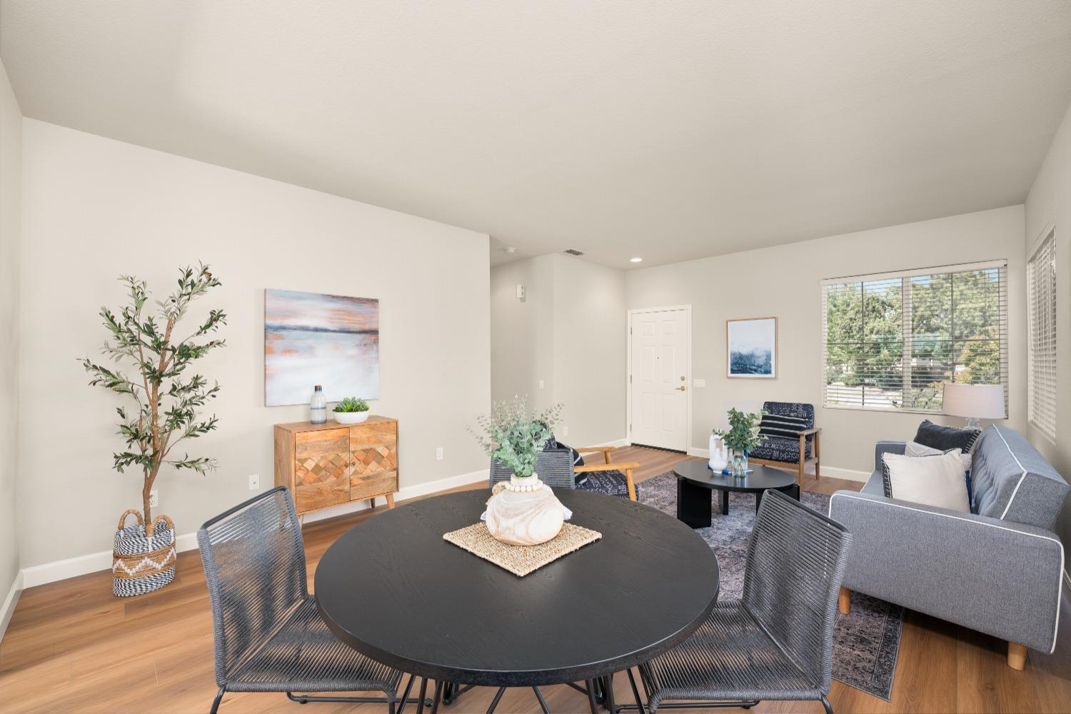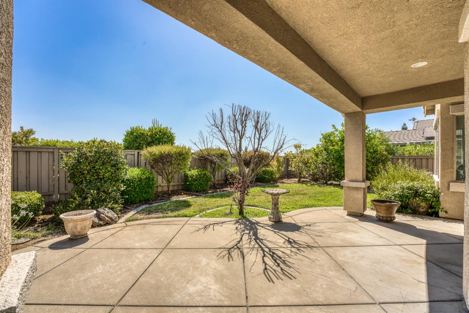Private, low maintenance, and move in ready! With an interior location, new LVP floors throughout, and fresh interior paint, this high-demand single-level Millpond model makes for the perfect new place to call home. Walk in to an open and inviting living room perfectly sized for gatherings with friends and family or for every day enjoyment. The light and bright kitchen offers a gas cooktop, ample counter space, a charming eat-in breakfast nook, and a garden view window looking out to the serene backyard. At the back of the home, you'll find a sizable primary suite with a large walk-in closet, sitting area, and views of the backyard landscape. The primary bath provides a step in shower with seat and grab bar, plus a suitable vanity with great counter space and storage. Down the hall lies the den, or second bedroom, with double doors and easy access to the second full bath with shower over tub. Step through the back slider to your covered patio. Use the citrus tree to add a fresh taste to your meals, and put your touches on the landscaping to make it come alive. You'll also enjoy an attached 2 car garage with laundry and additional storage. Come experience the active adult 55+ lifestyle featuring two golf courses, pickleball, tennis, bocce, swimming pools, clubhouse and more!