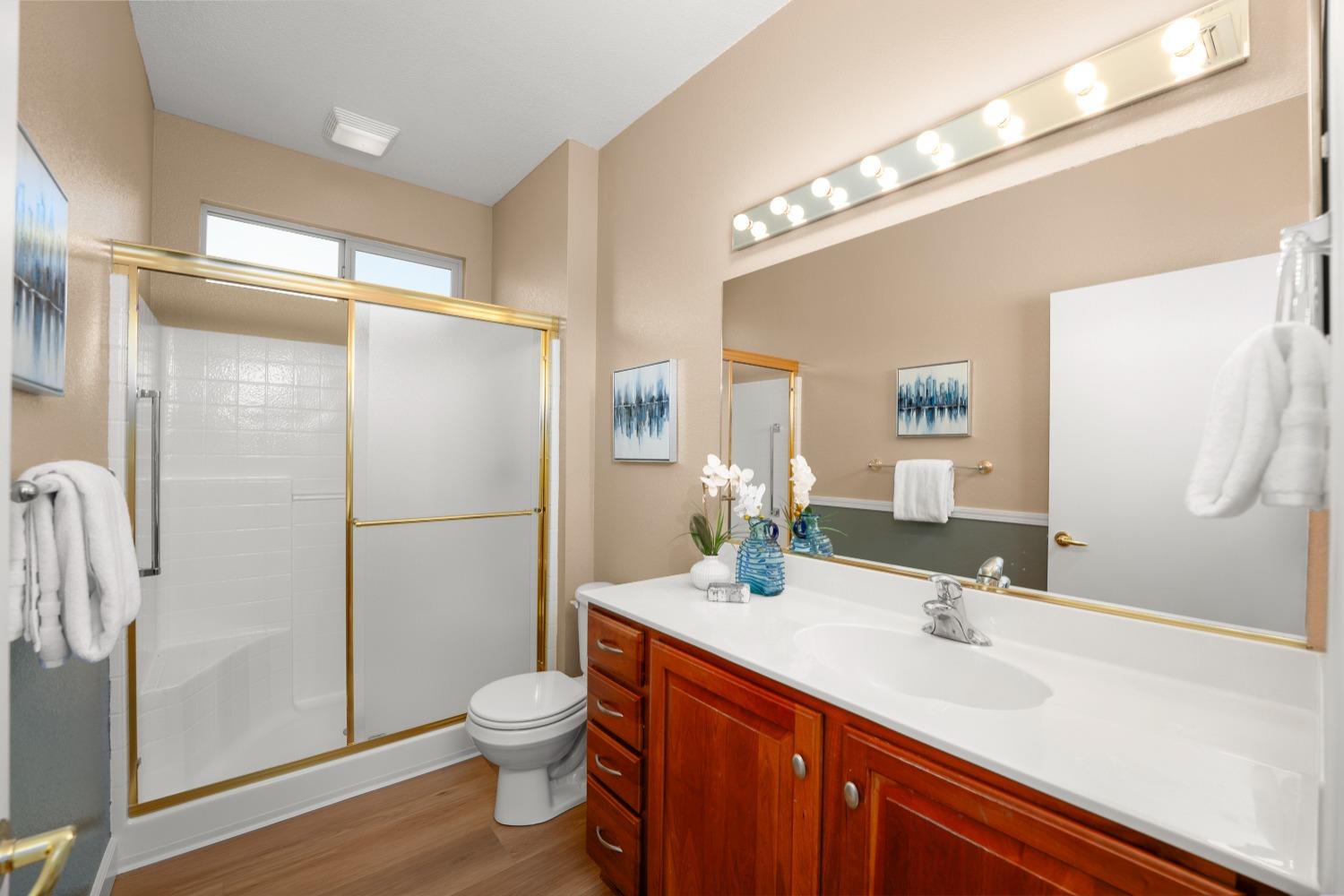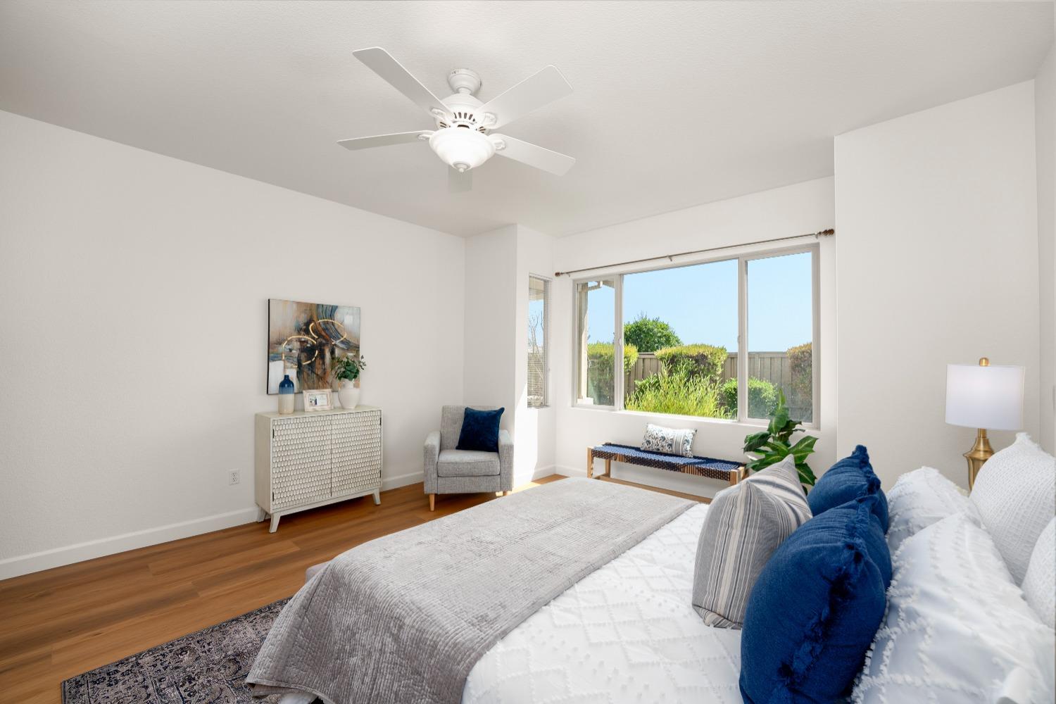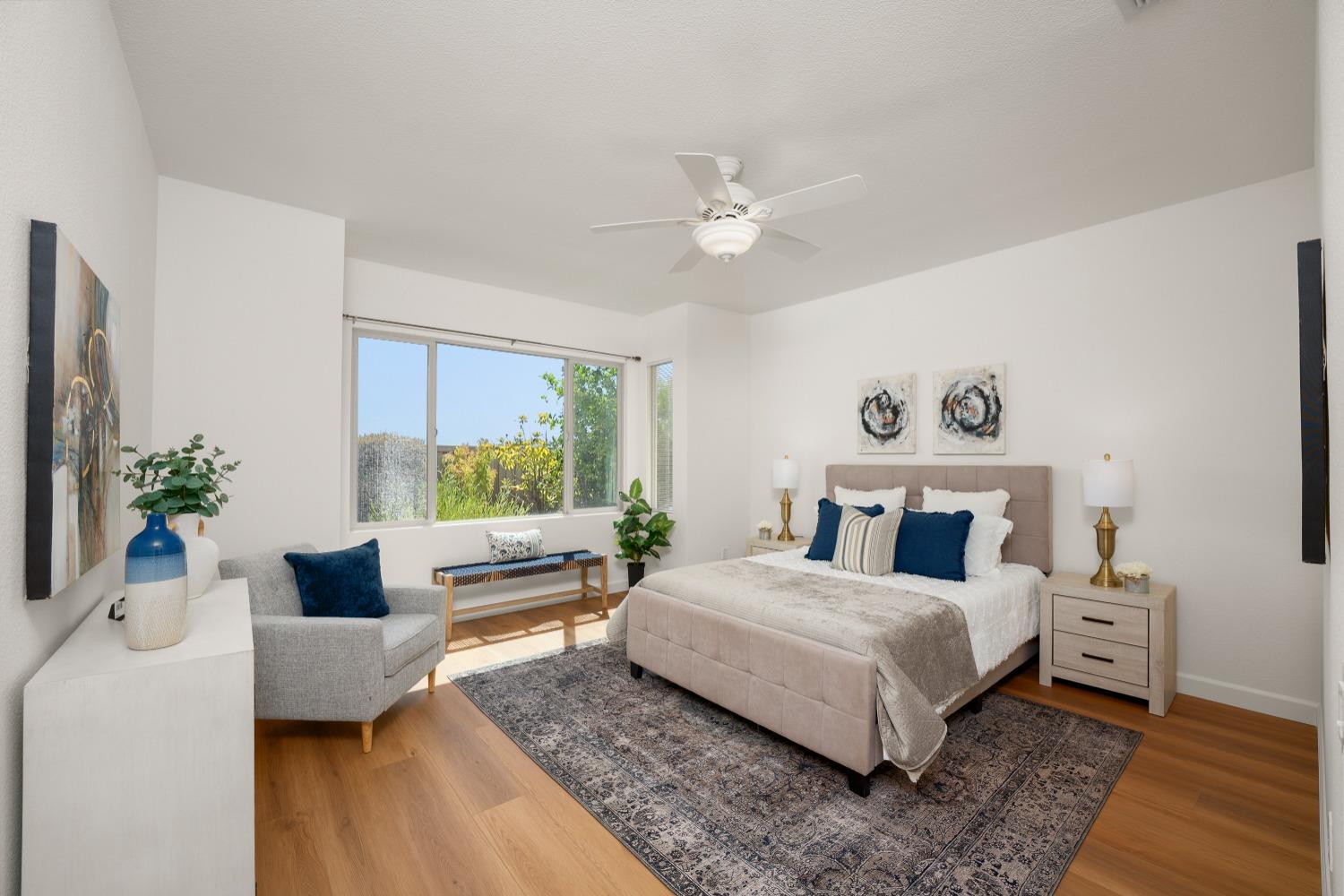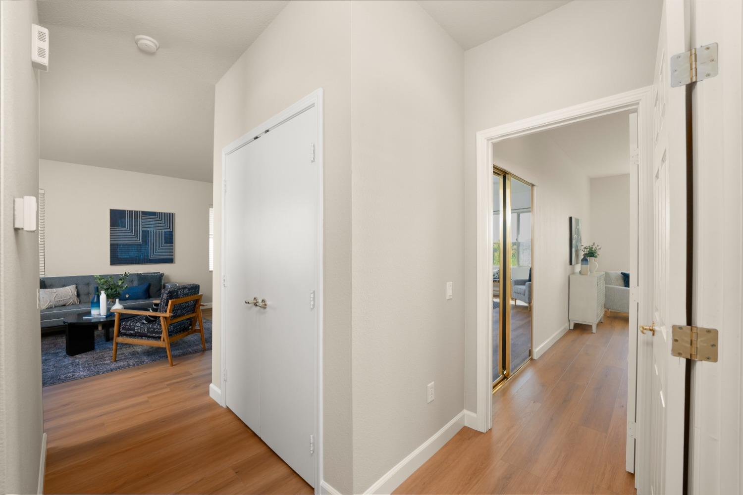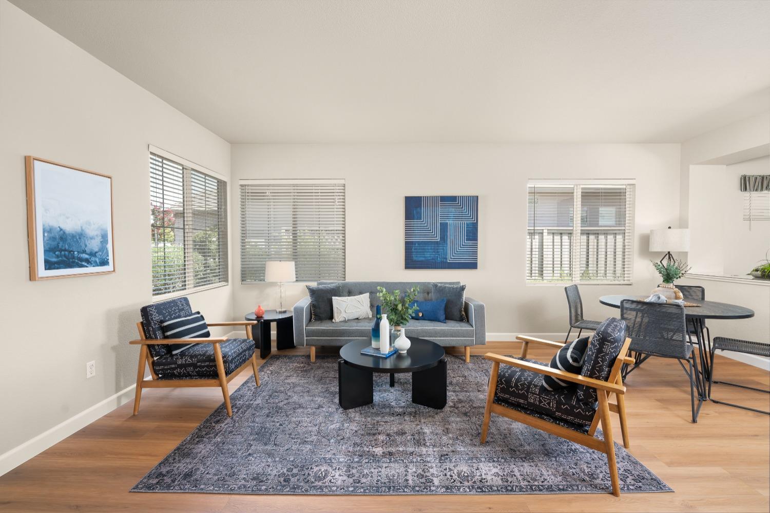 Private, low maintenance, and move in ready! With an interior location, new LVP floors throughout, and fresh interior paint, this high-demand single-level Millpond model makes for the perfect new place to call home. Walk in to an open and inviting living room perfectly sized for gatherings with friends and family or for every day enjoyment. The light and bright kitchen offers a gas cooktop, ample counter space, a charming eat-in breakfast nook, and a garden view window looking out to the serene backyard. At the back of the home, you'll find a sizable primary suite with a large walk-in closet, sitting area, and views of the backyard landscape. The primary bath provides a step in shower with seat and grab bar, plus a suitable vanity with great counter space and storage. Down the hall lies the den, or second bedroom, with double doors and easy access to the second full bath with shower over tub. Step through the back slider to your covered patio. Use the citrus tree to add a fresh taste to your meals, and put your touches on the landscaping to make it come alive. You'll also enjoy an attached 2 car garage with laundry and additional storage. Come experience the active adult 55+ lifestyle featuring two golf courses, pickleball, tennis, bocce, swimming pools, clubhouse and more!