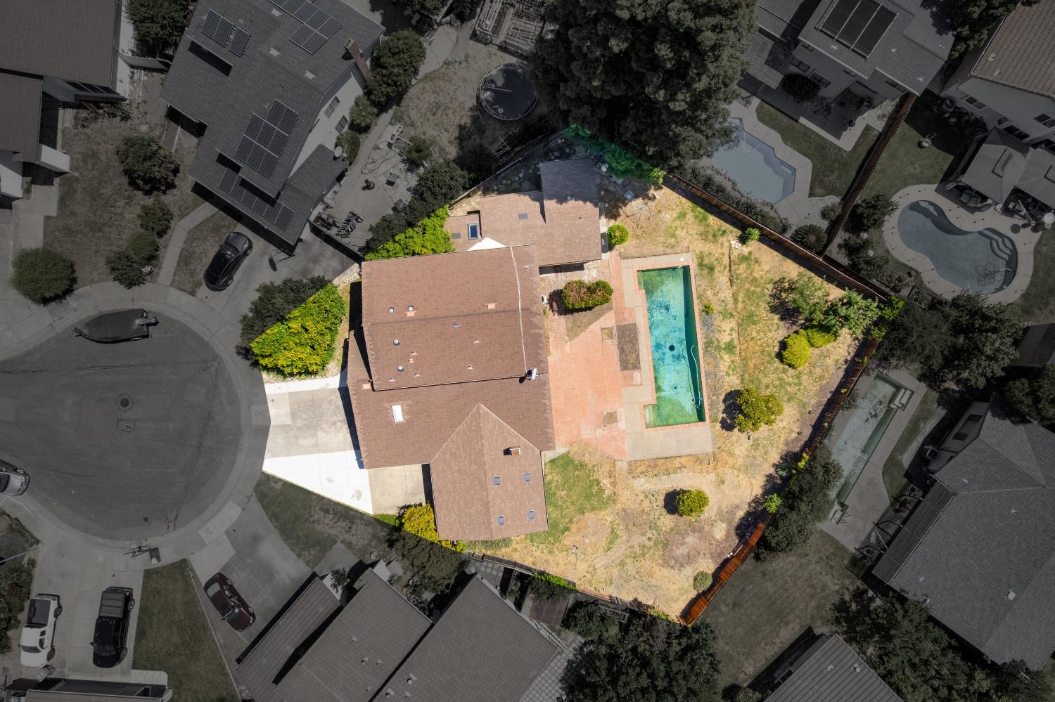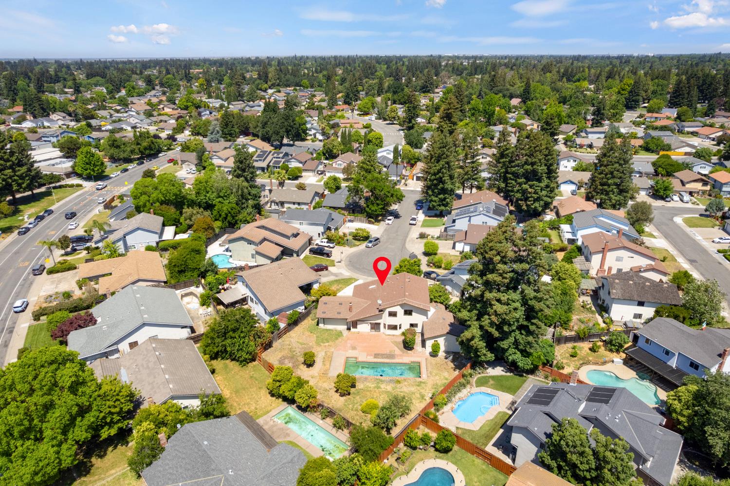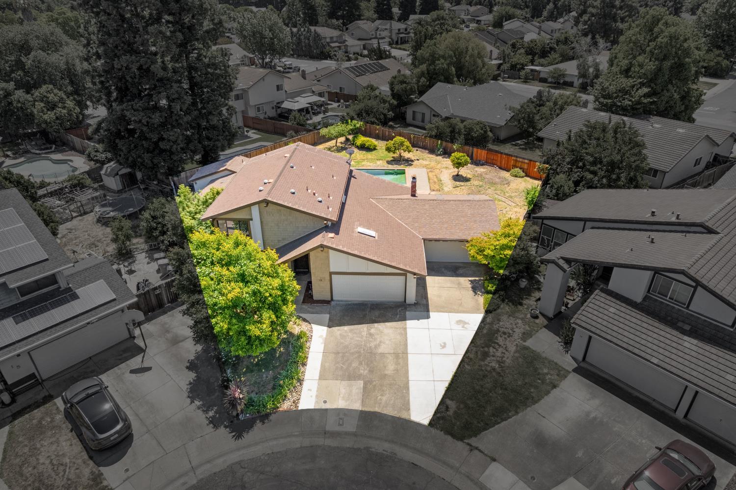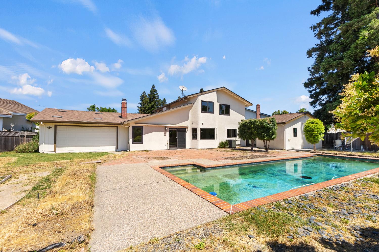 First time on the market since 1984! Nestled at the end of a cul-de-sac in the prestigious Pocket community, this exquisitely updated 5-bedroom, 3.5-bathroom home strikes the perfect balance between refined living and modern functionality. Situated on an expansive quarter-acre lot, this rare gem offers not only two two-car garages but also two en-suite bedrooms, one on the main level and one upstairs. Meticulously renovated with over $100,000 in upgrades, every detail has been thoughtfully curated to elevate your lifestyle. From the warm elegance of new luxury vinyl plank flooring to the ambient glow of designer light fixtures, the home exudes contemporary sophistication. Fresh interior and exterior paint lend a crisp, modern aesthetic, while the redesigned downstairs suite ideal for guests or multi-generational living offers privacy, comfort, and tasteful finishes. Upstairs, four additional bedrooms include a second suite, which was originally the primary bedroom. Light-filled living spaces flow seamlessly to the outdoors, where you'll find a sparkling pool and an expansive yard a blank canvas ready for your dream outdoor lifestyle. Sophisticated, spacious, and completely move-in ready. Welcome home!