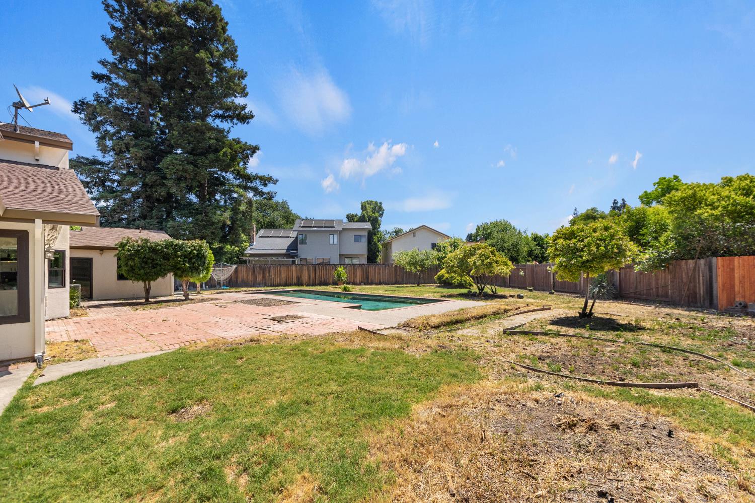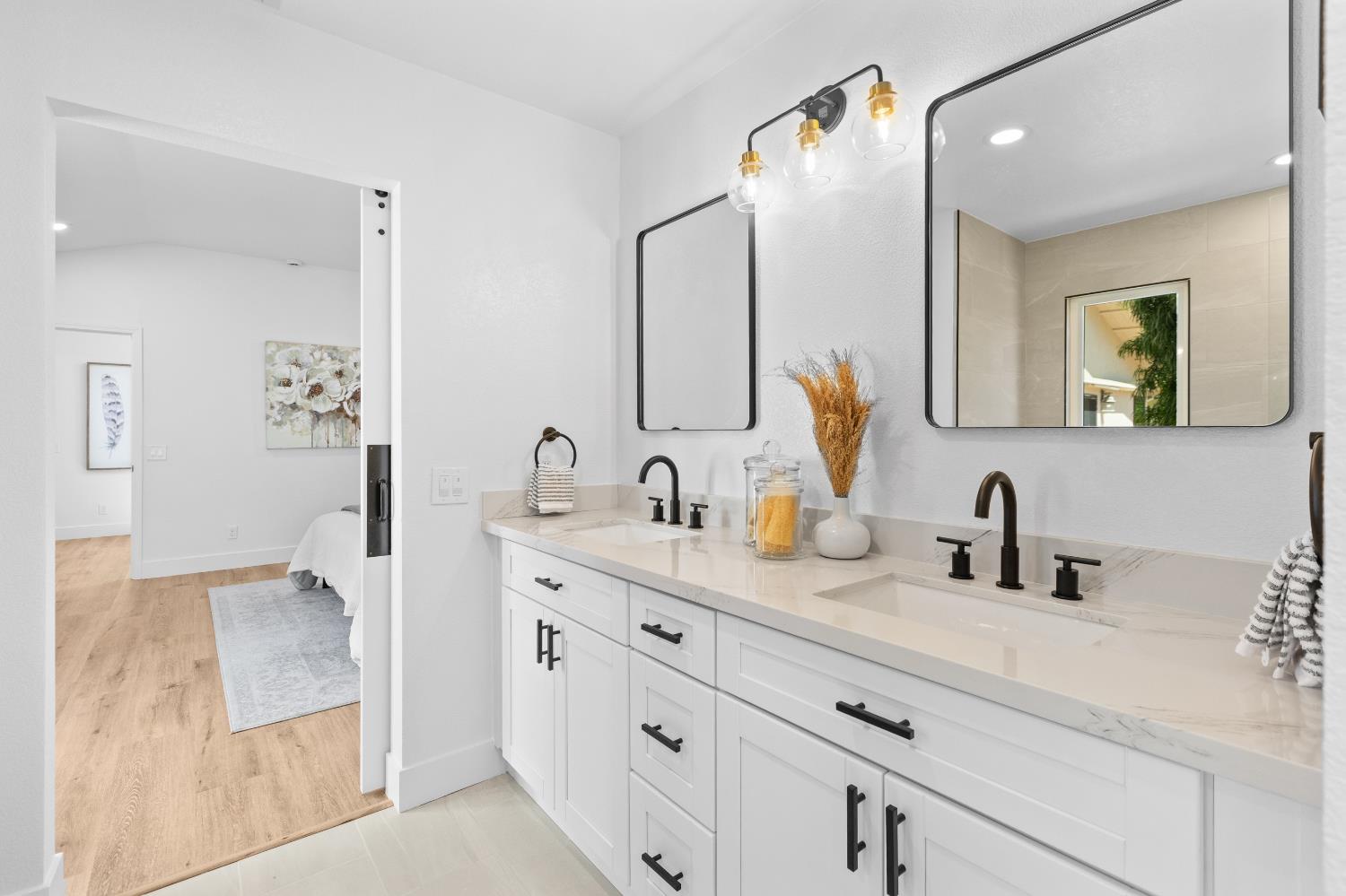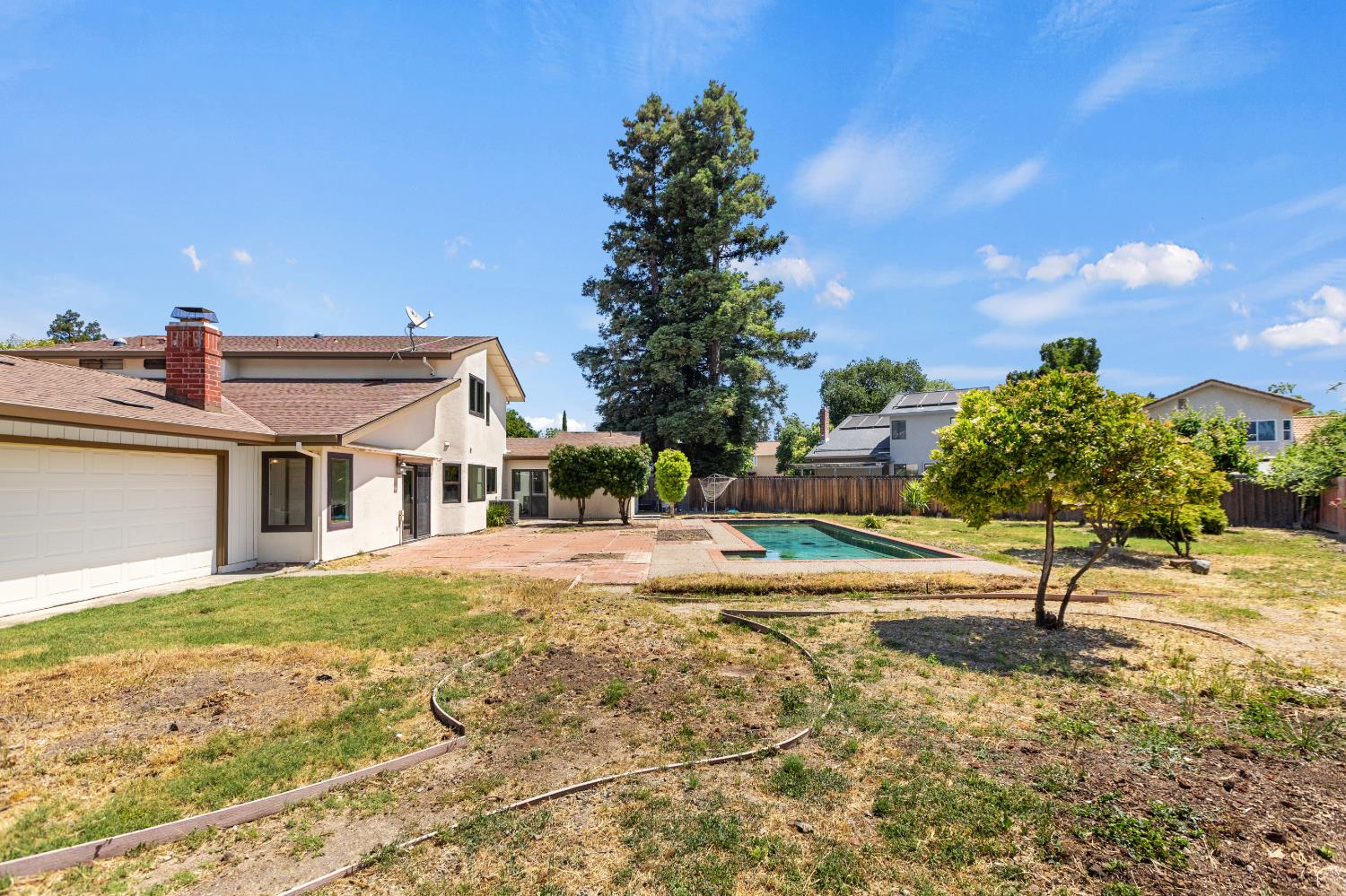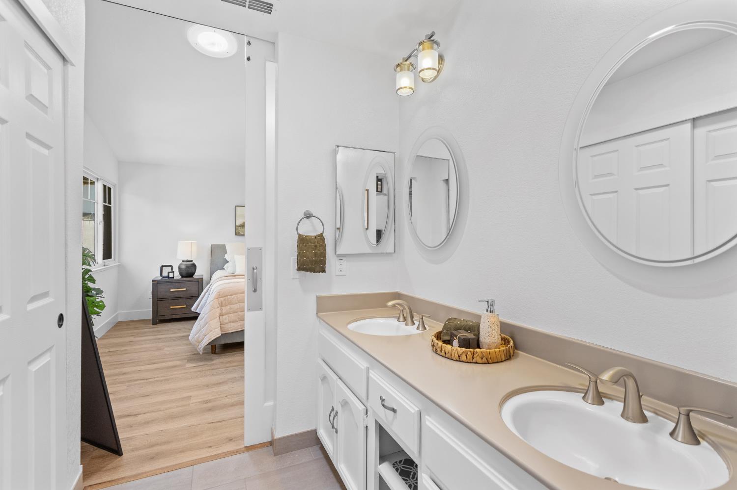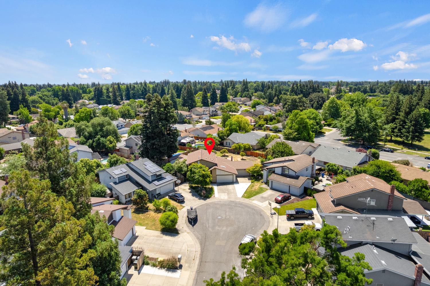 First time on the market since 1984! Nestled at the end of a cul-de-sac in the prestigious Pocket community, this exquisitely updated 5-bedroom, 3.5-bathroom home strikes the perfect balance between refined living and modern functionality. Situated on an expansive quarter-acre lot, this rare gem offers not only two two-car garages but also two en-suite bedrooms, one on the main level and one upstairs. Meticulously renovated with over $100,000 in upgrades, every detail has been thoughtfully curated to elevate your lifestyle. From the warm elegance of new luxury vinyl plank flooring to the ambient glow of designer light fixtures, the home exudes contemporary sophistication. Fresh interior and exterior paint lend a crisp, modern aesthetic, while the redesigned downstairs suite ideal for guests or multi-generational living offers privacy, comfort, and tasteful finishes. Upstairs, four additional bedrooms include a second suite, which was originally the primary bedroom. Light-filled living spaces flow seamlessly to the outdoors, where you'll find a sparkling pool and an expansive yard a blank canvas ready for your dream outdoor lifestyle. Sophisticated, spacious, and completely move-in ready. Welcome home!