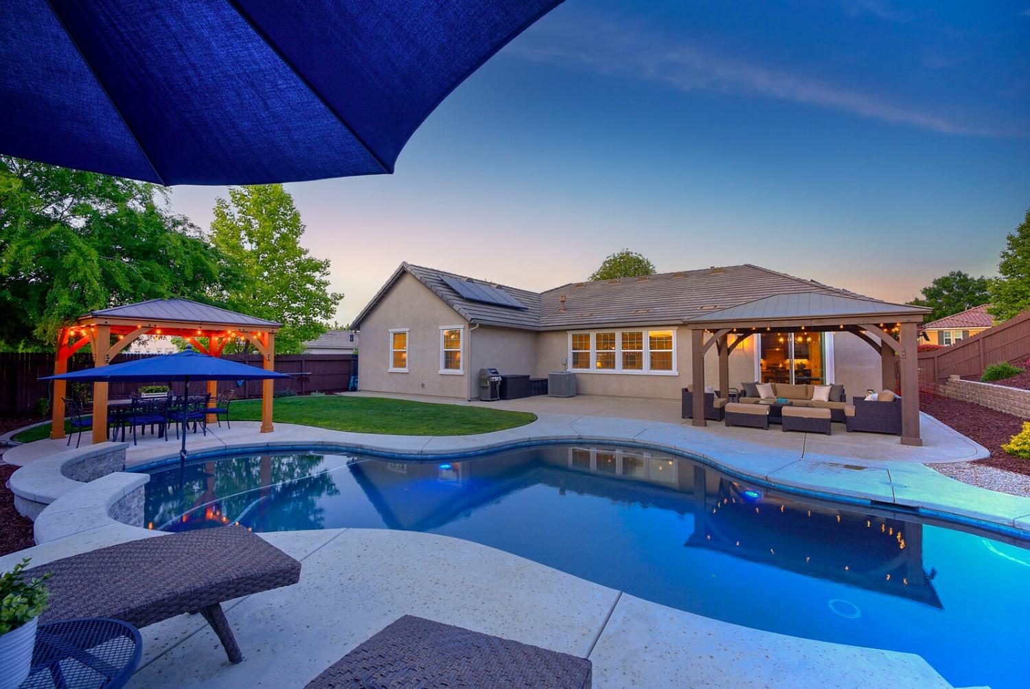 Traditional - Timeless - Turnkey - These three words that best describe 200 Fantail Court. Located in the desirable courts of Twelve Bridges, this stunning home boasts 4 bedrooms, 2 bathrooms, and a generous 2594 square feet of living space and an expansive lot spanning over a quarter acre. Step inside to the warmth of hardwood floors that lead you to the custom built-in drop zone, home office and open floor plan with great room concept and dining area. The kitchen is a chef's delight with granite countertops and stainless steel appliances, while the master bath boasts luxurious travertine floors and walk-in shower. Outside, discover your own backyard paradise, featuring a saltwater pool with a soothing waterfall and a cabo shelf, complemented by two gazebos and a lush lawn. Your pocketbook will appreciate the 7.35kW owned solar system in PG&E's NEM 2 net metering. Explore the miles of nature trails, great restaurants and award winning schools offered in this unique neighborhood. Your next and best chapter begins on Fantail Court.