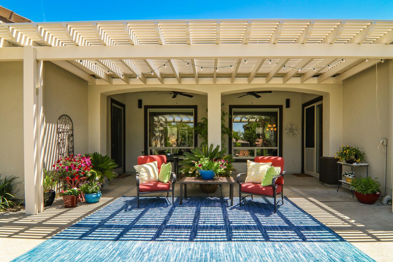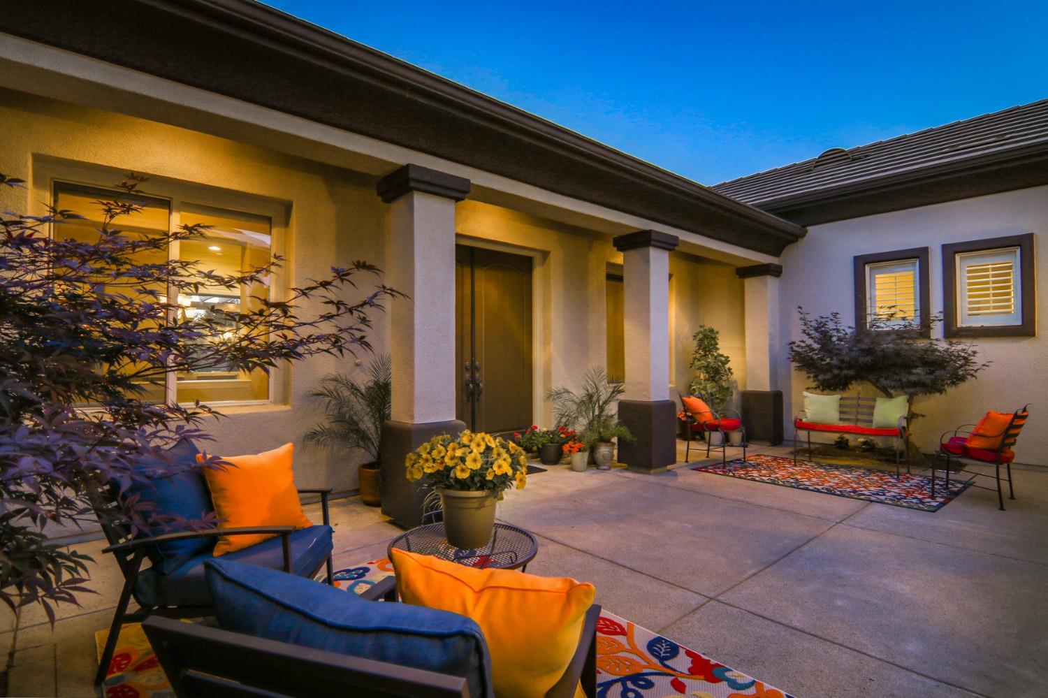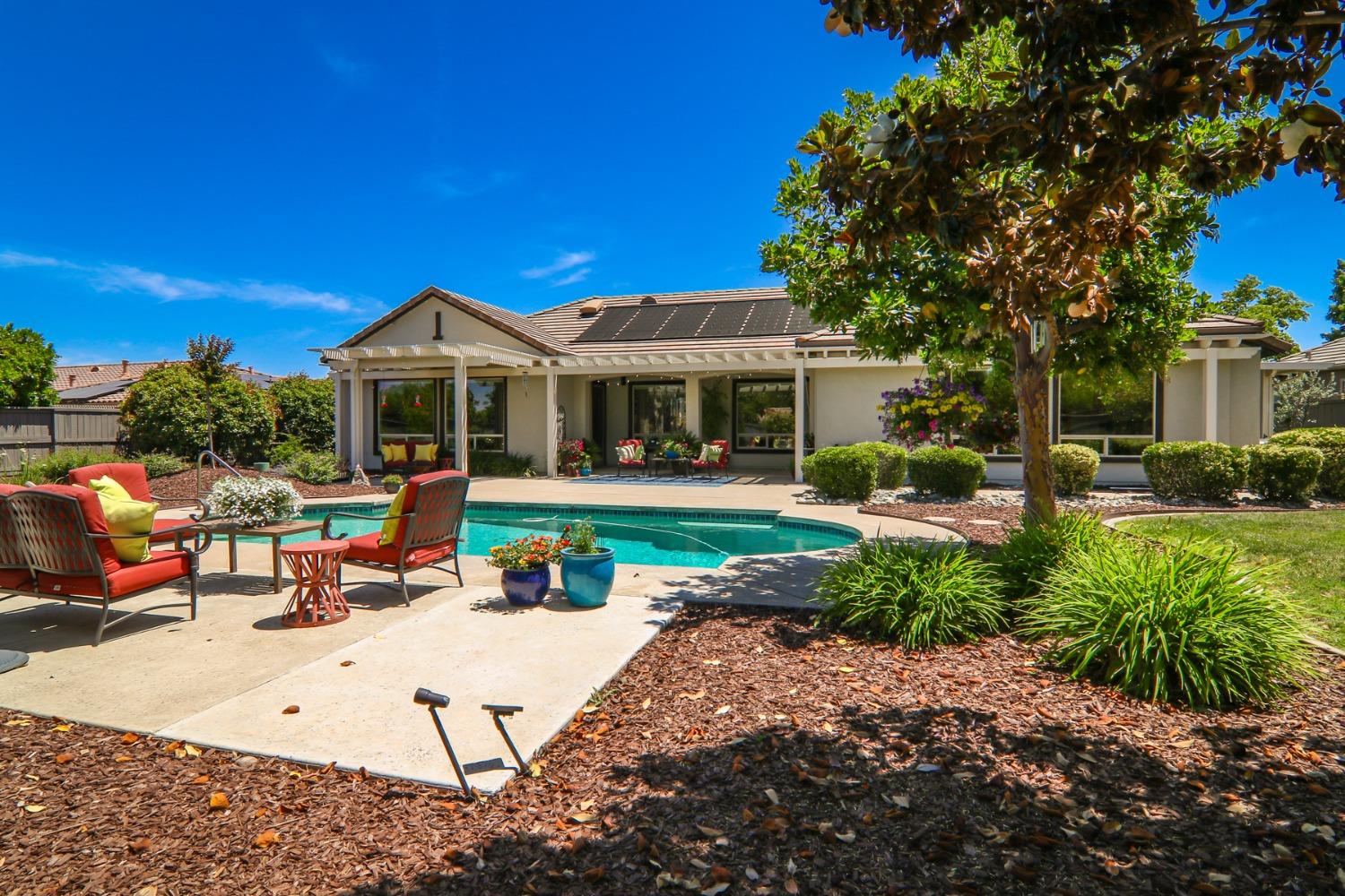 Rare opportunity to obtain a ONE STORY home with POOL AND OWNED SOLAR in the gated single-story-only community adjacent to Catta Verdera Country Club! Unique location nestled within the middle of the community for complete peace and quiet. Inside the home, an open floor plan is highlighted by large windows throughout the main living areas. The master suite has wall-length windows and opens to a California Room. The home office den also opens to its own courtyard. Extensive 3 car garage with unique shop area. Relaxation awaits in a backyard that is perfectly level and easy to maintain. The centerpiece of the yard is a beautiful PEBBLE TEC POOL with POOL SOLAR, perfect for weekend fun. Enjoy a low cost and low maintenance lifestyle with an HOA that maintains your front yard for you (included in HOA fees). Savor the low utility costs that OWNED SOLAR brings and key upgrades such as a new HVAC and furnace! Enjoy life to the fullest at this home that is steps to top golf at Catta Verdera Country Club. Unique opportunity to live in a gated community with beautiful nature, friendly neighbors, walking trails, country club golf, yet 15 minutes to everything! Priced aggressively and below recent sales of this floor plan.