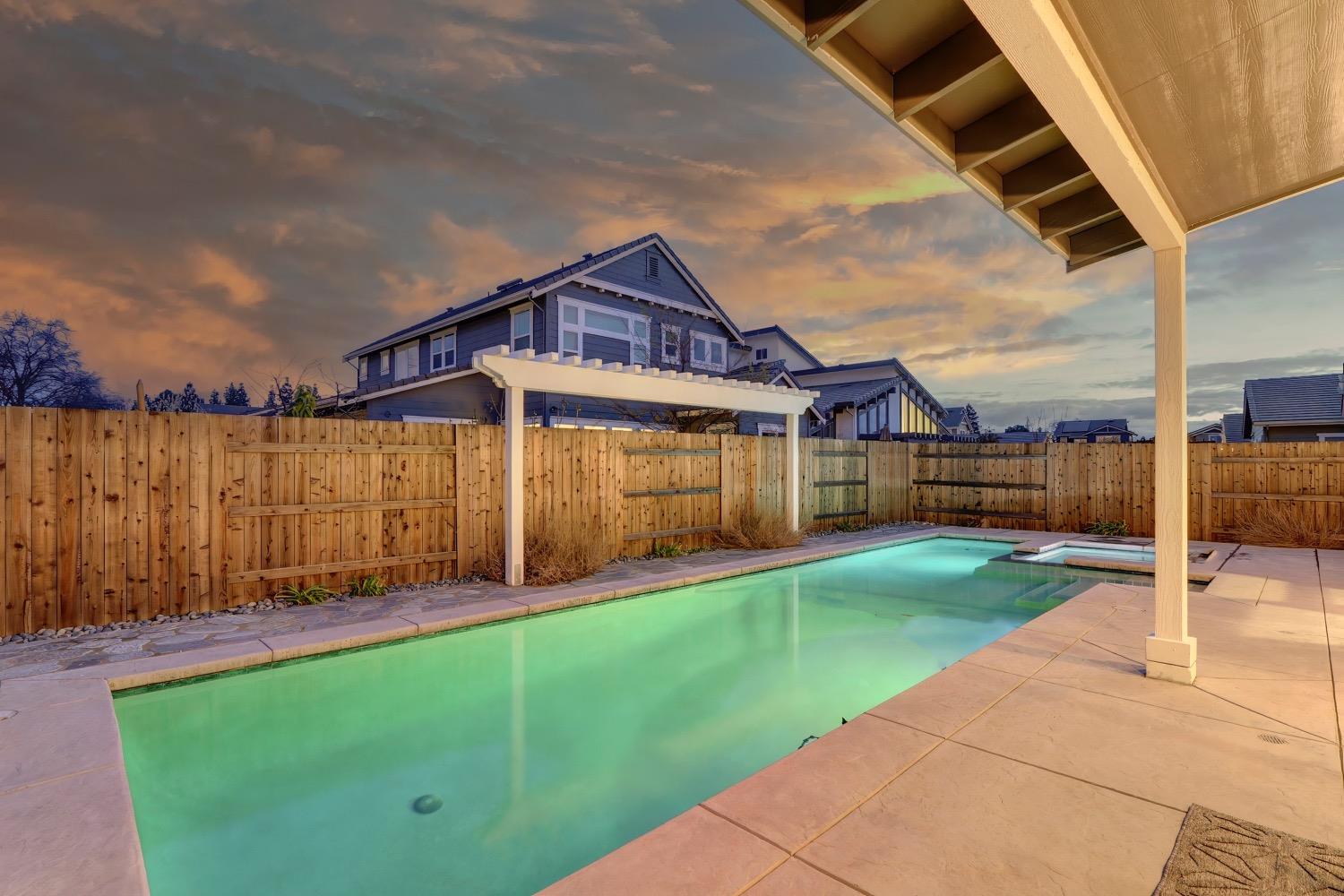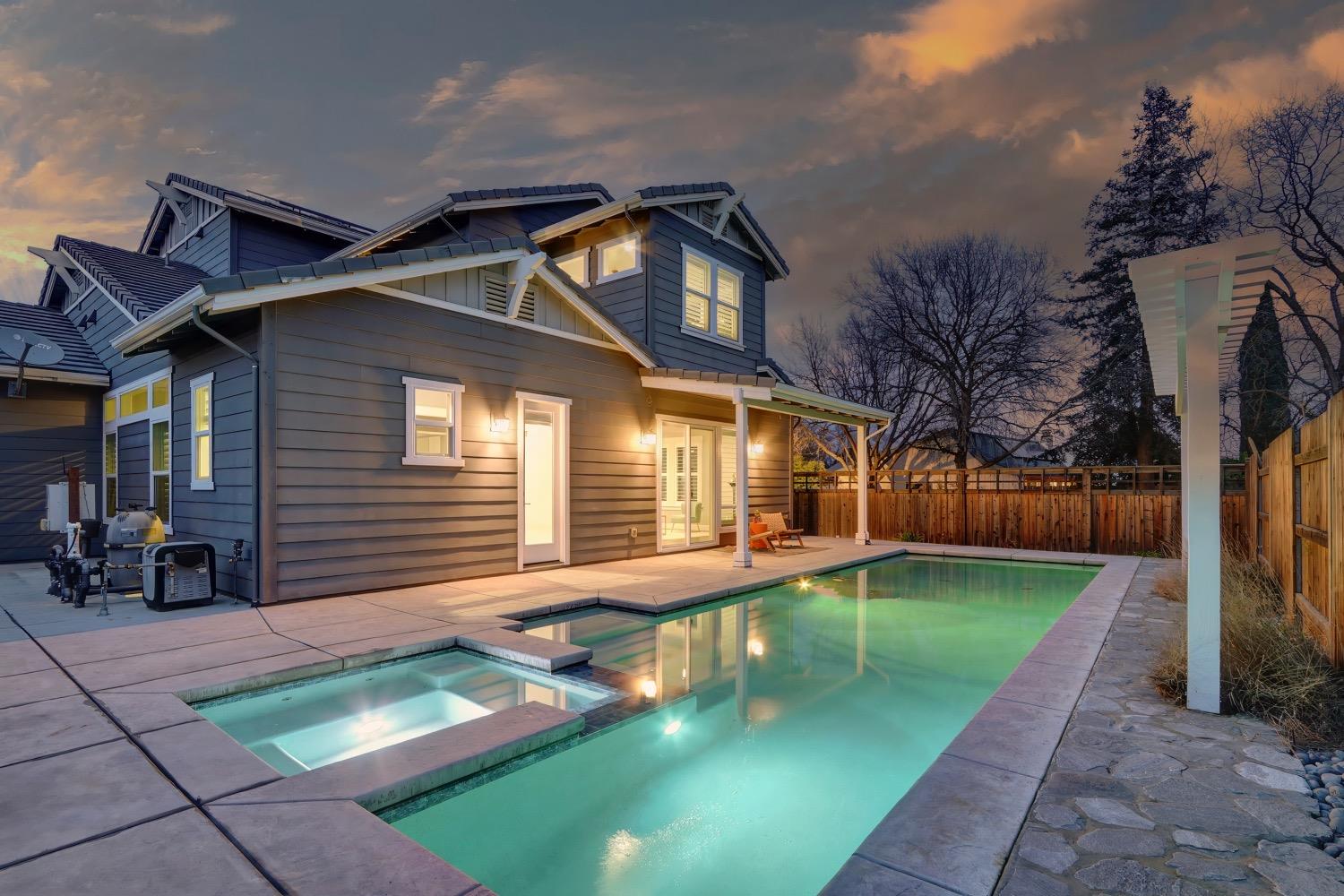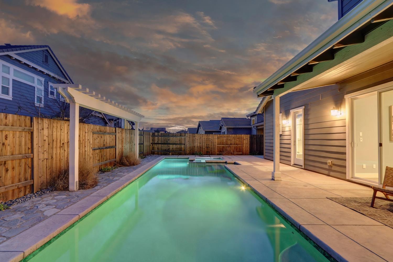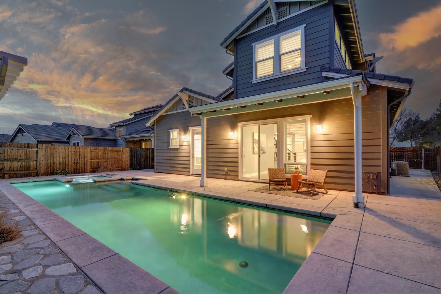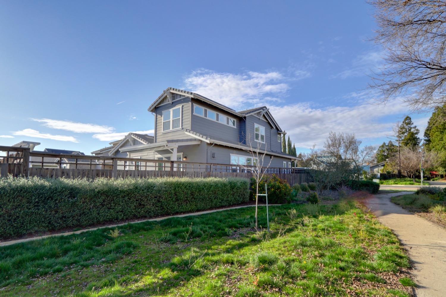 Modern living in an established, highly sought after neighborhood! This spacious 4 bedroom, 3 bathroom custom home of almost 2,600 sf, abuts the North Davis greenbelt and is a short distance away from both Covell Park and Northstar Park. A well manicured front yard greets you, once inside, high ceilings, flowing floor-plan, and an abundance of natural light give the home a bright and airy feeling. The kitchen features a large island thoughtfully oriented for functionality and entertainment with ample space for large gatherings. Finishes include high-end stone countertops, hickory wood floors, and stainless steel appliances with double ovens. The primary suite is located on the main-level with a generously sized bathroom, large walk-in closet, and direct access to the gorgeous pool and spa in the backyard. The upper-level includes 3 bedrooms and a multi-purpose loft area. Tesla solar and on-demand hot water are an added bonus. This incredible home is located near excellent schools and is less than 10 minutes from downtown and UC Davis.