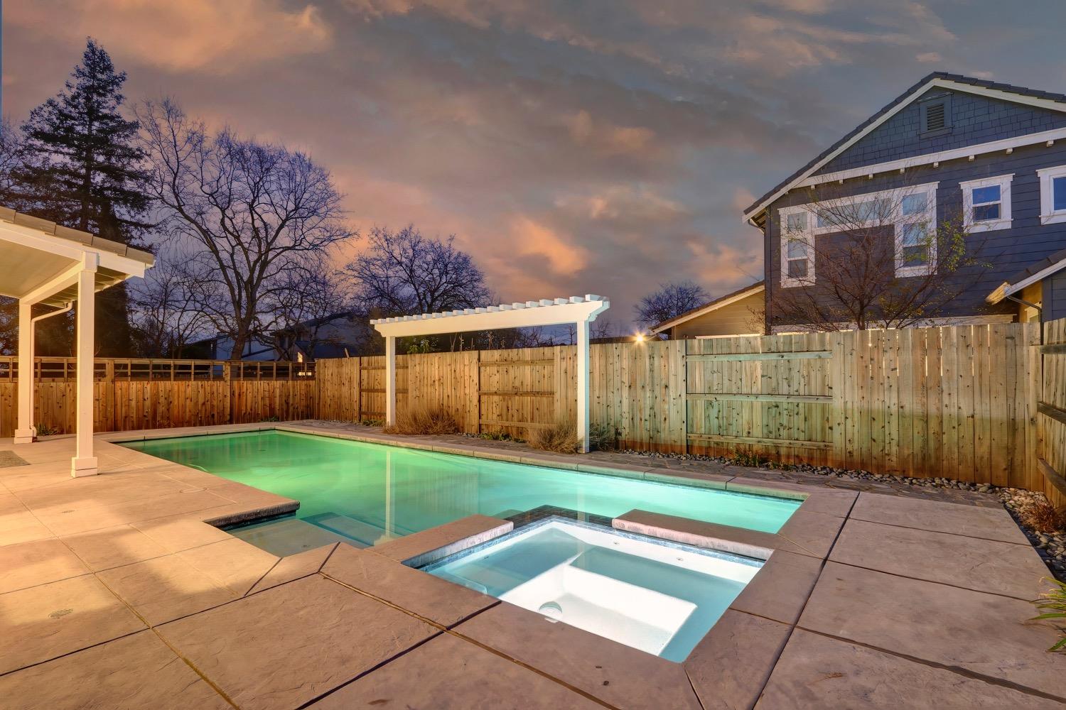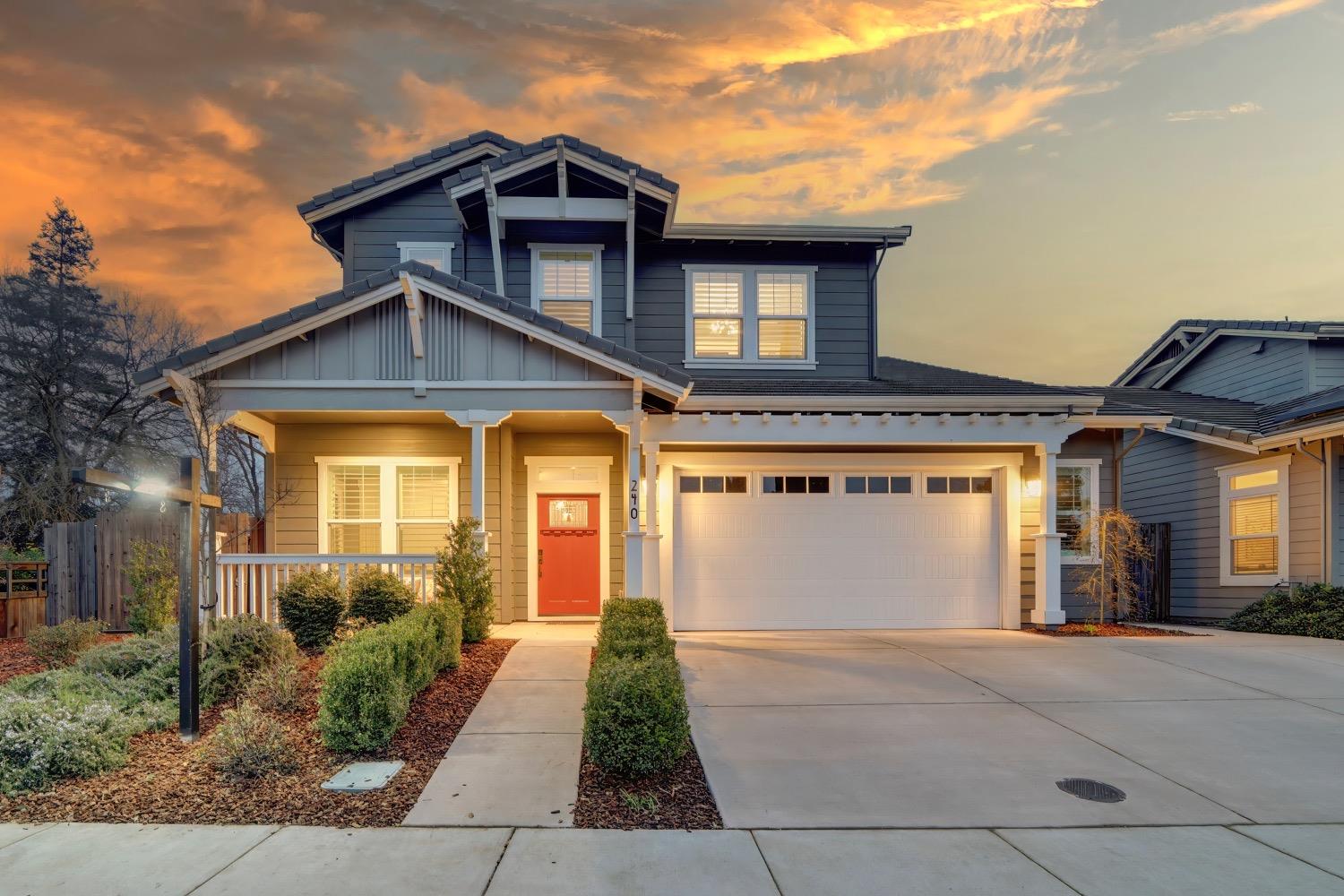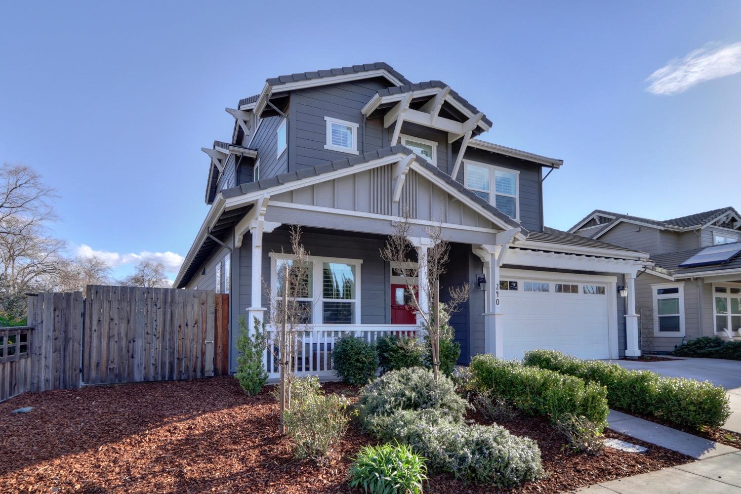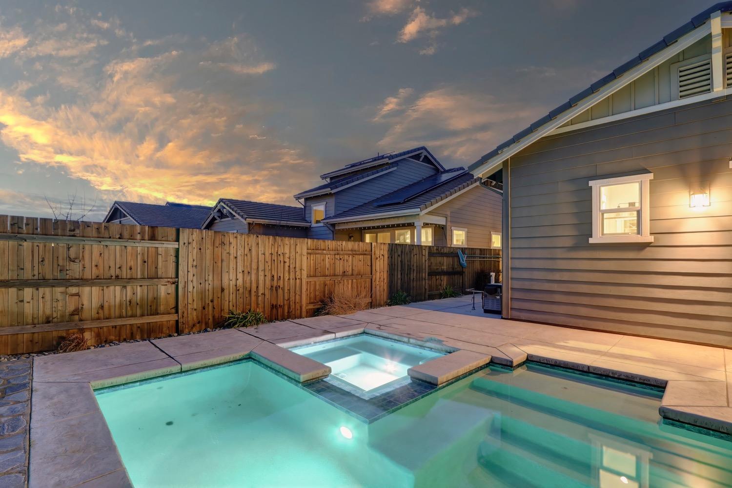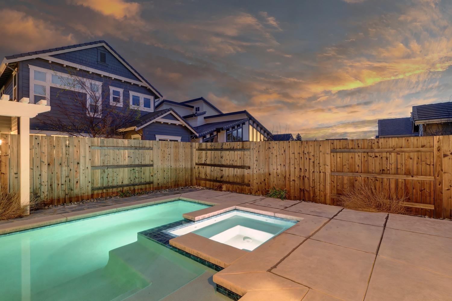 Modern living in an established, highly sought after neighborhood! This spacious 4 bedroom, 3 bathroom custom home of almost 2,600 sf, abuts the North Davis greenbelt and is a short distance away from both Covell Park and Northstar Park. A well manicured front yard greets you, once inside, high ceilings, flowing floor-plan, and an abundance of natural light give the home a bright and airy feeling. The kitchen features a large island thoughtfully oriented for functionality and entertainment with ample space for large gatherings. Finishes include high-end stone countertops, hickory wood floors, and stainless steel appliances with double ovens. The primary suite is located on the main-level with a generously sized bathroom, large walk-in closet, and direct access to the gorgeous pool and spa in the backyard. The upper-level includes 3 bedrooms and a multi-purpose loft area. Tesla solar and on-demand hot water are an added bonus. This incredible home is located near excellent schools and is less than 10 minutes from downtown and UC Davis.