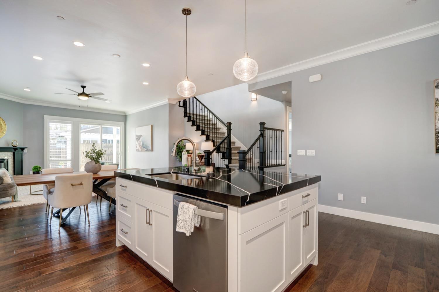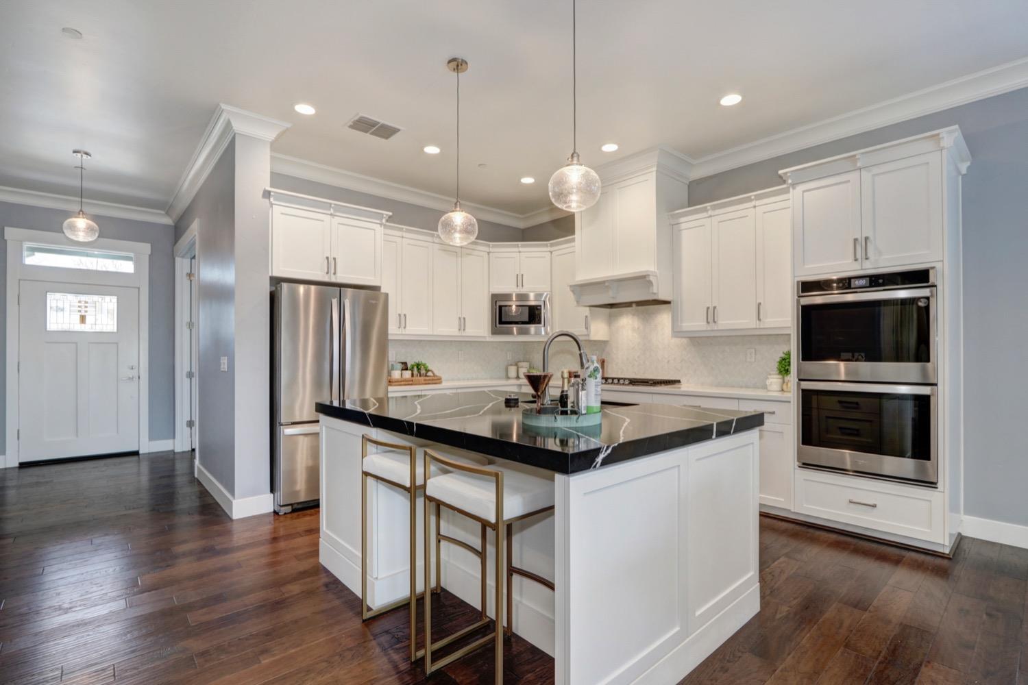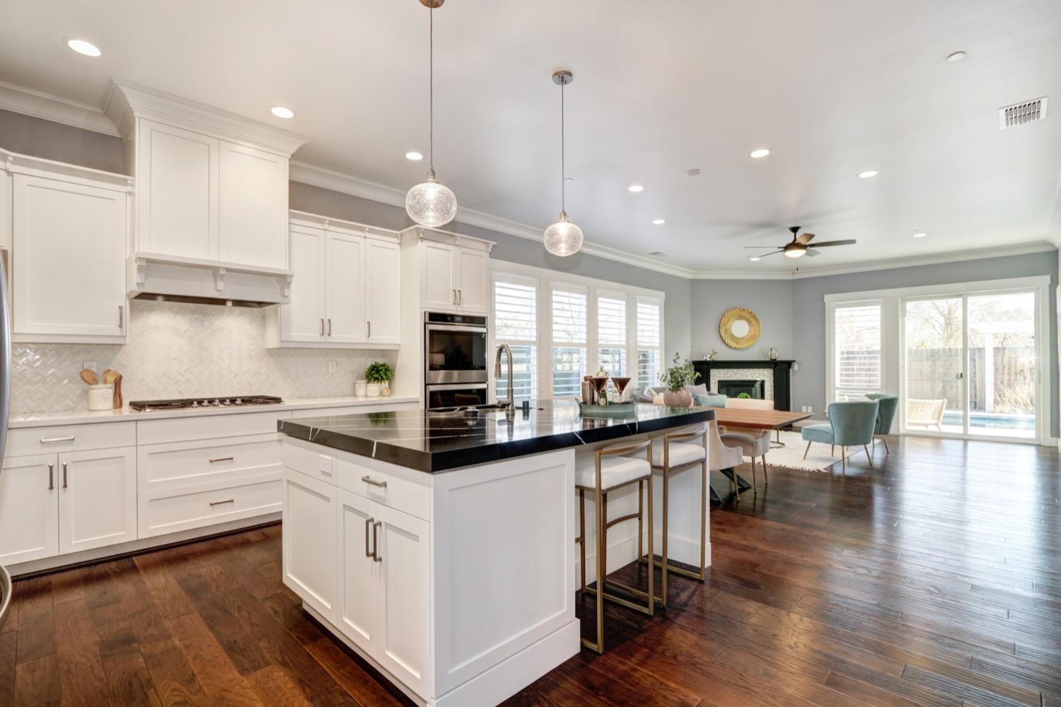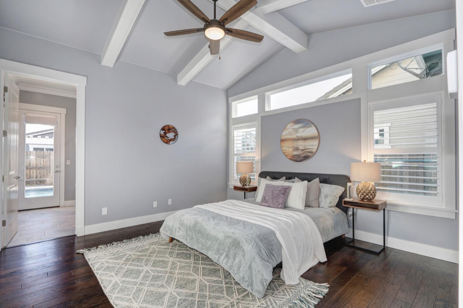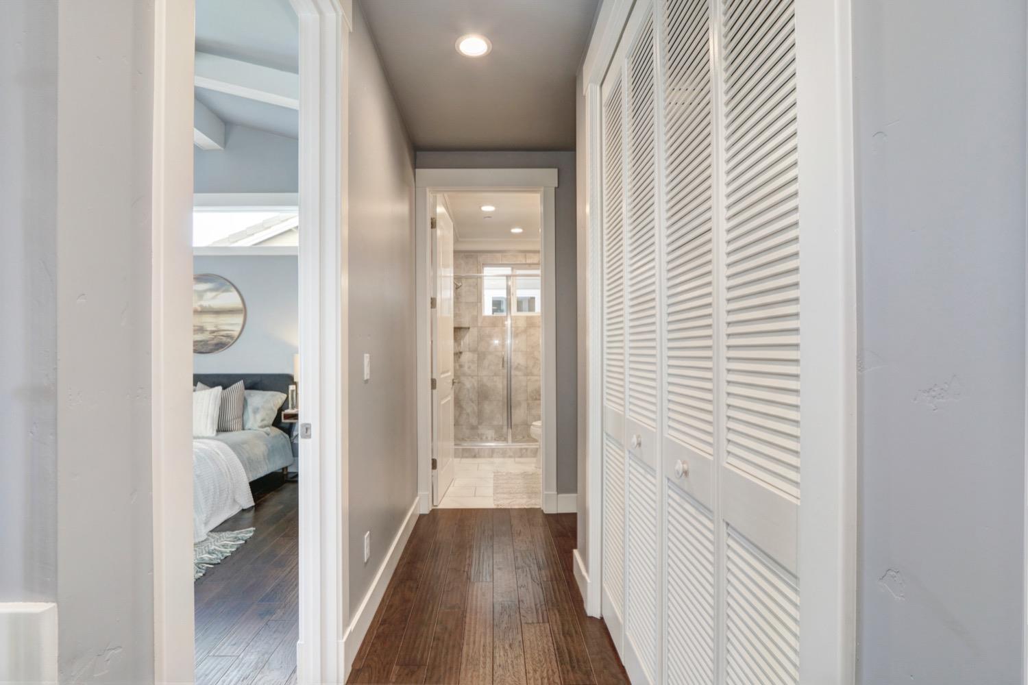 Modern living in an established, highly sought after neighborhood! This spacious 4 bedroom, 3 bathroom custom home of almost 2,600 sf, abuts the North Davis greenbelt and is a short distance away from both Covell Park and Northstar Park. A well manicured front yard greets you, once inside, high ceilings, flowing floor-plan, and an abundance of natural light give the home a bright and airy feeling. The kitchen features a large island thoughtfully oriented for functionality and entertainment with ample space for large gatherings. Finishes include high-end stone countertops, hickory wood floors, and stainless steel appliances with double ovens. The primary suite is located on the main-level with a generously sized bathroom, large walk-in closet, and direct access to the gorgeous pool and spa in the backyard. The upper-level includes 3 bedrooms and a multi-purpose loft area. Tesla solar and on-demand hot water are an added bonus. This incredible home is located near excellent schools and is less than 10 minutes from downtown and UC Davis.