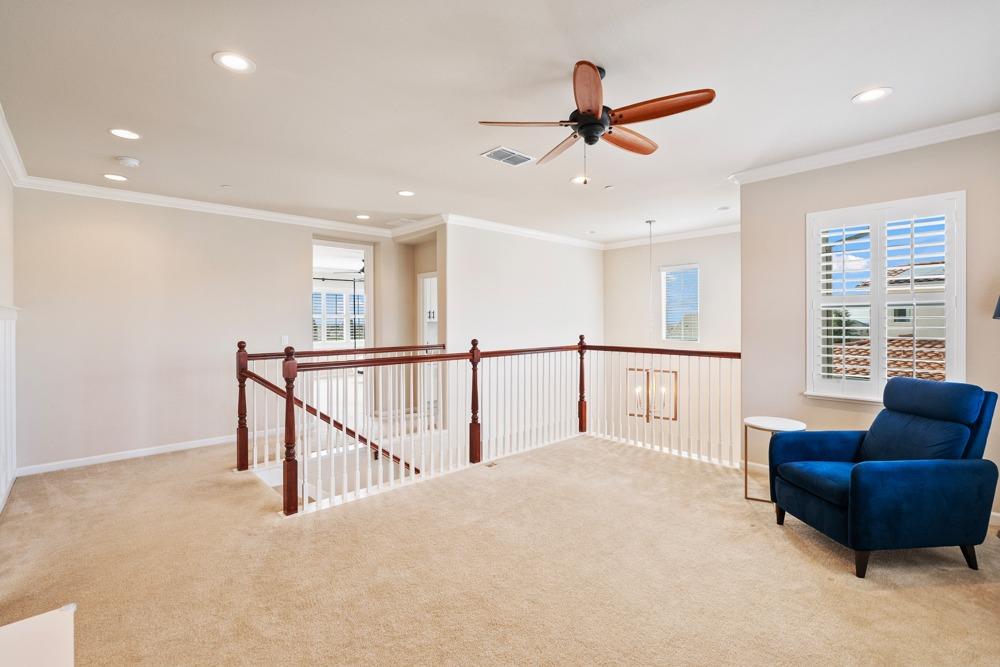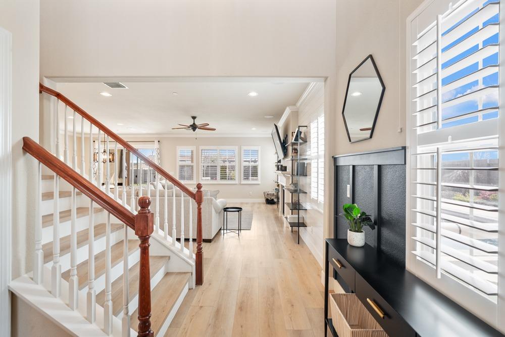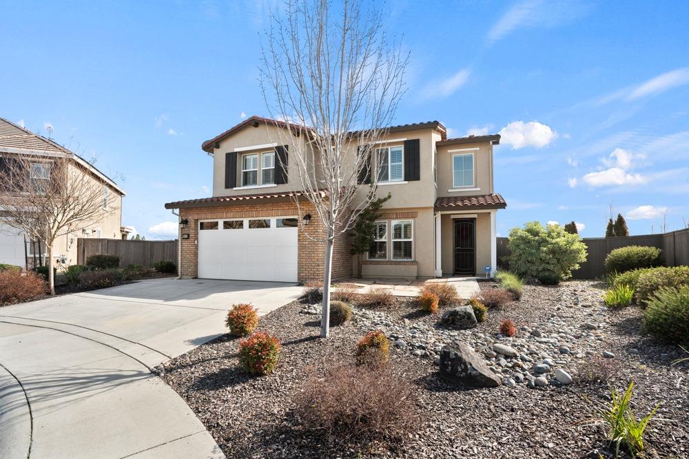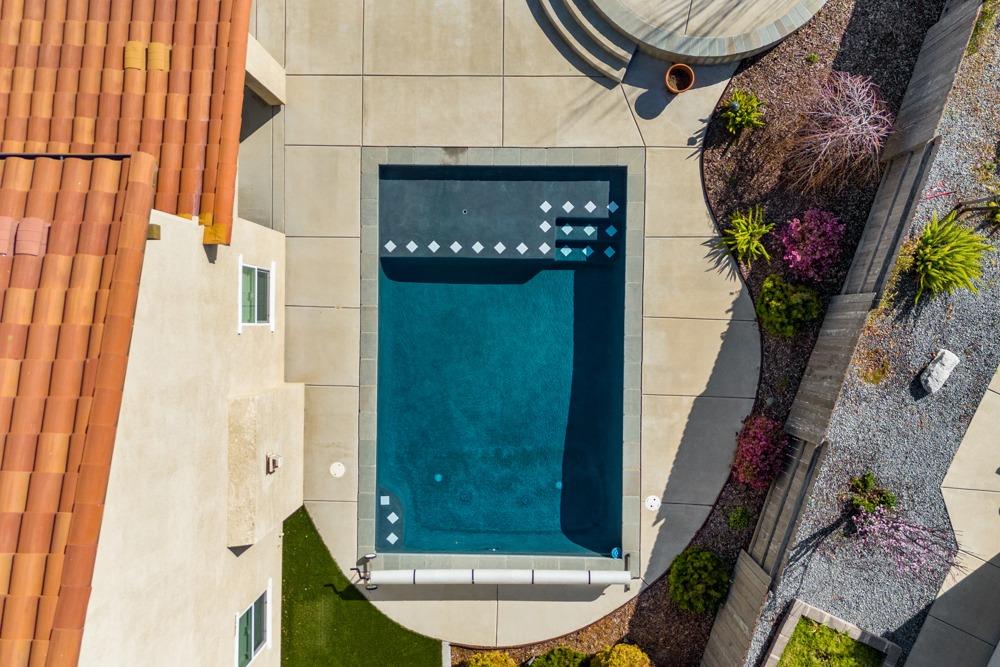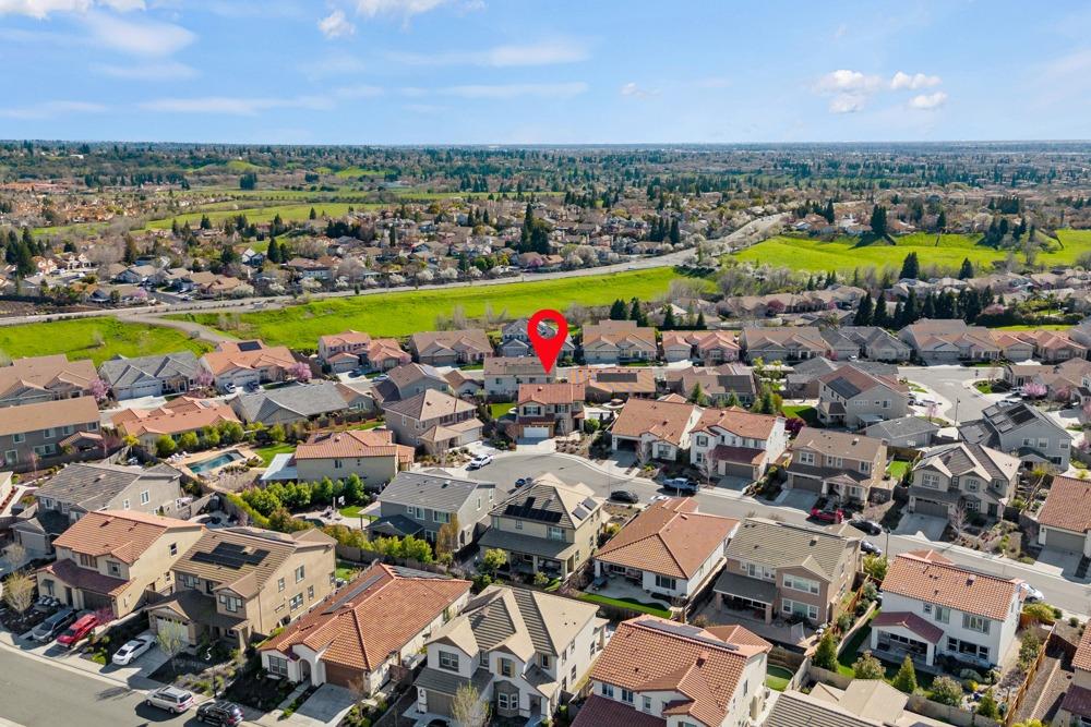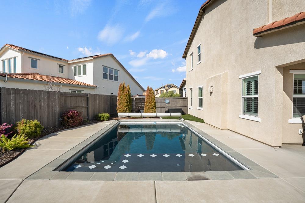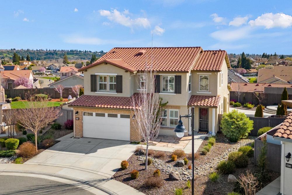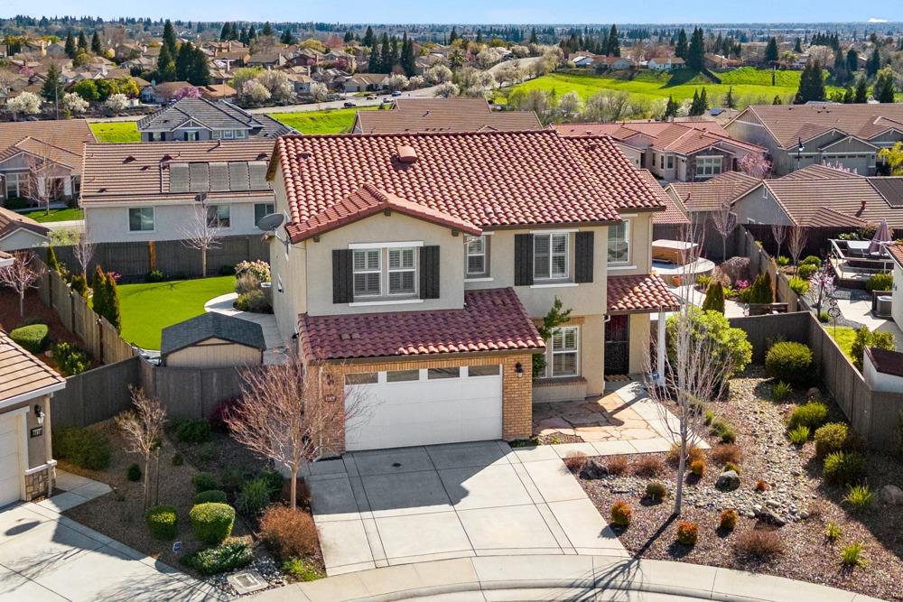 This Whitney Ranch beauty checks all the boxes! From the airy foyer full of natural light, enter the expansive open-plan living/dining/kitchen area, perfect for entertaining friends or quiet family time. On the same level, a room with glass doors makes for an excellent home office or meditation space. An open loft anchors the upstairs level, flanked by the bedrooms. The oversized primary suite overlooks the beautiful resort-like backyard. The laundry is conveniently upstairs as well. Finishes throughout are high-end, including top-of-the-line plantation shutters, luxury vinyl plank flooring, updated bathrooms with stylish tile and stunning crown molding. Outside you will enjoy your own private paradise, with a large covered porch, contemporary swimming pool, spa and raised garden beds. There's a three-car tandem garage equipped with an EV charger, plus owned solar. All this on a serene cul-de-sac in a desirable corner of Rocklin.