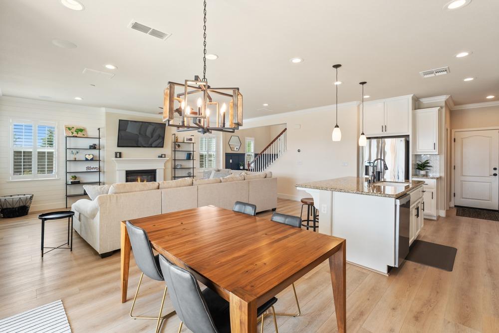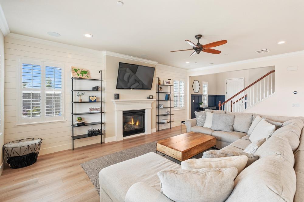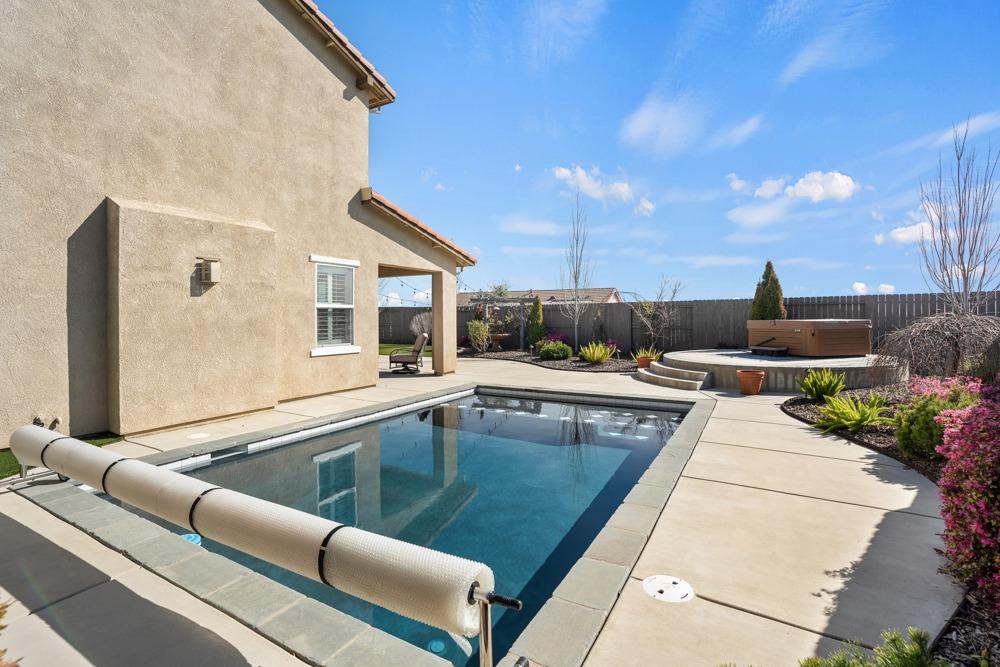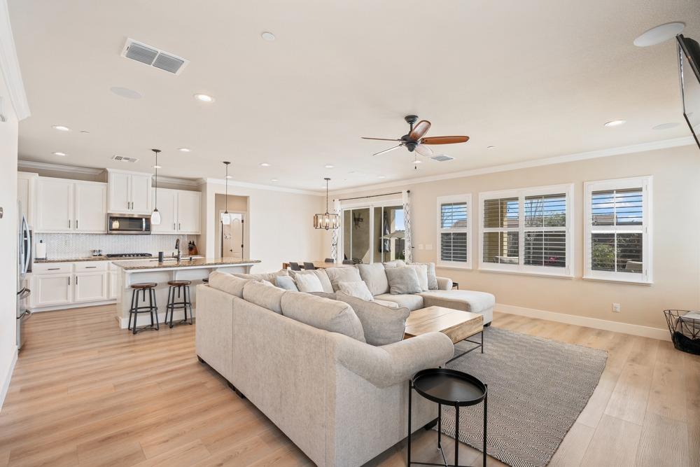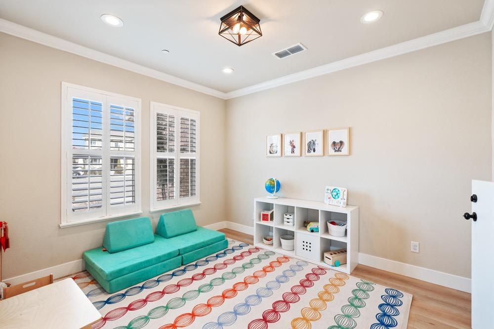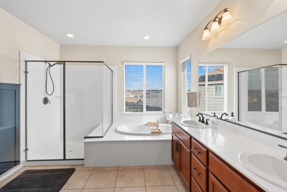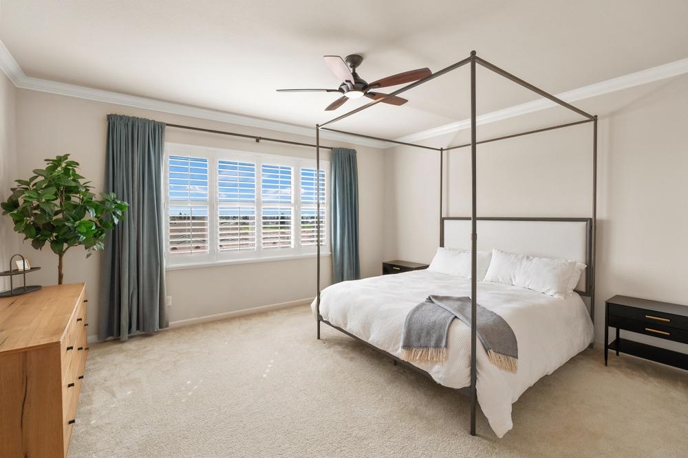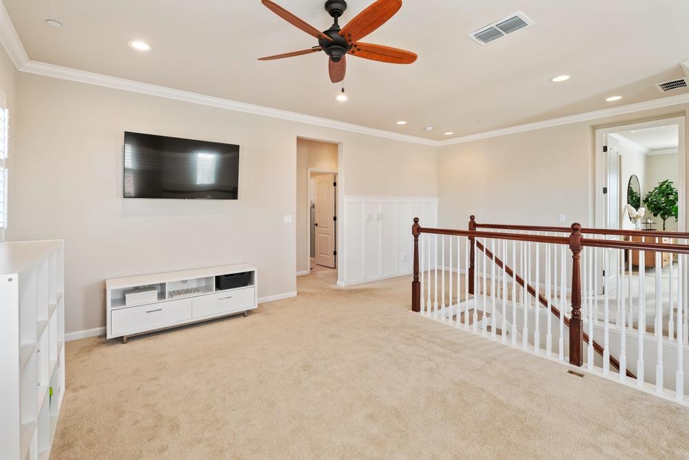 This Whitney Ranch beauty checks all the boxes! From the airy foyer full of natural light, enter the expansive open-plan living/dining/kitchen area, perfect for entertaining friends or quiet family time. On the same level, a room with glass doors makes for an excellent home office or meditation space. An open loft anchors the upstairs level, flanked by the bedrooms. The oversized primary suite overlooks the beautiful resort-like backyard. The laundry is conveniently upstairs as well. Finishes throughout are high-end, including top-of-the-line plantation shutters, luxury vinyl plank flooring, updated bathrooms with stylish tile and stunning crown molding. Outside you will enjoy your own private paradise, with a large covered porch, contemporary swimming pool, spa and raised garden beds. There's a three-car tandem garage equipped with an EV charger, plus owned solar. All this on a serene cul-de-sac in a desirable corner of Rocklin.
