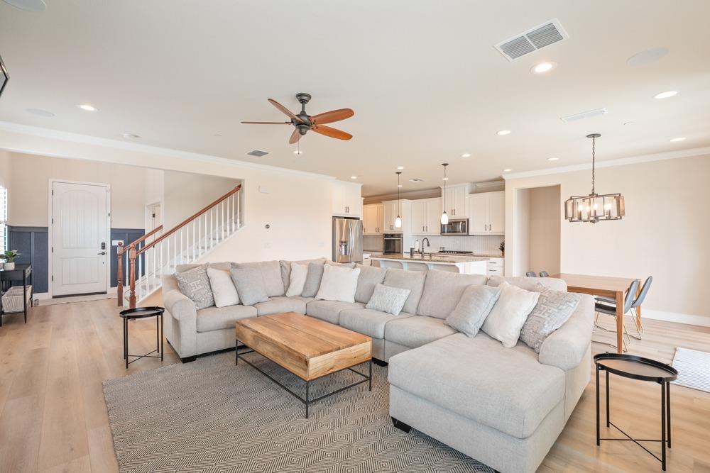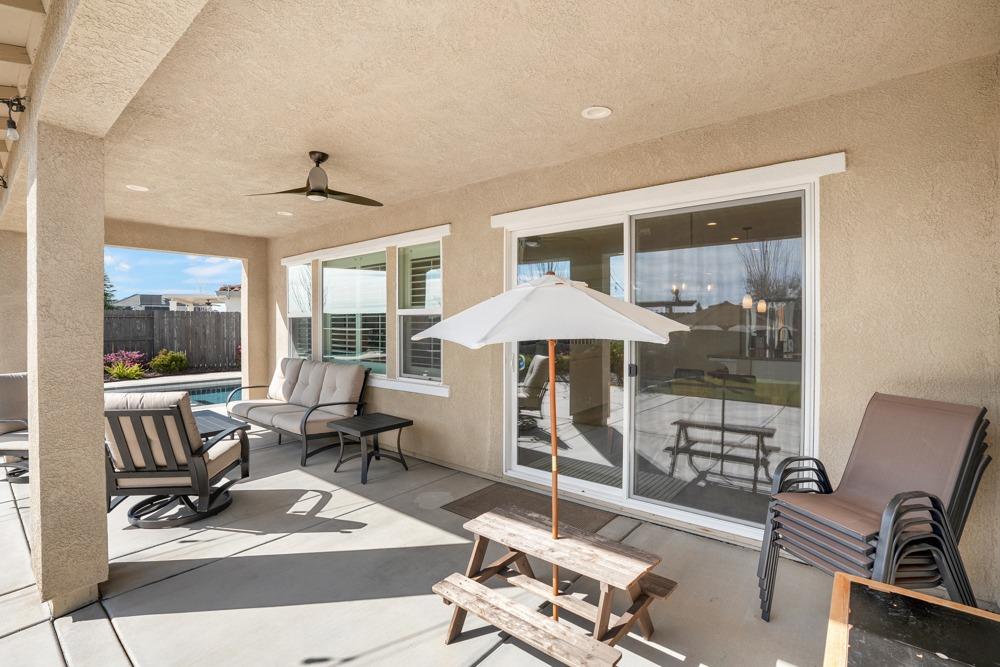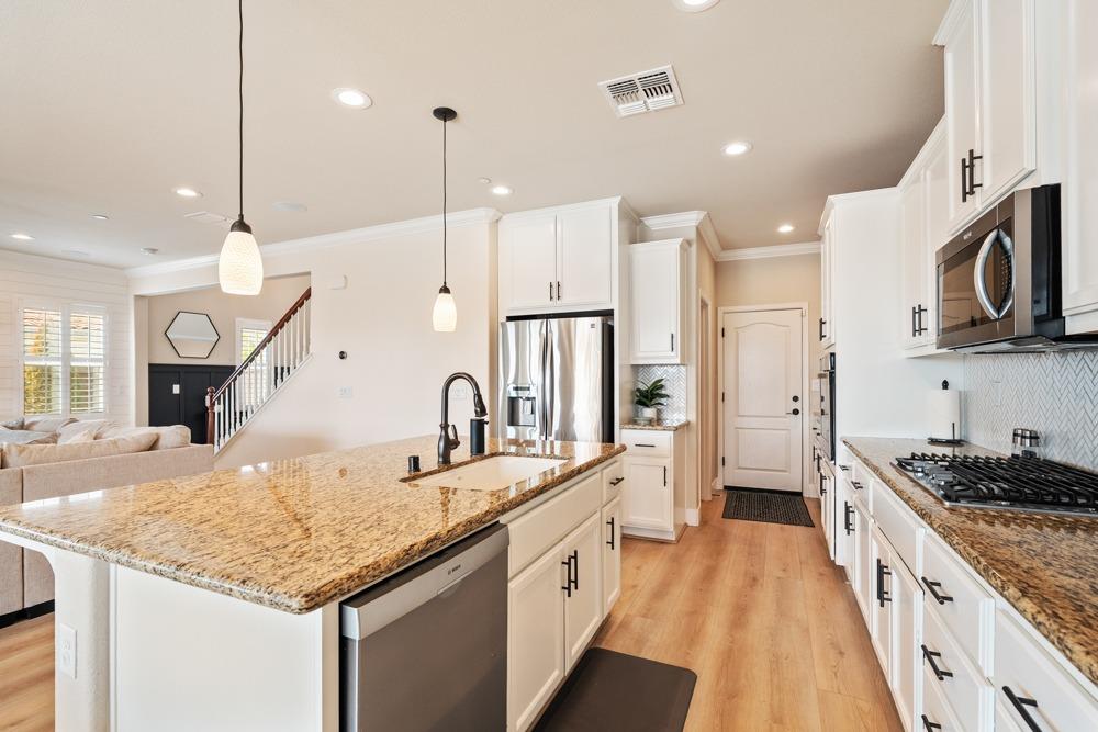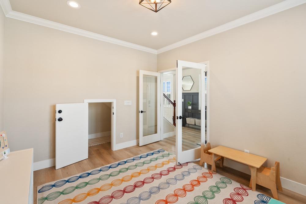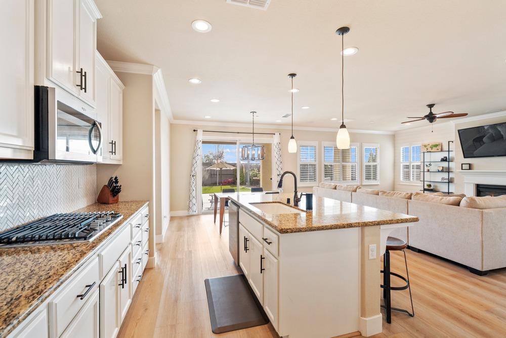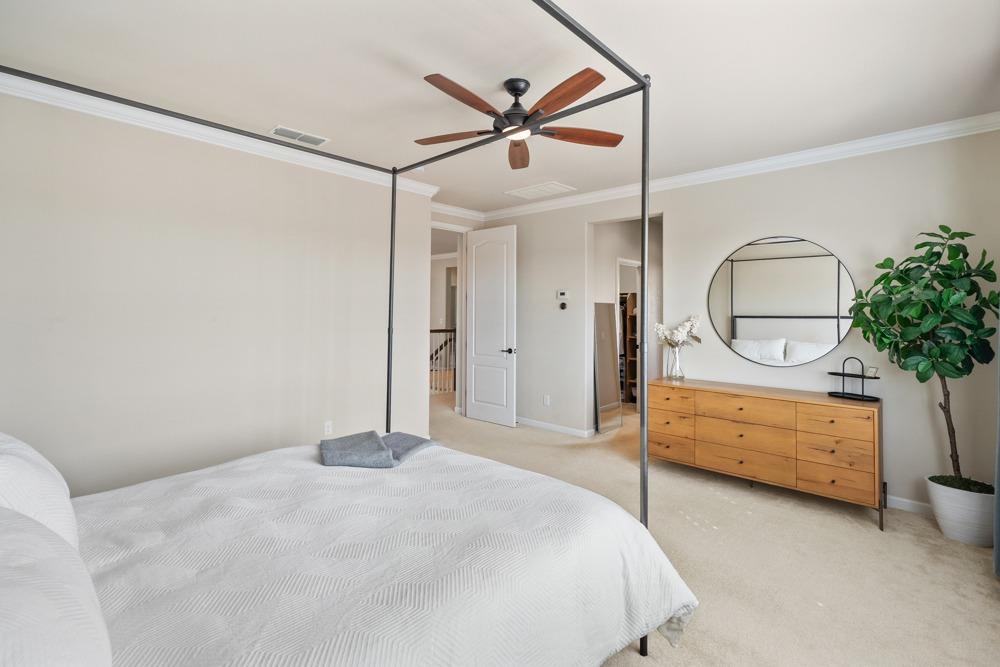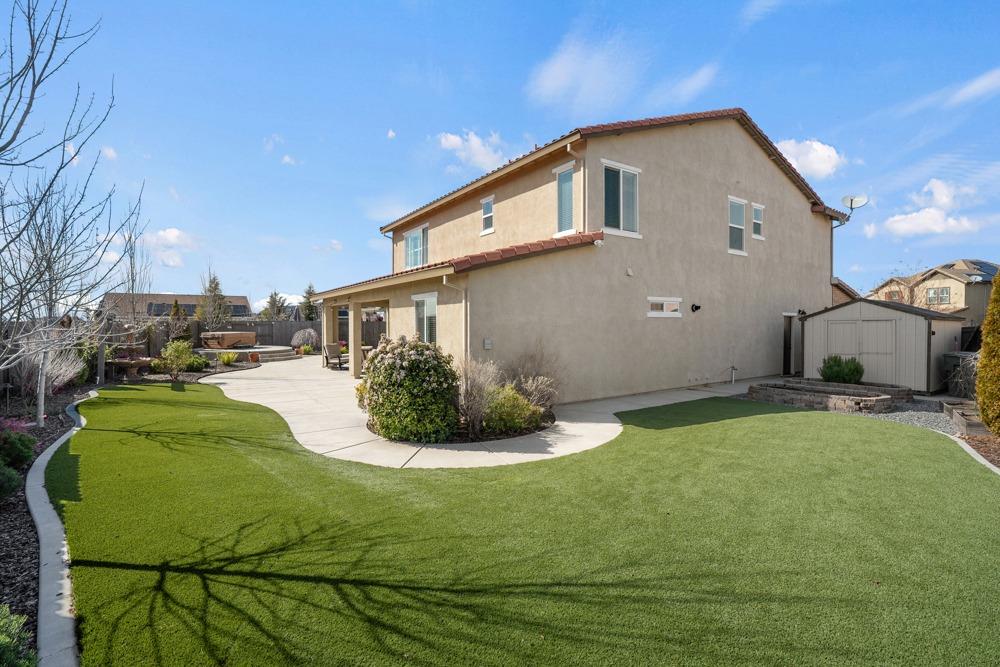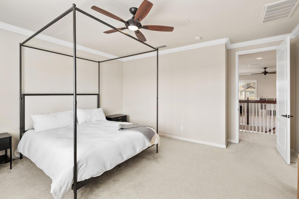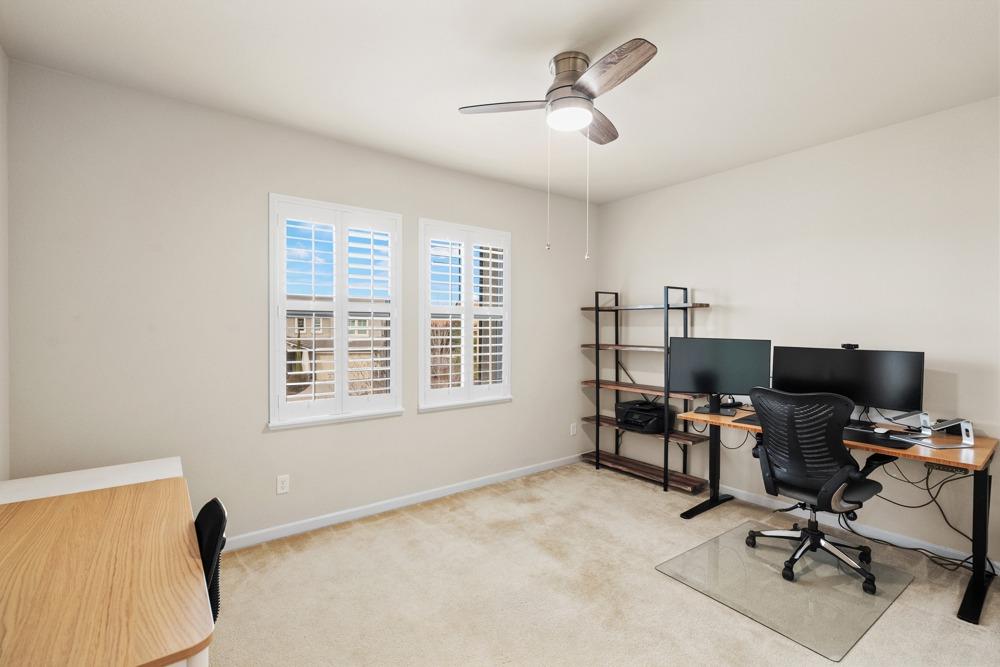 This Whitney Ranch beauty checks all the boxes! From the airy foyer full of natural light, enter the expansive open-plan living/dining/kitchen area, perfect for entertaining friends or quiet family time. On the same level, a room with glass doors makes for an excellent home office or meditation space. An open loft anchors the upstairs level, flanked by the bedrooms. The oversized primary suite overlooks the beautiful resort-like backyard. The laundry is conveniently upstairs as well. Finishes throughout are high-end, including top-of-the-line plantation shutters, luxury vinyl plank flooring, updated bathrooms with stylish tile and stunning crown molding. Outside you will enjoy your own private paradise, with a large covered porch, contemporary swimming pool, spa and raised garden beds. There's a three-car tandem garage equipped with an EV charger, plus owned solar. All this on a serene cul-de-sac in a desirable corner of Rocklin.