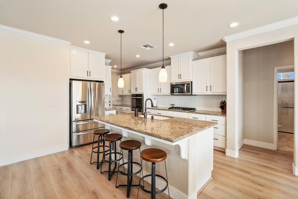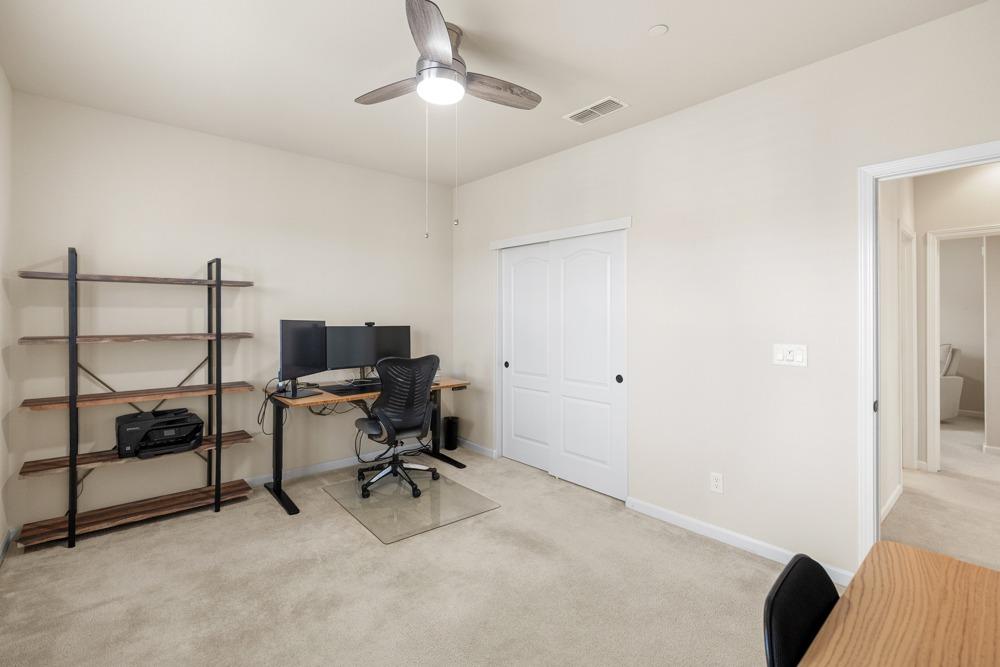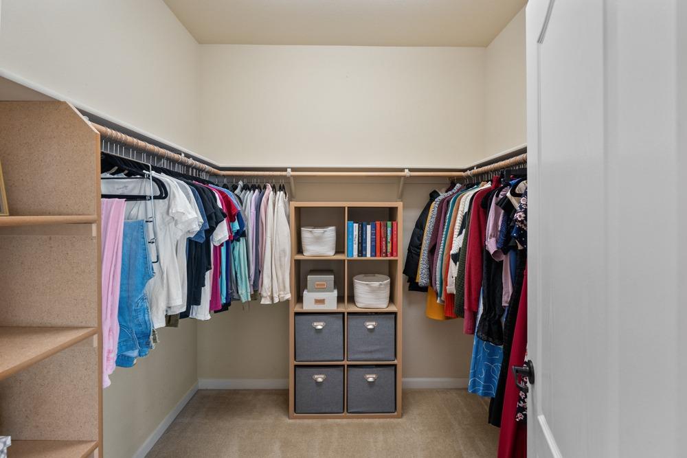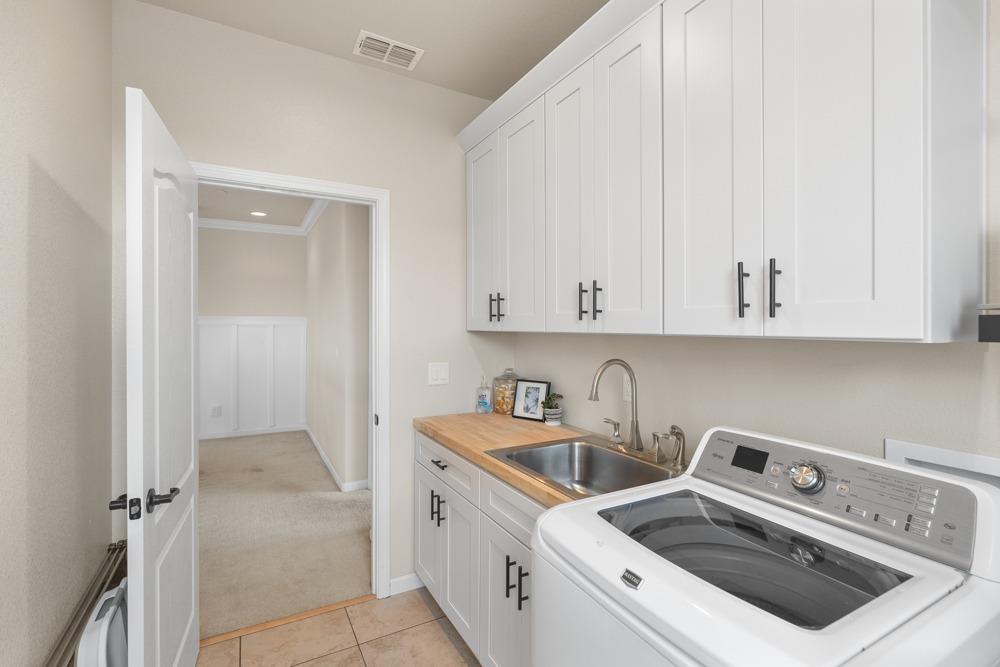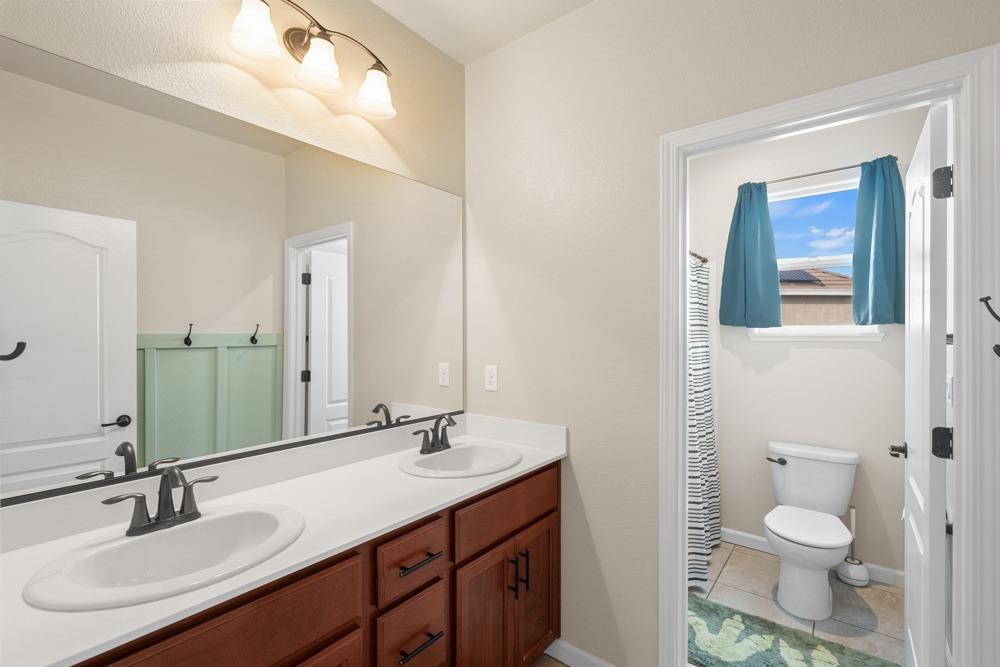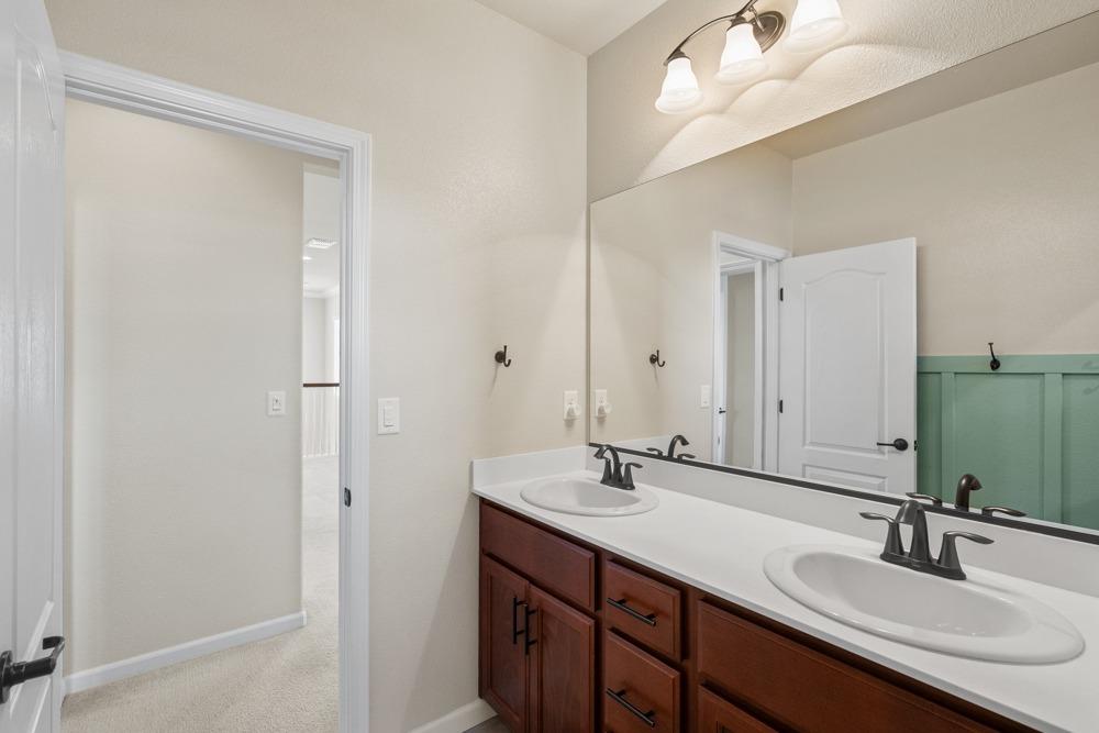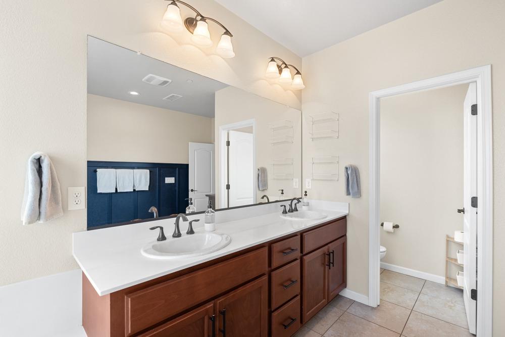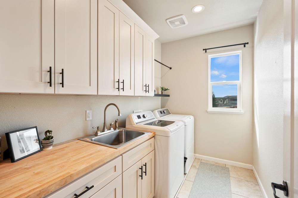 This Whitney Ranch beauty checks all the boxes! From the airy foyer full of natural light, enter the expansive open-plan living/dining/kitchen area, perfect for entertaining friends or quiet family time. On the same level, a room with glass doors makes for an excellent home office or meditation space. An open loft anchors the upstairs level, flanked by the bedrooms. The oversized primary suite overlooks the beautiful resort-like backyard. The laundry is conveniently upstairs as well. Finishes throughout are high-end, including top-of-the-line plantation shutters, luxury vinyl plank flooring, updated bathrooms with stylish tile and stunning crown molding. Outside you will enjoy your own private paradise, with a large covered porch, contemporary swimming pool, spa and raised garden beds. There's a three-car tandem garage equipped with an EV charger, plus owned solar. All this on a serene cul-de-sac in a desirable corner of Rocklin.