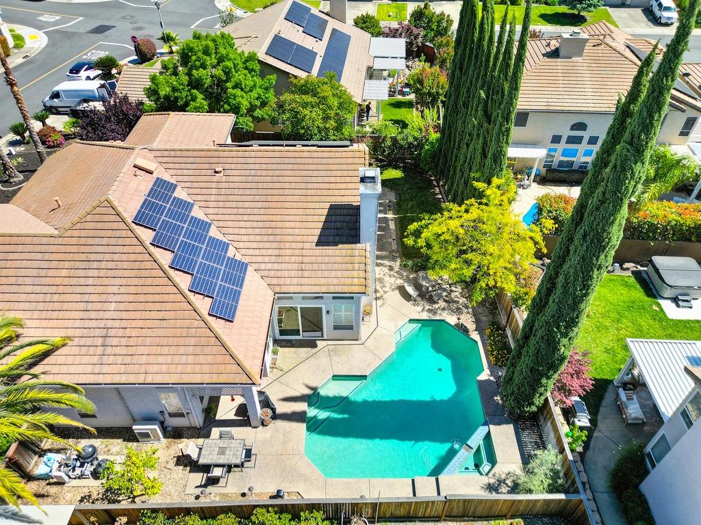 Discover the epitome of comfortable and versatile living at 2416 Saint Andrews Drive, nestled in the desirable Rocklin neighborhood of Mansion Oaks. An ample 2,812 square feet, this energy-efficient home features 4 bedrooms, 3 full bathrooms, a formal living and dining area, and an open kitchen/family room combination on the main floor. The upstairs open loft offers a flexible space for work or leisure. Enjoy the modern convenience of a newer heat pump (2022) and a owned 30 panel solar system, ensuring both comfort and sustainability. The pleasantly designed backyard beckons with a covered patio, pool, spa, and gardening space, creating an inviting sanctuary for the upcoming warmer months. With community parks and top schools within walking distance, this home offers the perfect balance of convenience and opportunity in the heart of Rocklin.
