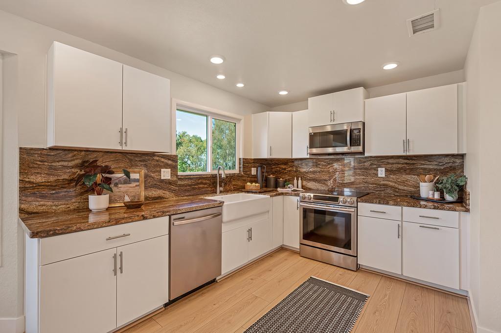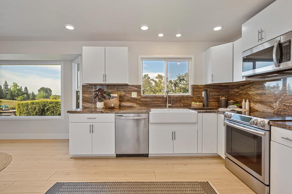 Welcome to the quiet beauty of country living in sought-after Meadow Creek Ranch. As you make your way down the peaceful country road, a sense of calm settles in, and it only grows stronger when you arrive. Set on 7.5 picturesque acres with low HOA dues and access to Doty Ravine with riparian water rights, this remarkable Lincoln property offers the space, setting, and lifestyle that are increasingly hard to find. The impressive 3,746 sq ft residence has been tastefully reimagined throughout with new flooring, a beautifully remodeled kitchen, refreshed bathrooms, and crisp interior and exterior paint. Inside, the main level offers an inviting blend of comfort and function, featuring a formal dining room with front-facing views, a private junior suite ideal for guests or multigenerational living, and a generous living room overlooking the back acreage. Expansive windows fill the home with natural light while framing the scenic surroundings. Upstairs, the primary suite is a peaceful retreat with its own private balcony, the perfect place to enjoy sunset views and morning coffee! The spa-inspired bathroom features a soaking tub and a soothing atmosphere designed for relaxation. Step outside and experience all this property has to offer. A spacious front deck creates the perfect setting for entertaining, or simply taking in the beauty of the land and surrounding countryside. In addition to the attached 2-car garage, the property includes a substantial 1,500 sq ft + detached garage/shop with a nearby septic system already in place with ADU potential. Two backup generators and a new upstairs AC unit provide added convenience and peace of mind. If you've been searching for a move-in ready acreage property with privacy, charm, and endless possibilities, this Meadow Creek Ranch opportunity is not to be missed.