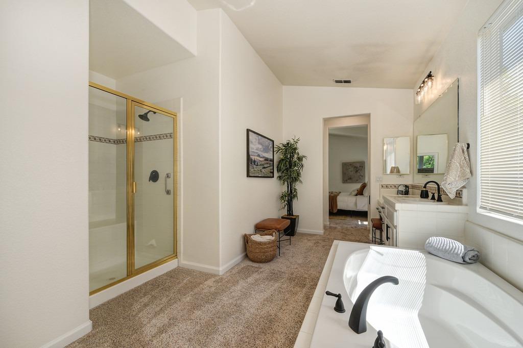Welcome to 26 Trehowell Court, a residence of timeless elegance and modern sophistication, nestled in Highland Reserve of Central Roseville. This exquisite home delivers a fresh and move-in ready interior that provides an ambiance of warmth and style. The open concept design effortlessly connects the kitchen to the living areas, offering an ideal setting for both casual relaxation and formal entertaining. The updated kitchen is a chef's delight, featuring modern appliances, quartz countertops, and ample storage space. The primary suite is a tranquil retreat, offering a serene atmosphere, with direct access to a sitting area in the backyard, and a well-appointed en-suite bathroom. On the other side of the home, two additional bedrooms and a full bathroom provide comfort and versatility, accommodating various lifestyle needs. This home's unique floor plan has the flexibility to offer a home office, guest suite, or 4th bedroom. Outside, the property is adorned with mature landscaping, creating a picturesque outdoor oasis. The extra large patio cover will provide plenty of shade to keep everyone cool on sunny days. This quarter acre lot also provides ample room for RV parking. Conveniently located near a wealth of amenities, this home is poised to elevate your lifestyle.