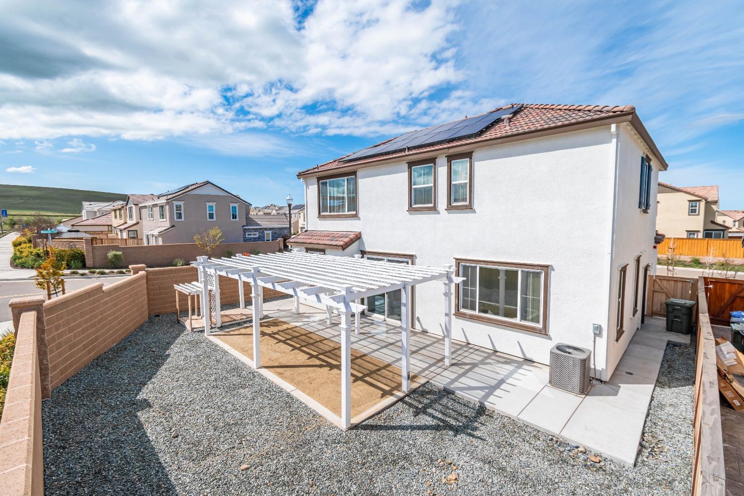 Stunning 4 bedroom, 3 bath home with owned solar on a corner lot in the award winning master planned community of Tracy Hills. Open concept living with so much natural light. Kitchen features granite countertops, stainless steel appliances, lots of cabinets and large pantry. Separate laundry room with tons of storage space. Easy access to Hwy 580, just 45 min east of SFO. This outstanding community in Jefferson School District boasts an onsite swimming pool and club house, picnic area, parks and trails with its own Market. The home is walking distance to the new Corral Hollow elementary school set to open on August 4th. Hurry and make this spectacular home and community yours!