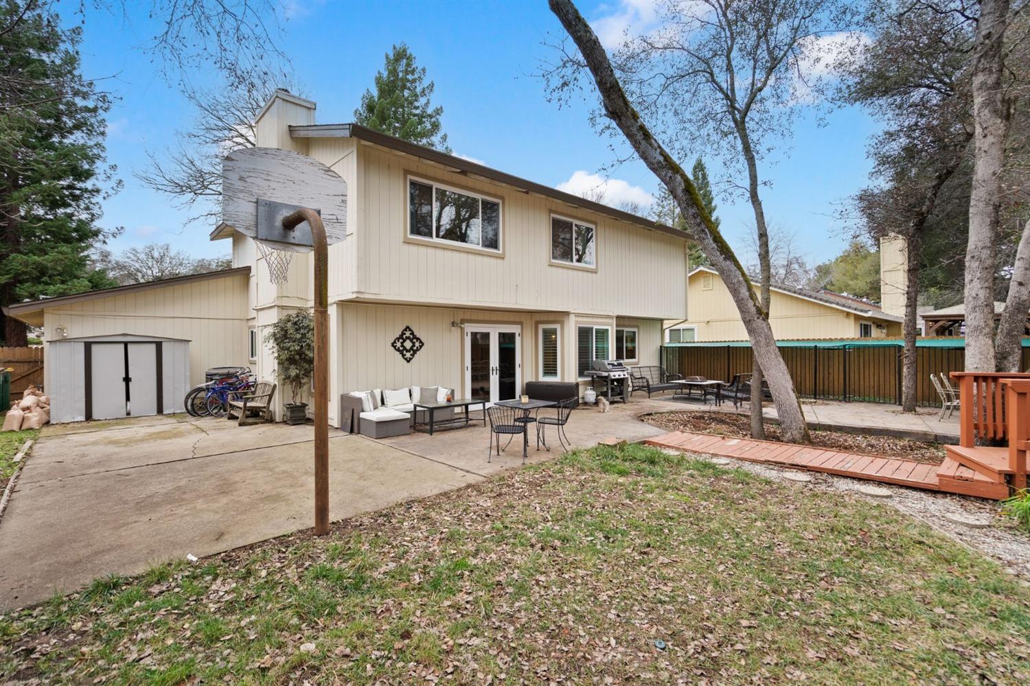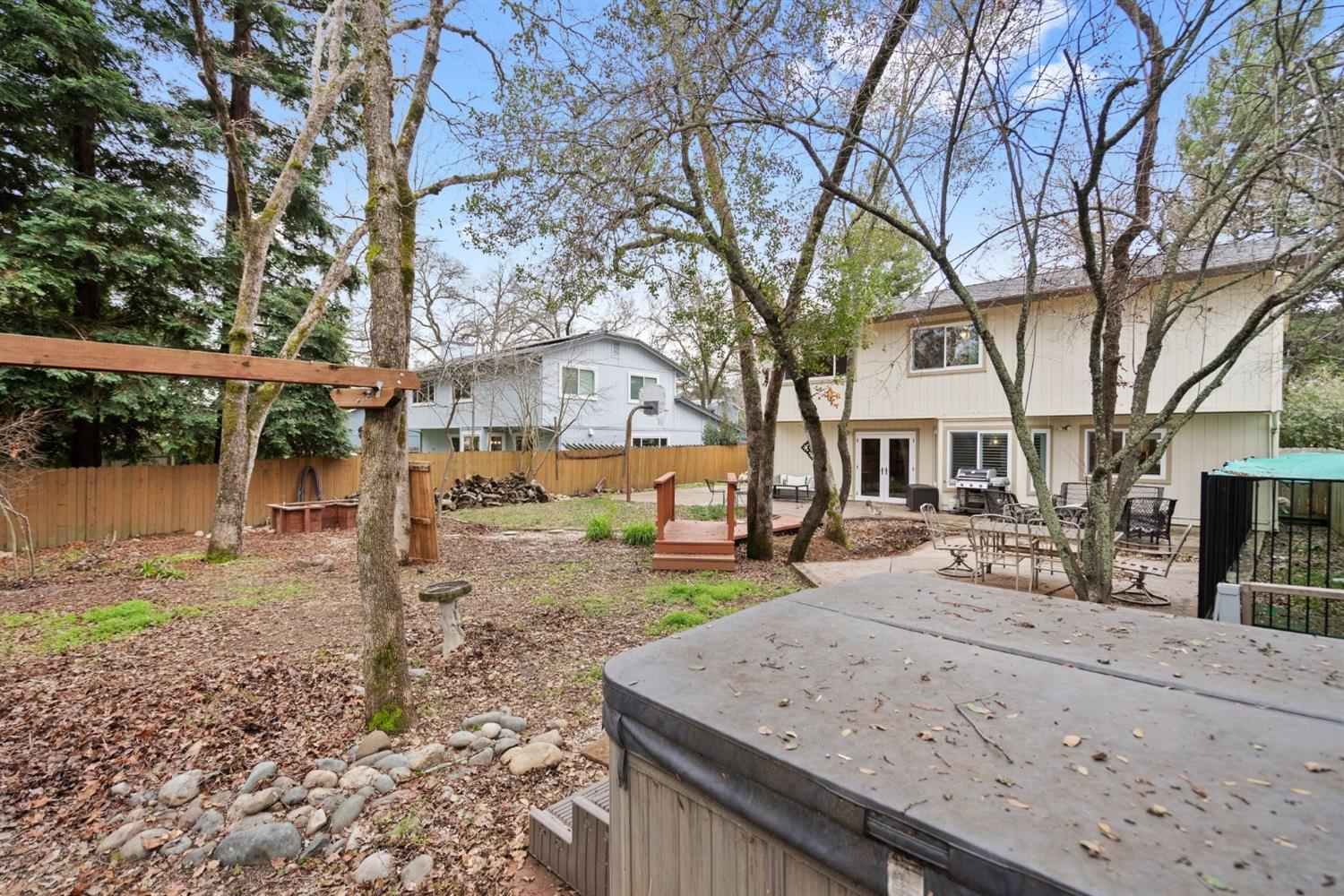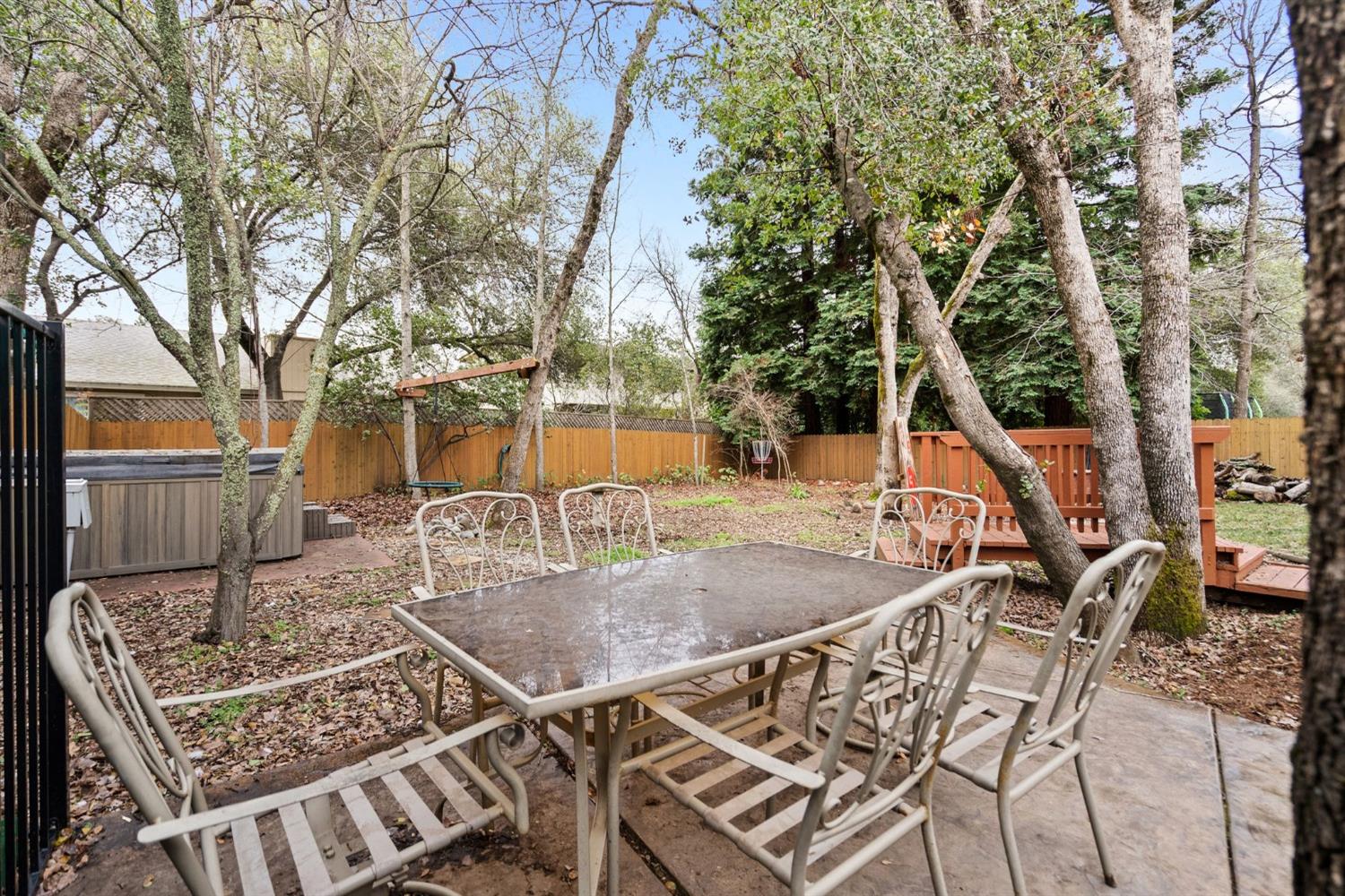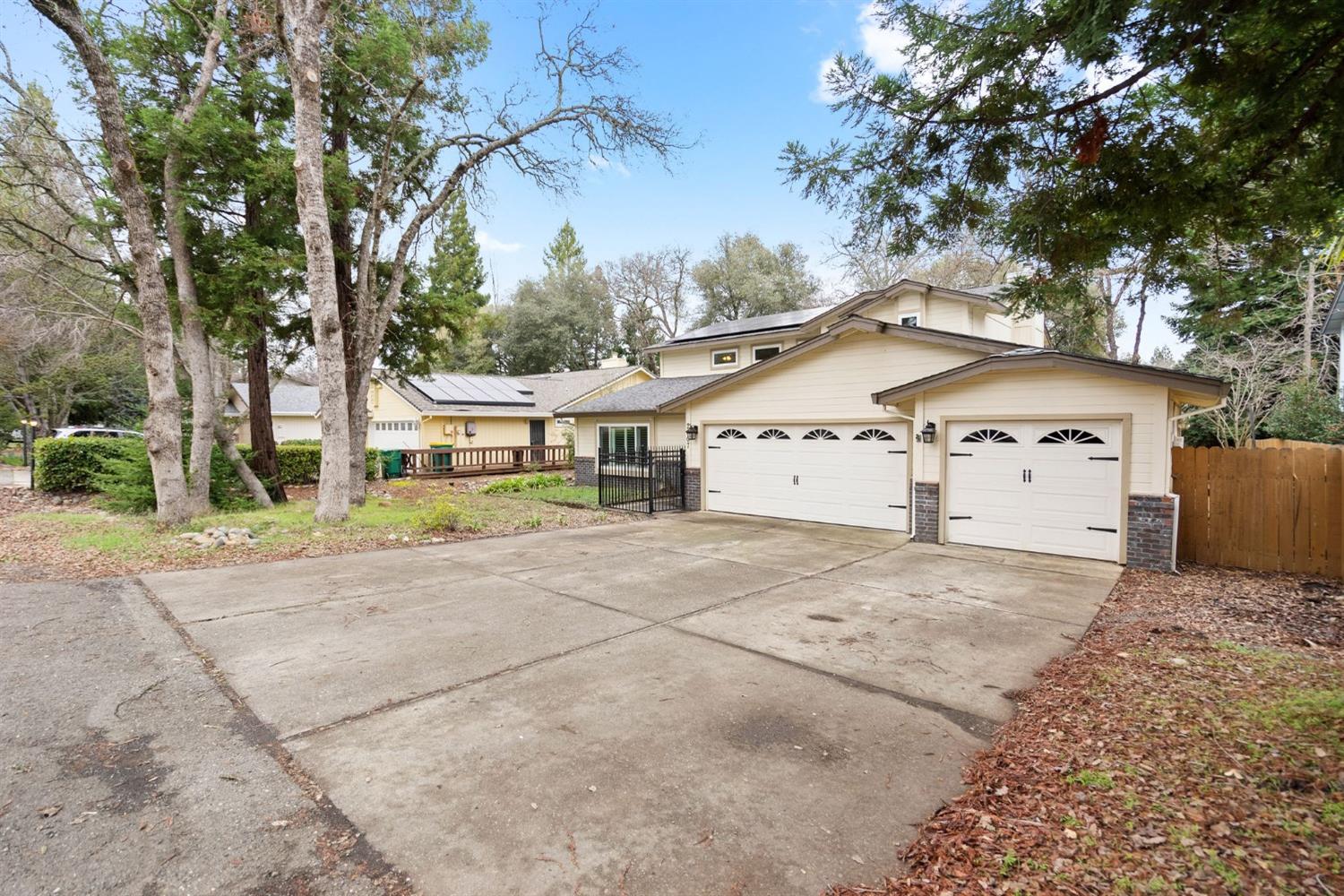 Charming and spacious home nestled in the heart of Cameron Park with OWNED SOLAR installed in 2023! Step inside to discover an updated kitchen featuring quartz counters with a chic waterfall edge, tile backsplash, large basin sink with a window above looking out to the serene yard, and stainless steel appliances, including double ovens! Natural light, soaring ceilings in the family room, and updated flooring combine to create a warm and inviting atmosphere. Cozy up by the wood-burning stove in the living room, and enjoy the comfort it brings to the home. Formal dining space and eat-in area make this home great for hosting! The primary bedroom provides ample space to unwind and leads to a bathroom suite featuring dual sinks, large closet, and shower. The upstairs hall bath offers a shower over tub, and 3 more sizable bedrooms round out the upstairs. French doors open to the expansive backyard, where you'll find a large lot for playing or gardening, basketball hoop, and a relaxing hot tub. New windows will keep your energy costs low year round! A spacious 3 car garage and access to excellent schools! Close proximity to ForkLift Market by Nugget, Moonraker Brewing, El Dorado Hills Town Center, Folsom Lake, Cameron Park Country Club, Hwy 50, and more! Come make this one yours!
