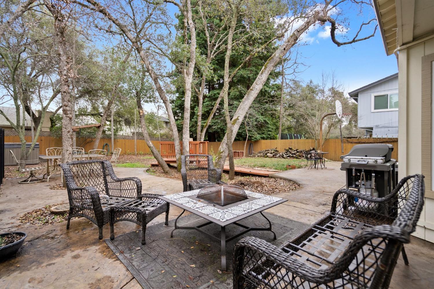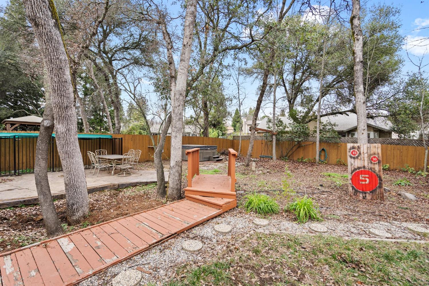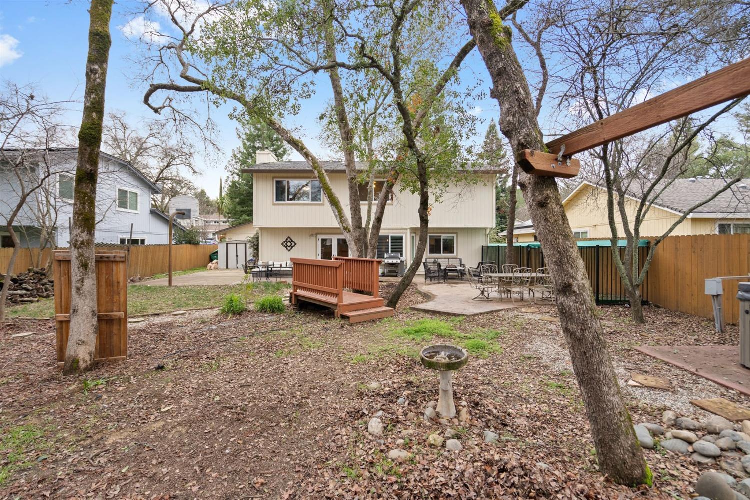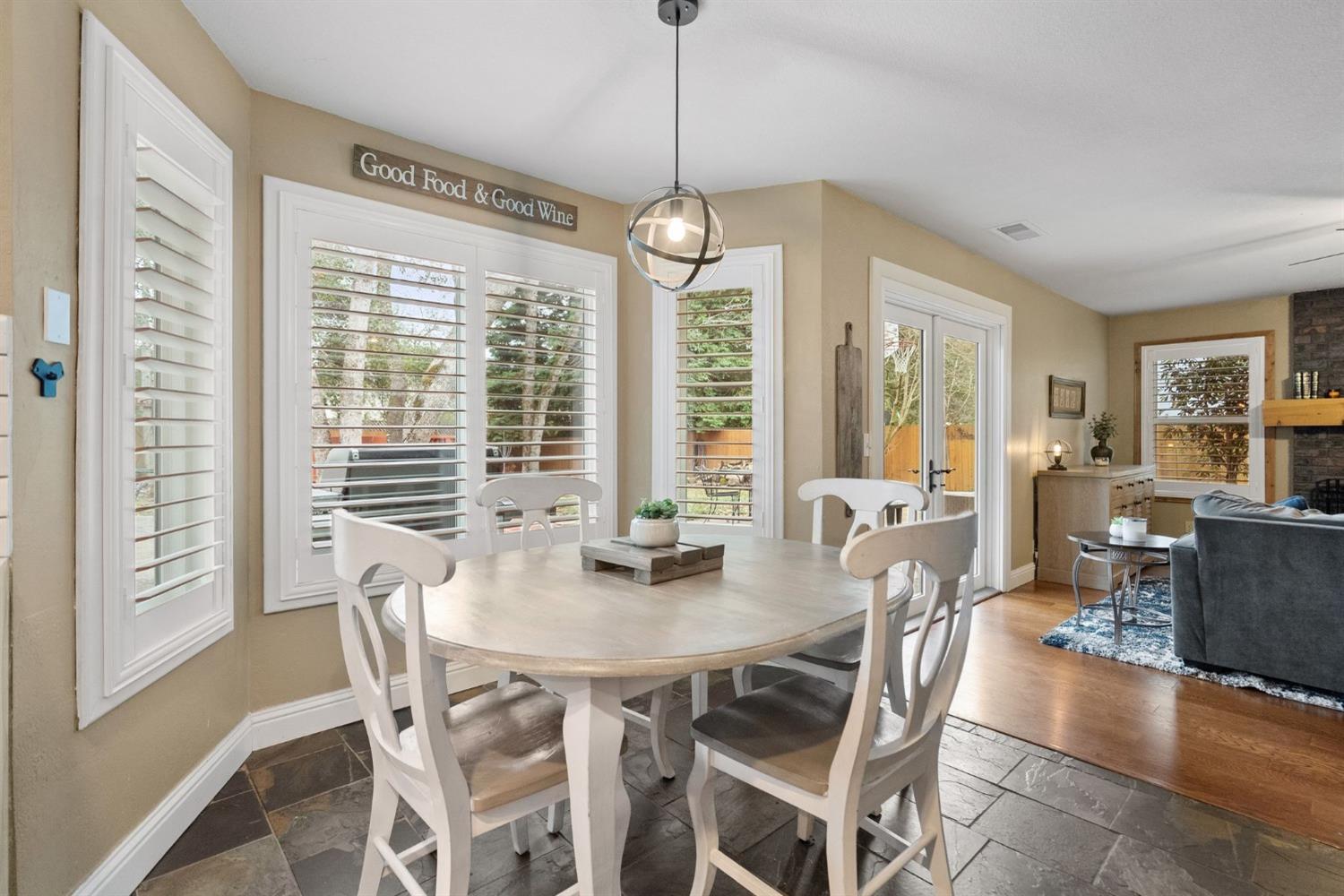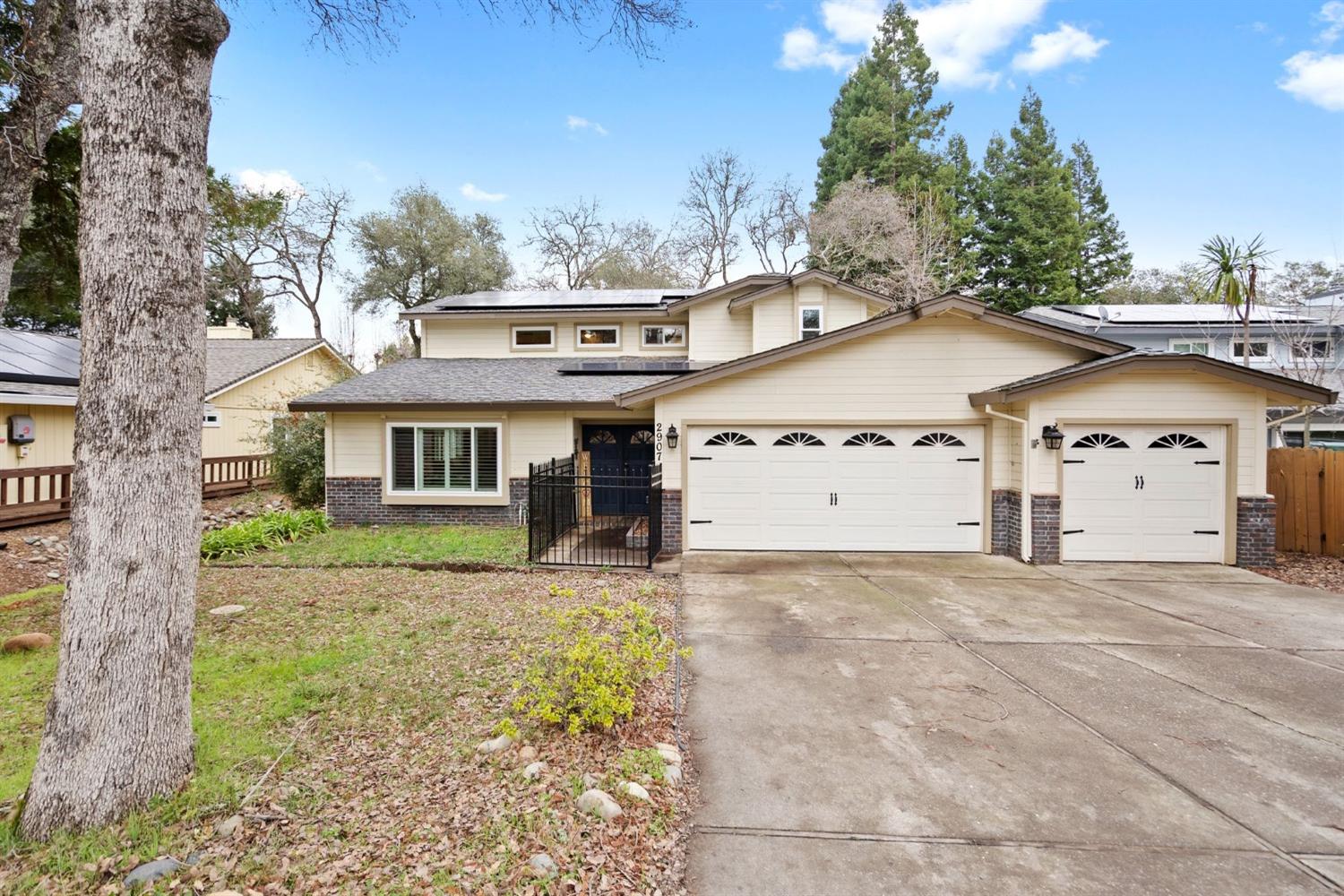 Charming and spacious home nestled in the heart of Cameron Park with OWNED SOLAR installed in 2023! Step inside to discover an updated kitchen featuring quartz counters with a chic waterfall edge, tile backsplash, large basin sink with a window above looking out to the serene yard, and stainless steel appliances, including double ovens! Natural light, soaring ceilings in the family room, and updated flooring combine to create a warm and inviting atmosphere. Cozy up by the wood-burning stove in the living room, and enjoy the comfort it brings to the home. Formal dining space and eat-in area make this home great for hosting! The primary bedroom provides ample space to unwind and leads to a bathroom suite featuring dual sinks, large closet, and shower. The upstairs hall bath offers a shower over tub, and 3 more sizable bedrooms round out the upstairs. French doors open to the expansive backyard, where you'll find a large lot for playing or gardening, basketball hoop, and a relaxing hot tub. New windows will keep your energy costs low year round! A spacious 3 car garage and access to excellent schools! Close proximity to ForkLift Market by Nugget, Moonraker Brewing, El Dorado Hills Town Center, Folsom Lake, Cameron Park Country Club, Hwy 50, and more! Come make this one yours!