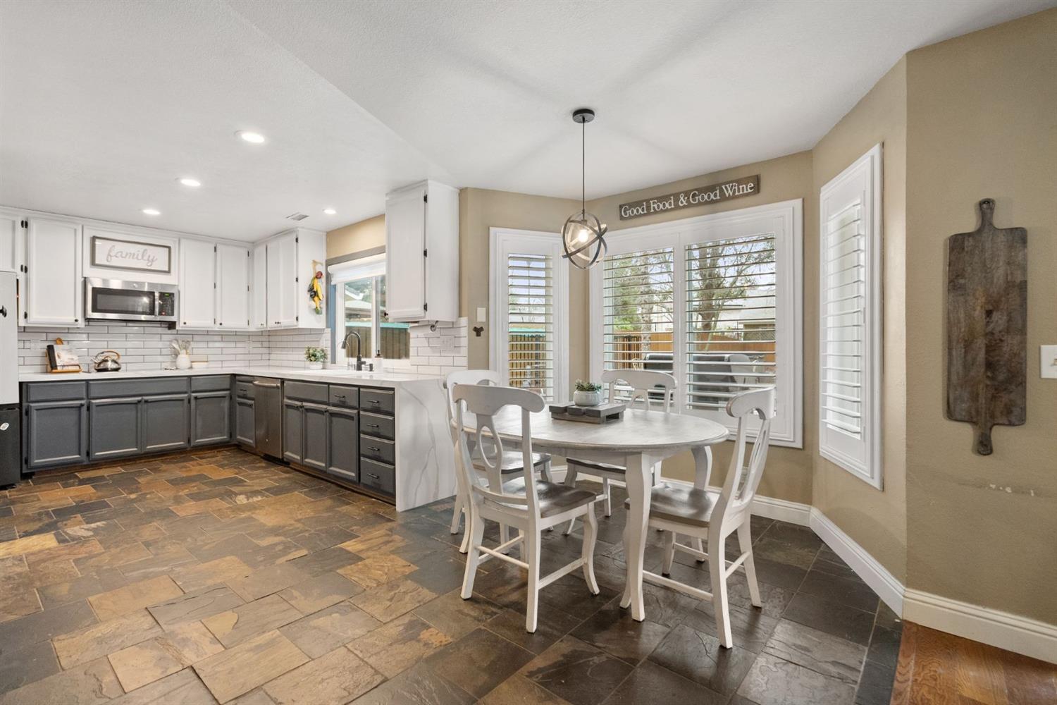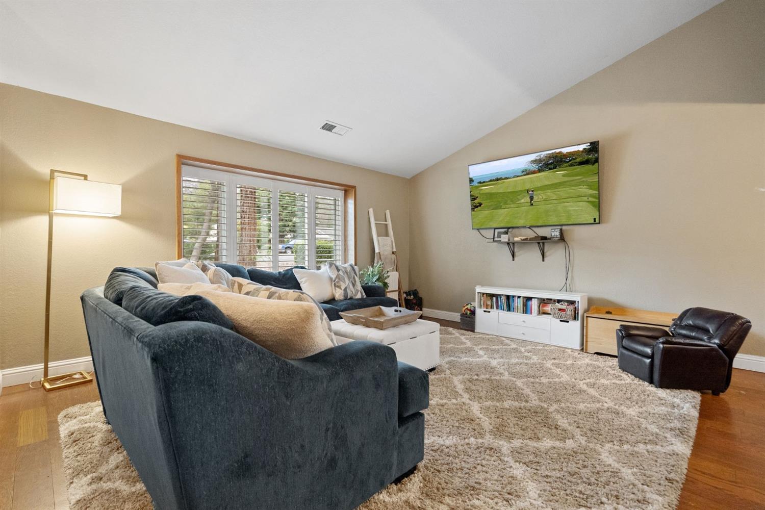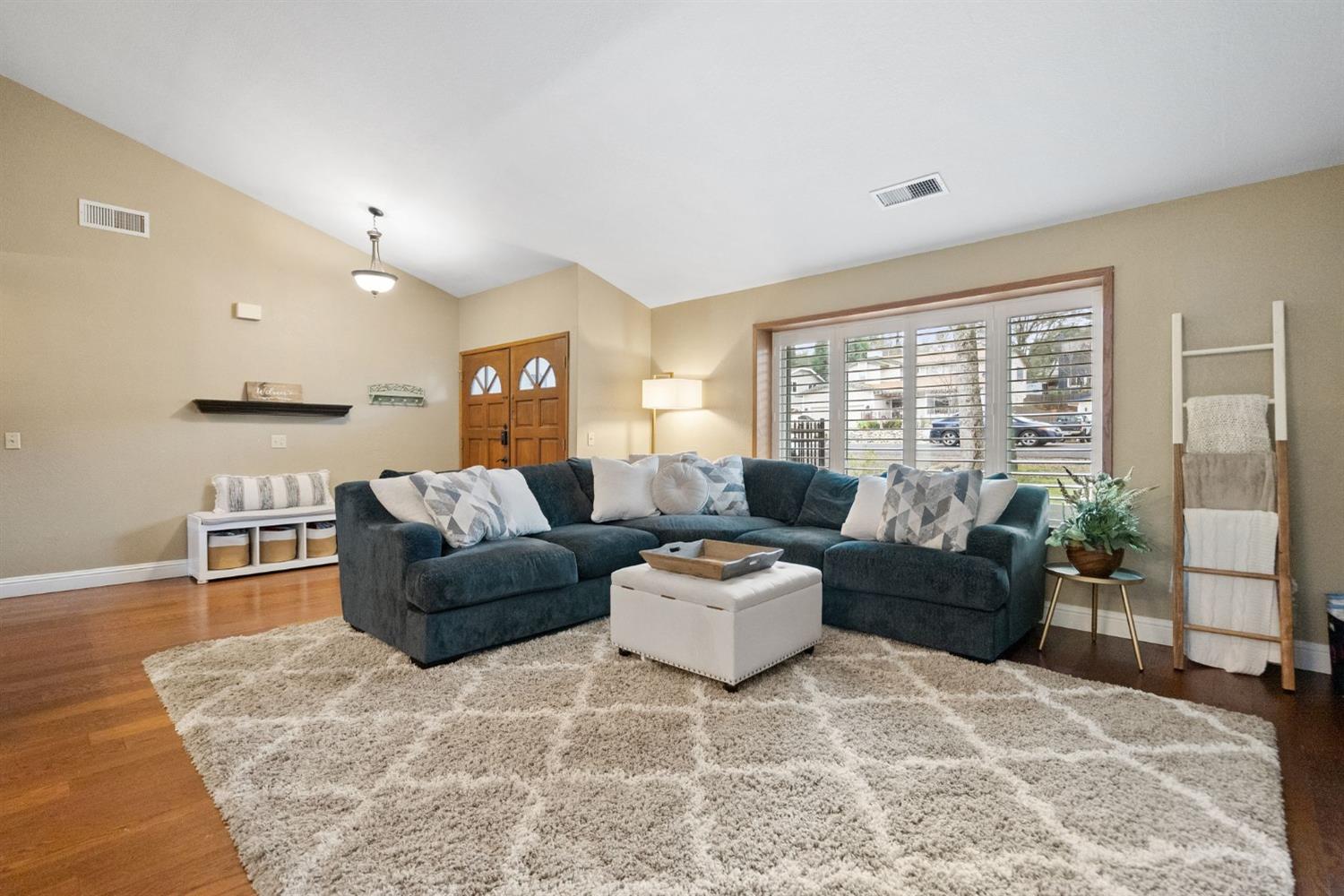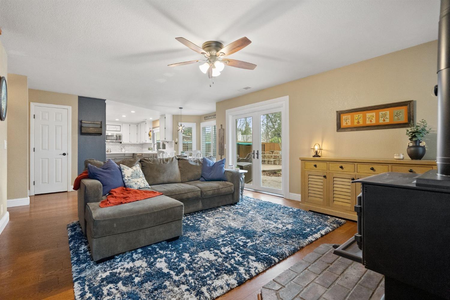 Charming and spacious home nestled in the heart of Cameron Park with OWNED SOLAR installed in 2023! Step inside to discover an updated kitchen featuring quartz counters with a chic waterfall edge, tile backsplash, large basin sink with a window above looking out to the serene yard, and stainless steel appliances, including double ovens! Natural light, soaring ceilings in the family room, and updated flooring combine to create a warm and inviting atmosphere. Cozy up by the wood-burning stove in the living room, and enjoy the comfort it brings to the home. Formal dining space and eat-in area make this home great for hosting! The primary bedroom provides ample space to unwind and leads to a bathroom suite featuring dual sinks, large closet, and shower. The upstairs hall bath offers a shower over tub, and 3 more sizable bedrooms round out the upstairs. French doors open to the expansive backyard, where you'll find a large lot for playing or gardening, basketball hoop, and a relaxing hot tub. New windows will keep your energy costs low year round! A spacious 3 car garage and access to excellent schools! Close proximity to ForkLift Market by Nugget, Moonraker Brewing, El Dorado Hills Town Center, Folsom Lake, Cameron Park Country Club, Hwy 50, and more! Come make this one yours!