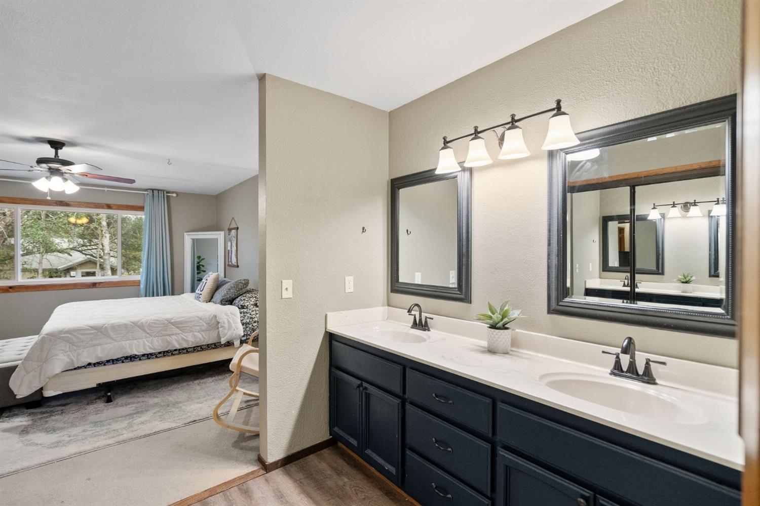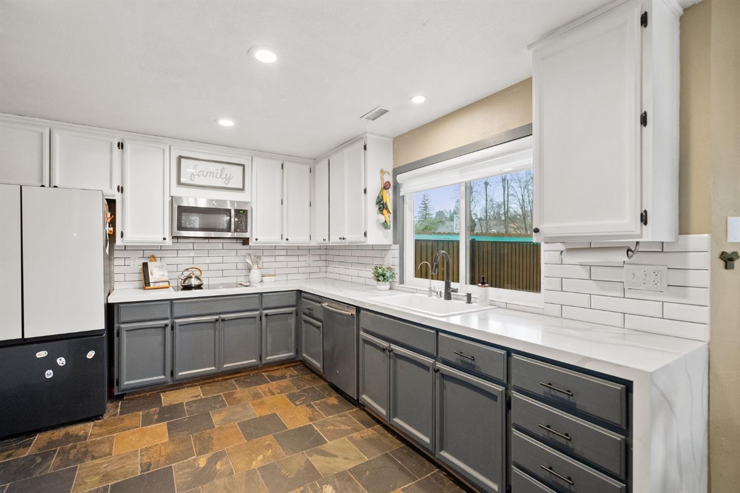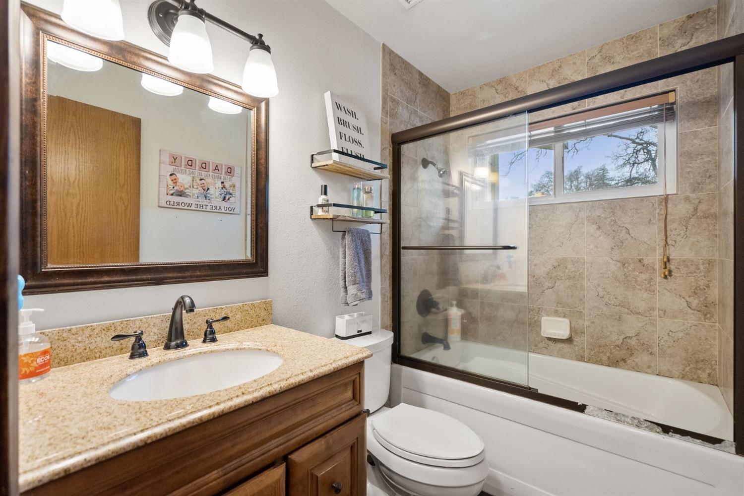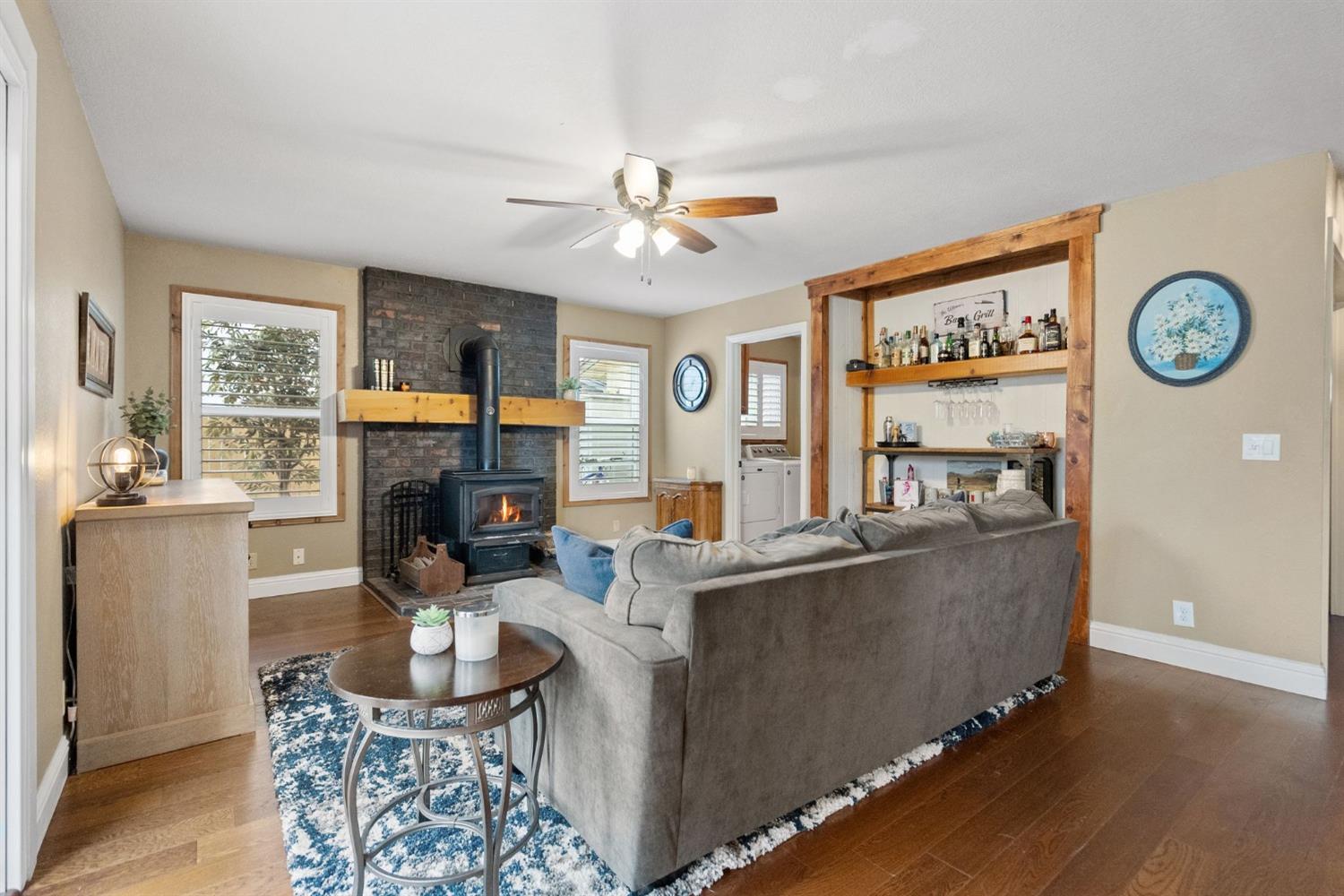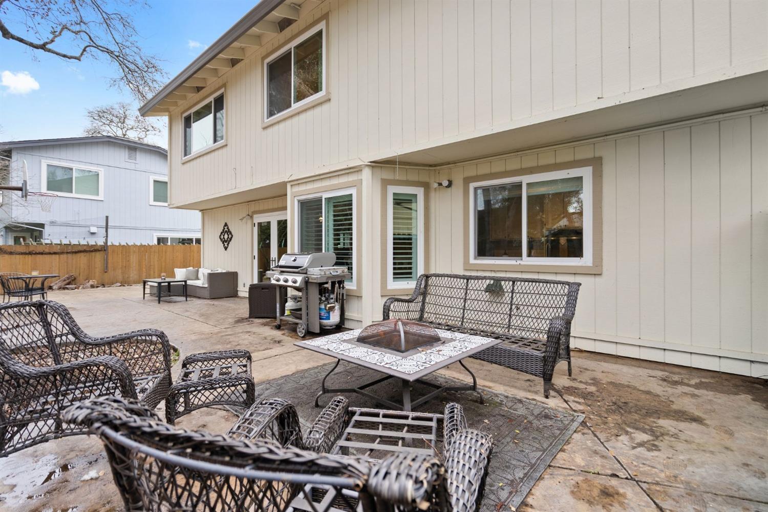 Charming and spacious home nestled in the heart of Cameron Park with OWNED SOLAR installed in 2023! Step inside to discover an updated kitchen featuring quartz counters with a chic waterfall edge, tile backsplash, large basin sink with a window above looking out to the serene yard, and stainless steel appliances, including double ovens! Natural light, soaring ceilings in the family room, and updated flooring combine to create a warm and inviting atmosphere. Cozy up by the wood-burning stove in the living room, and enjoy the comfort it brings to the home. Formal dining space and eat-in area make this home great for hosting! The primary bedroom provides ample space to unwind and leads to a bathroom suite featuring dual sinks, large closet, and shower. The upstairs hall bath offers a shower over tub, and 3 more sizable bedrooms round out the upstairs. French doors open to the expansive backyard, where you'll find a large lot for playing or gardening, basketball hoop, and a relaxing hot tub. New windows will keep your energy costs low year round! A spacious 3 car garage and access to excellent schools! Close proximity to ForkLift Market by Nugget, Moonraker Brewing, El Dorado Hills Town Center, Folsom Lake, Cameron Park Country Club, Hwy 50, and more! Come make this one yours!