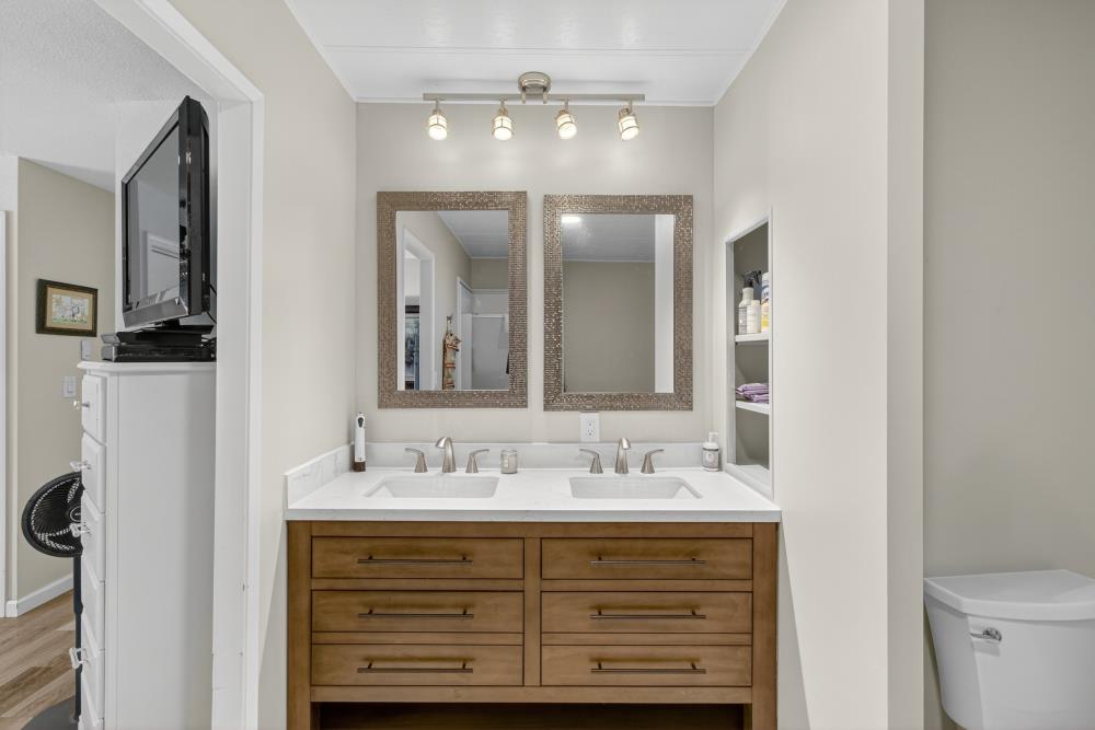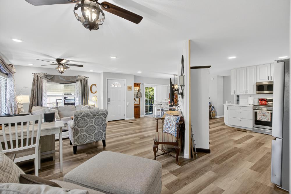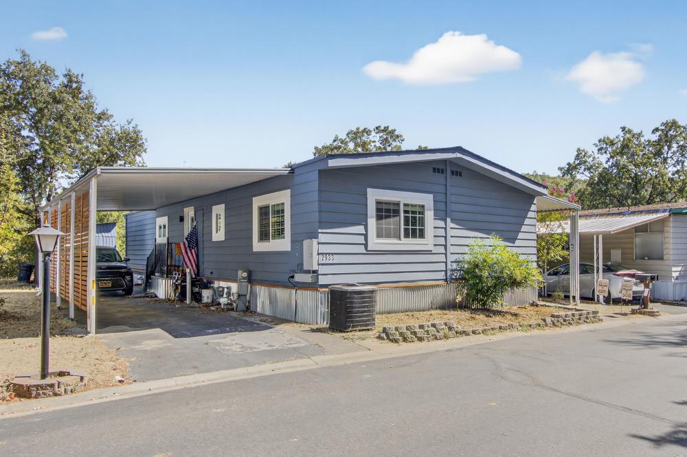Welcome to 2933 Glenwood, a beautifully updated home in the desirable Hidden Springs Mobile Villa, a vibrant 55+ community just minutes from historic downtown Placerville. As you walk up to the home you will see feature your full BACKUP GENERATOR that has been installed to ensure year round comfort in the event of a power outage. This thoughtfully remodeled residence combines modern style with comfort and convenience. Entering from your covered patio you will see bright, open interiors that are highlighted by newer vinyl windows, updated lighting, an electric fireplace, and a combination of LVP & tile flooring throughout. The kitchen is designed with entertaining in mind, featuring stone countertops and re-finished cabinetry. Heading down the hallway the two spacious bedrooms and two upgraded bathrooms offer both comfort and elegance with new vanities and finishes. Heading back outside you'll see a very low maintenance freshly landscaped yard surrounded by scenic views. A large storage shed sits behind an expansive covered parking space for 2 vehicles. To top it all off your community clubhouse offers a plethora of activities, a pool & spa, gym, and plenty of common areas to share with your neighbors and friends. Experience style, convenience, and community living all in one stunning home.