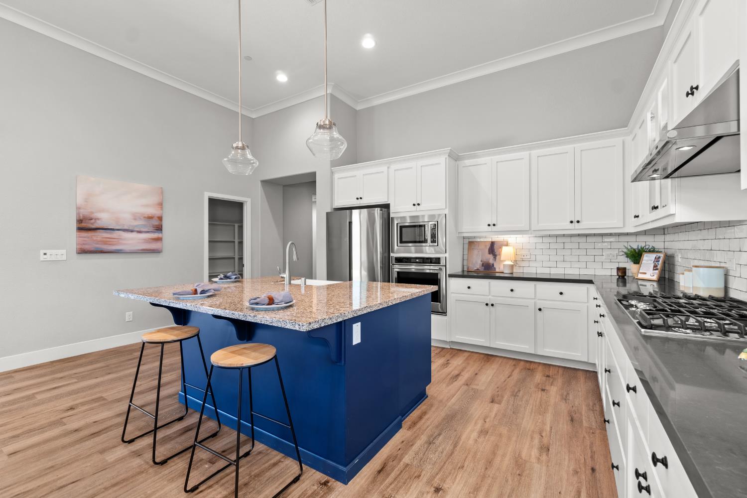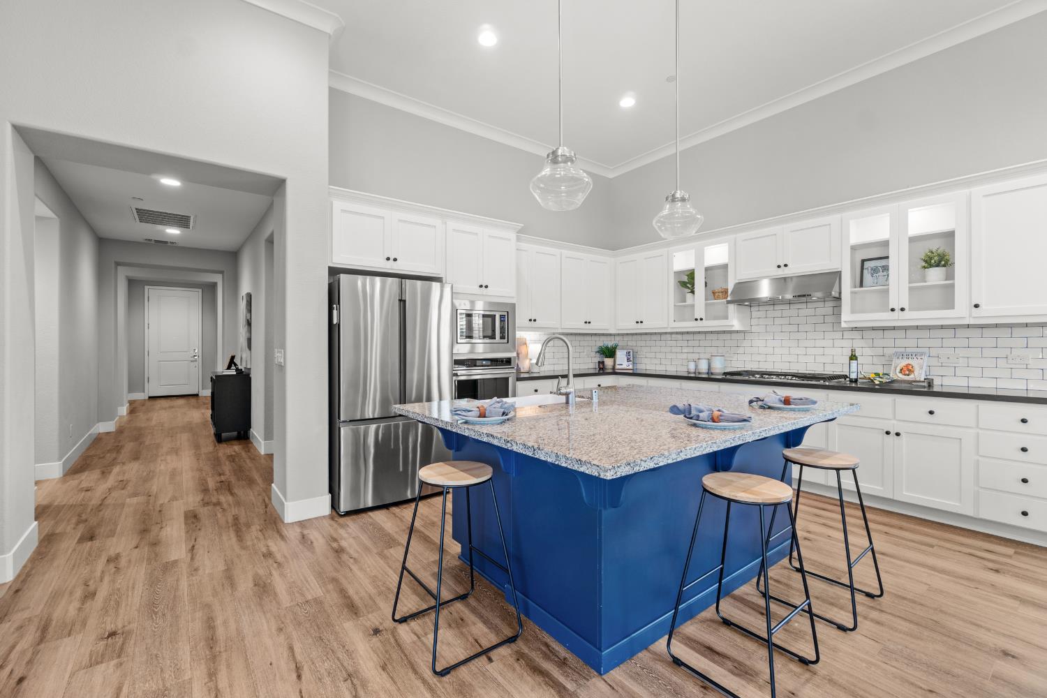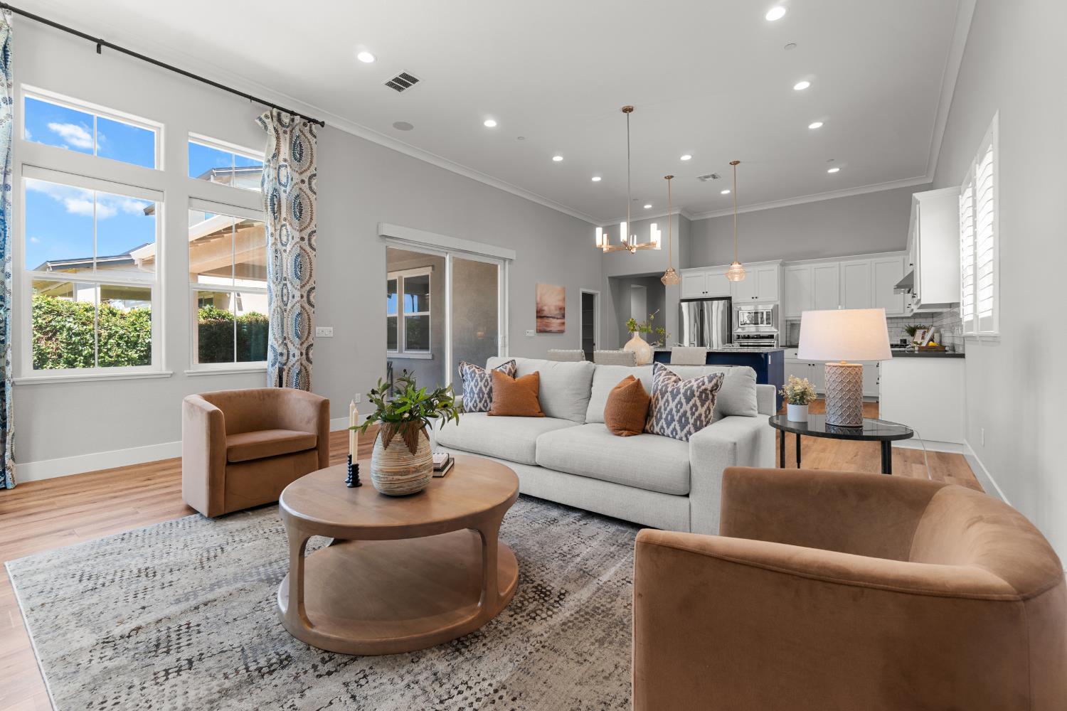 Step into this stunning former model home by Signature Homes! The massive great room is a show-stopper. Designed to impress, the soaring ceilings and expansive windows flood the open-concept living area, dining area, and kitchen with natural light, creating a bright and welcoming atmosphere from the moment you walk in. The kitchen is a standout, featuring a generously sized island, gas cooktop, tons of cabinet and counter space, and a walk-in pantry. It's the kind of space that makes both busy mornings and weekend entertaining feel effortless. At the back of the home, the spacious primary suite offers a true retreat, complete with dual sinks, a soaking tub, large walk-in shower, and 2 massive closets. 2 more bedrooms are separated by a shared bath with dual sinks and shower over tub, plus a well located powder room near the living areas. A low maintenance masterpiece, the professionally designed backyard is ready for relaxing evenings or casual get-togethers. Other features include built-in speakers throughout, tankless water heater, inside laundry and no HOA! Tucked in an inviting neighborhood with a large park, open field, and playground and located near top-rated Roseville schools including Chilton Middle and West Park High. This home has everything you've been waiting for!